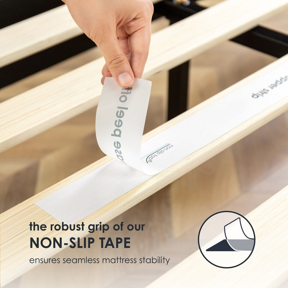 - Bande antidérapante sur les lattes de bois pour plus de stabilité