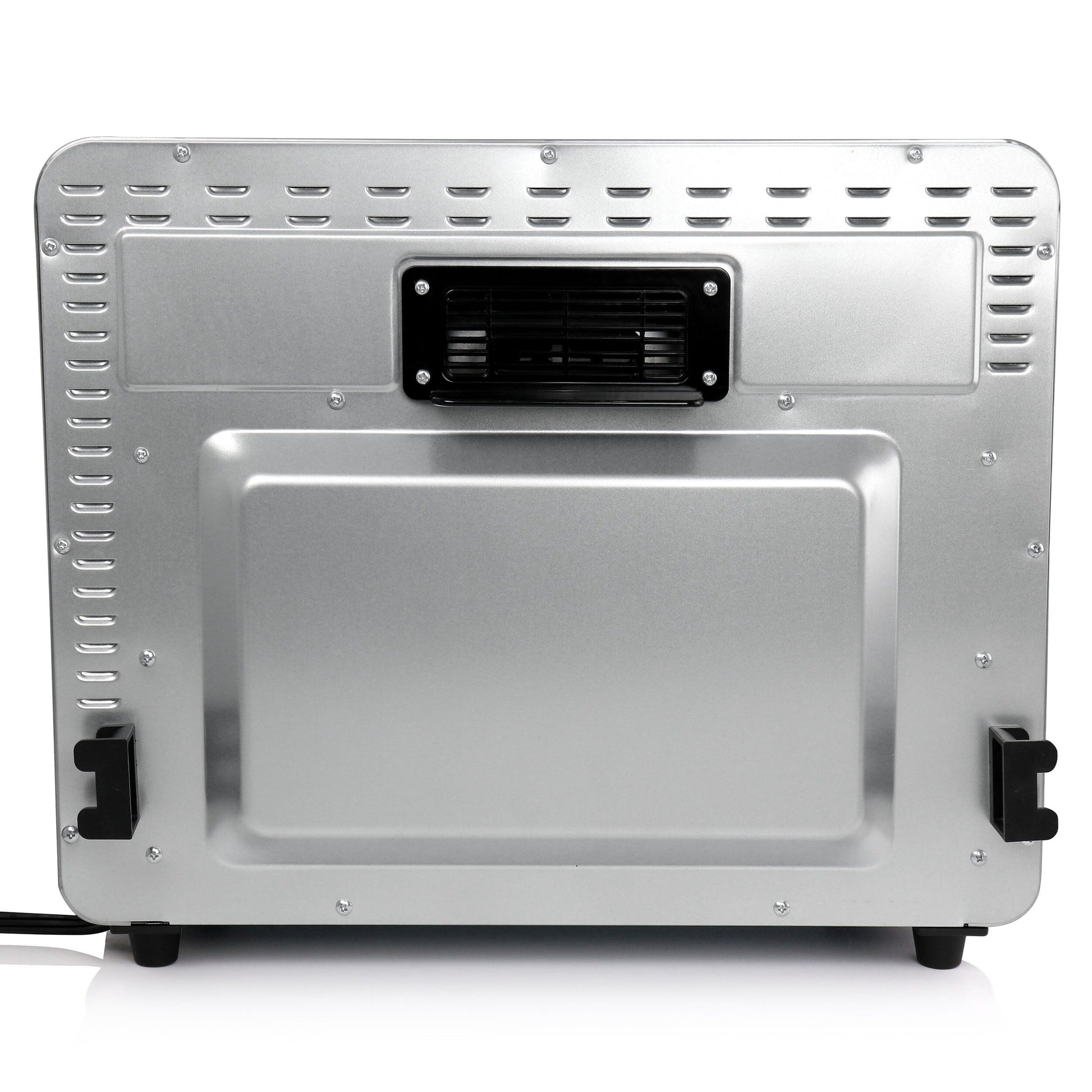 Avec le four grille-pain friteuse à air chaud multifonction, vos possibilités sont infinies. Son design élégant et ingénieux allie praticité et précision grâce à ses 21 fonctions préréglées qui simplifient la cuisine. Son écran numérique ultra-polyvalent, ses boutons de fonction intuitifs et ses 21 programmes prédéfinis vous permettent de préparer de délicieuses frites, des ailes de poulet, des steaks, des pizzas, des légumes, des toasts, des grillades, des cuissons au four, des rôtissages, des déshydratations et bien plus encore. Grâce à sa technologie de circulation d'air chaud à 360°, ce four grille-pain friteuse à air chaud vous offre des en-cas et des repas plus sains et savoureux. D'une grande capacité de 25 L, il peut accueillir un poulet entier ou des pizzas surgelées, tout en restant compact et élégant, s'intégrant parfaitement à toutes les cuisines. Intérieur facile à nettoyer et fond ramasse-miettes amovible. Four multifonction. Capacité : 25 L. Puissance : 1 800 W. Tension : 120 V - 60 Hz. Éléments : 6. Programmes : 21. Matériau : Acier inoxydable. Minuterie : 12 heures. Température : 100 à 450 °F (38 à 232 °C). Prise : 3 broches UL. Dimensions de l’article : 43,2 x 45,7 x 36,8 cm. Dimensions intérieures : 36,8 x 30,5 x 20,3 cm. Contenu : Un four grille-pain friteuse à air chaud multifonction, un panier de friture à air chaud, un plat à four, une grille de four, un ramasse-miettes, un manuel d’utilisation.
