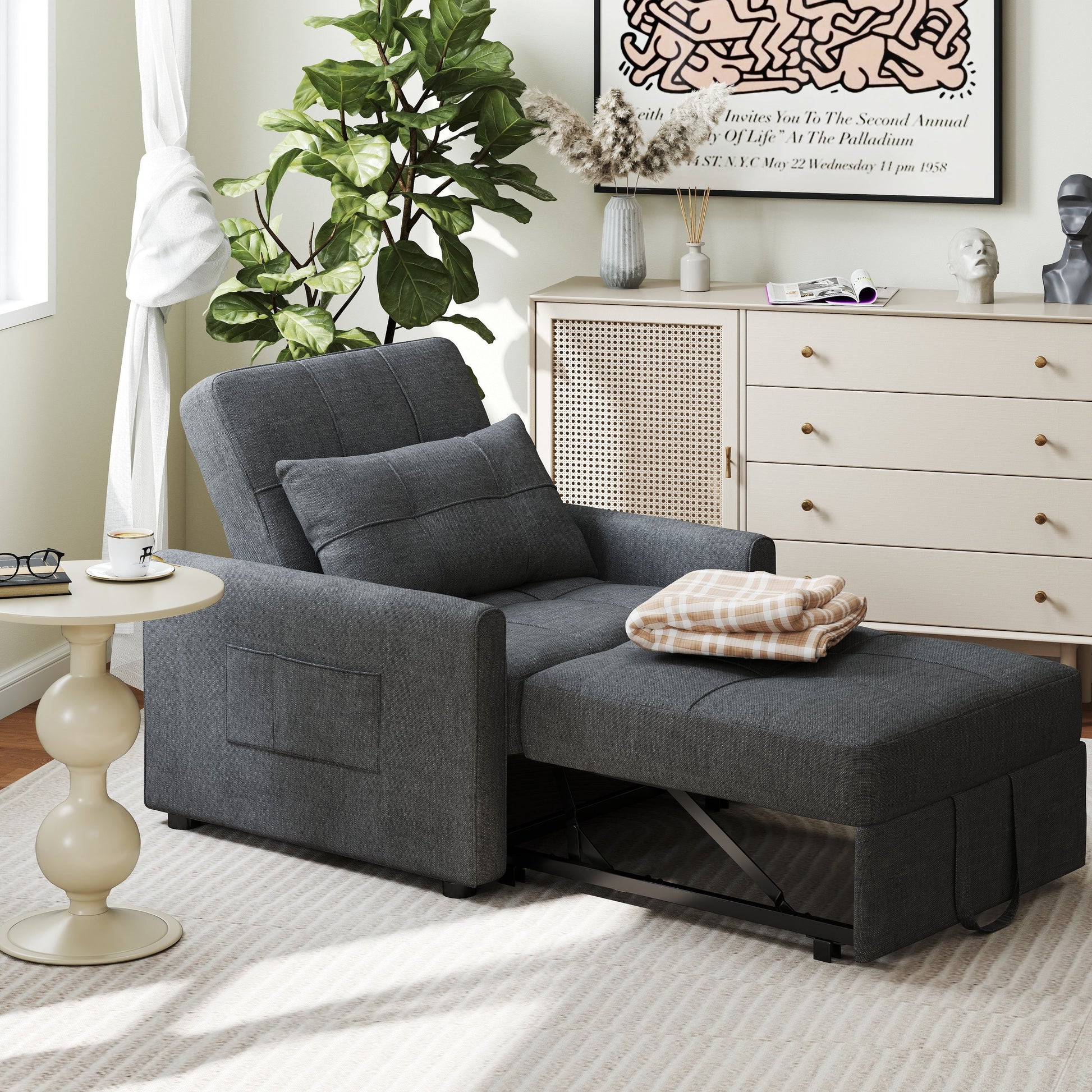Canapé-lit convertible 3 en 1, avec fauteuil gigogne et lit pliant, idéal pour le salon.