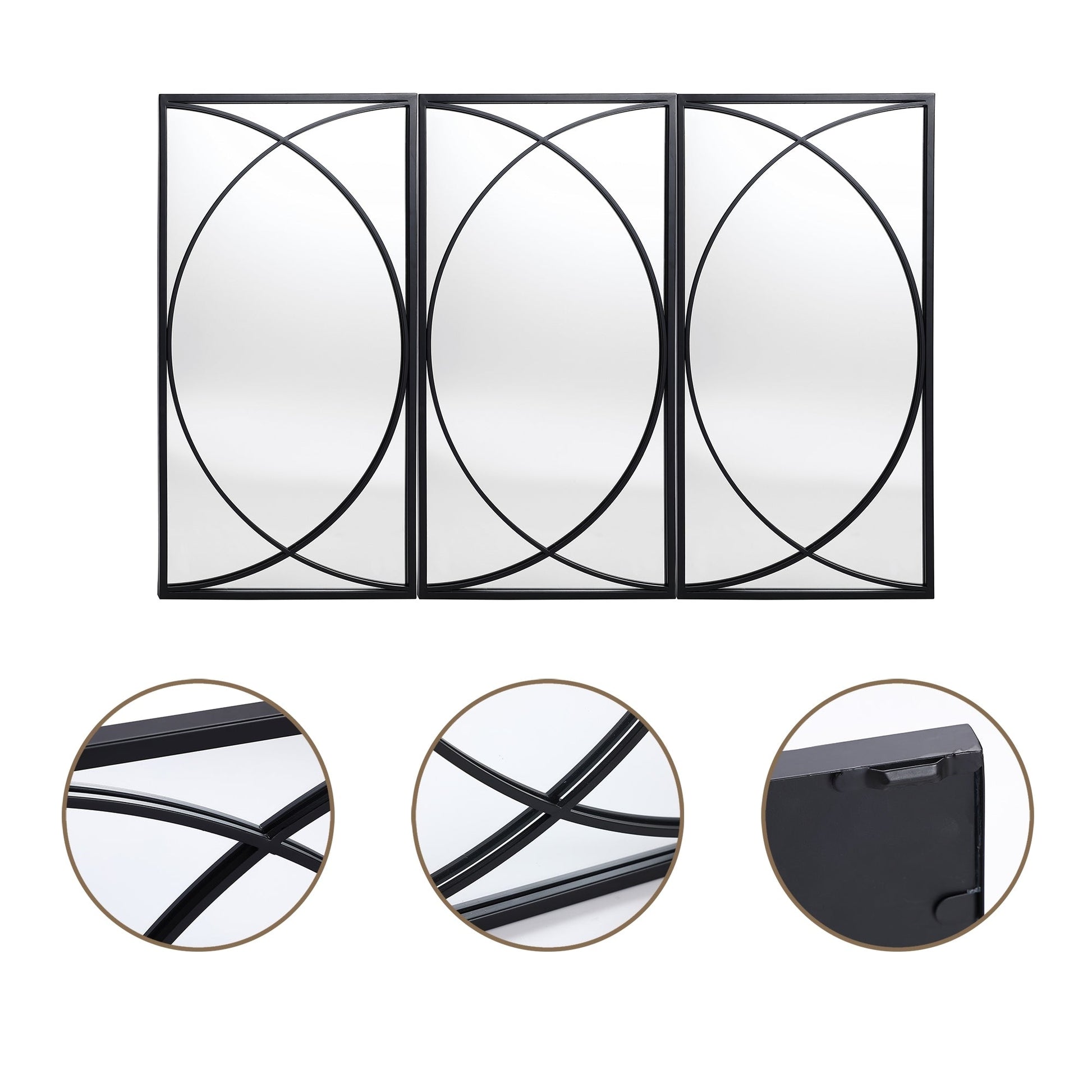 Ensemble de 3 miroirs muraux rectangulaires en métal noir - 31,9 cm (H) x 15,75 cm (L) x 0,75 cm (P)
