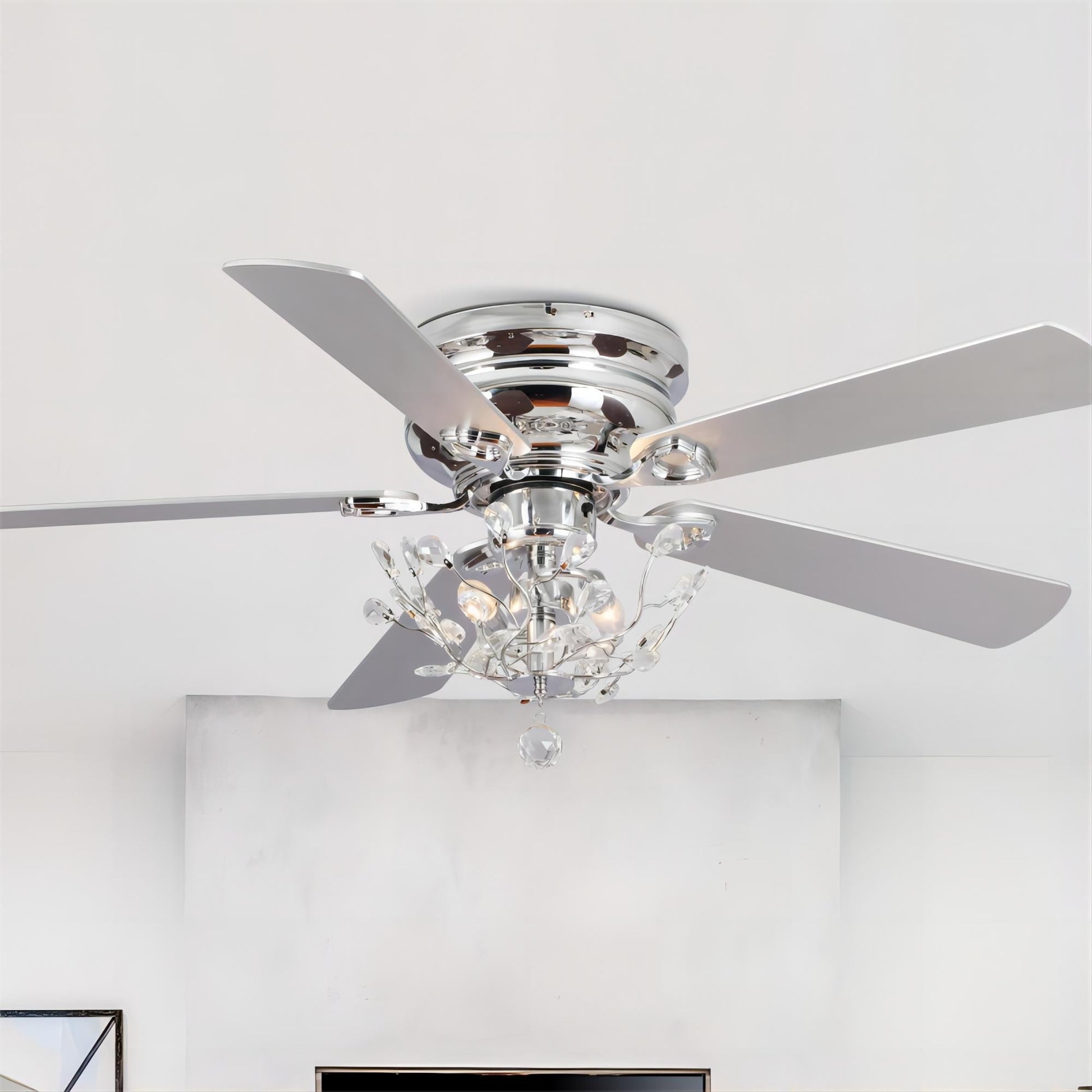 Ventilateur de plafond moderne réversible à 5 pales en cristal de 48 pouces avec télécommande