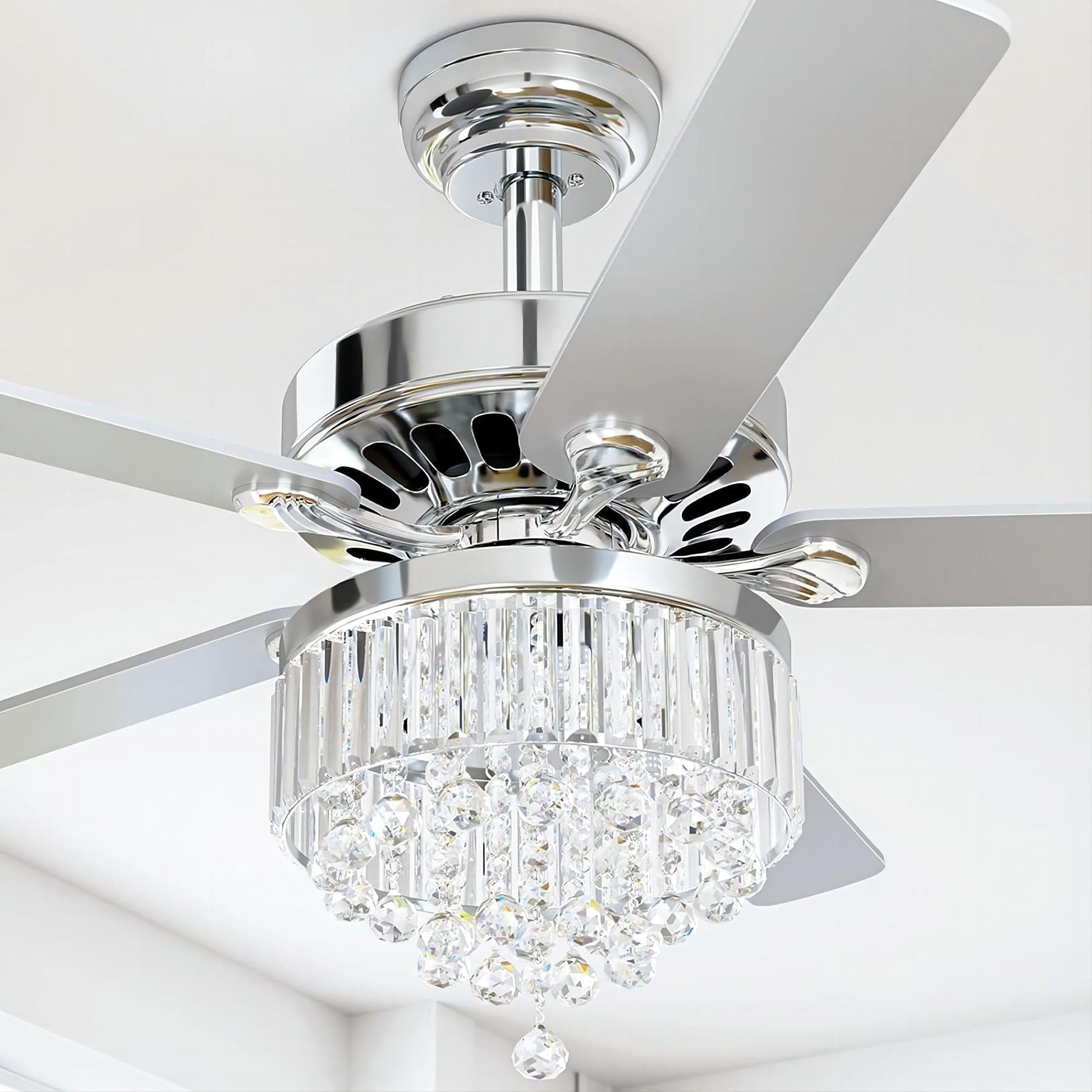 Lustre ventilateur de plafond en bois à 5 pales en cristal de 52 pouces avec télécommande