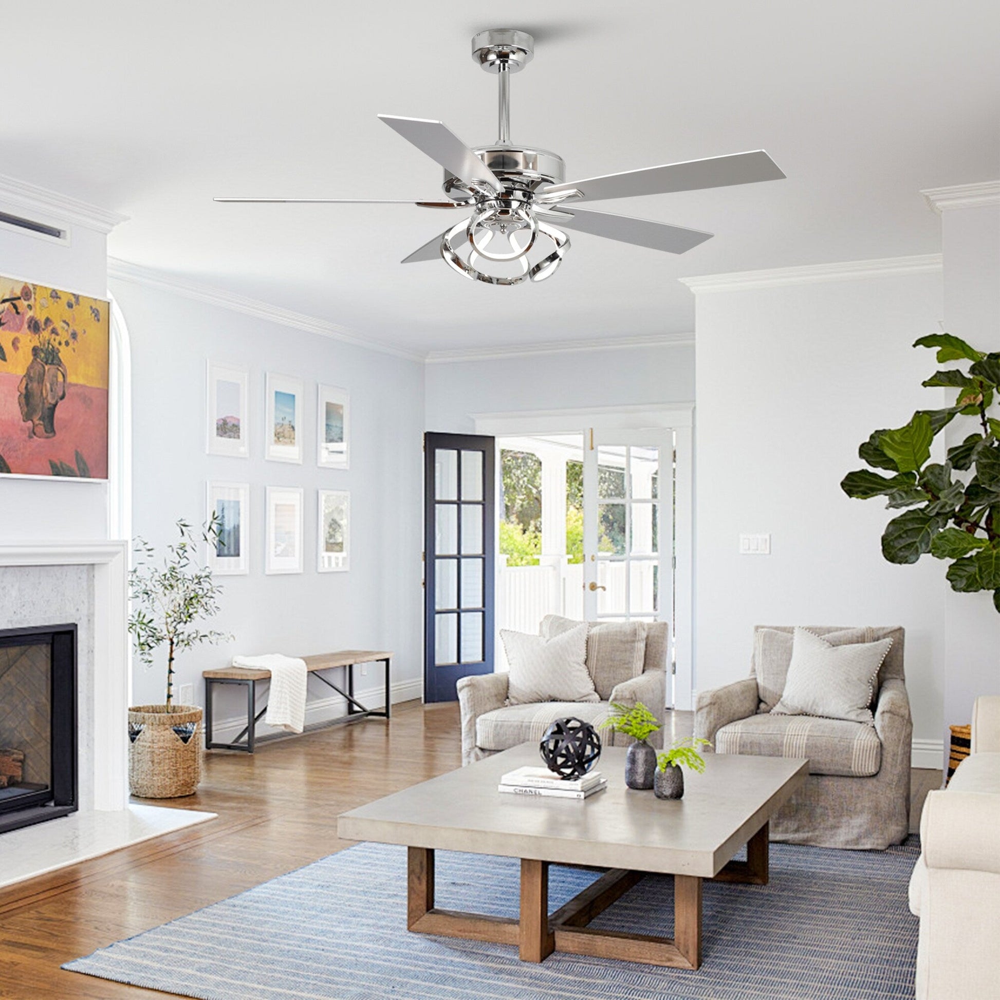 Ventilateur de plafond intérieur moderne chromé/noir de 52 pouces avec éclairage LED à intensité variable et télécommande