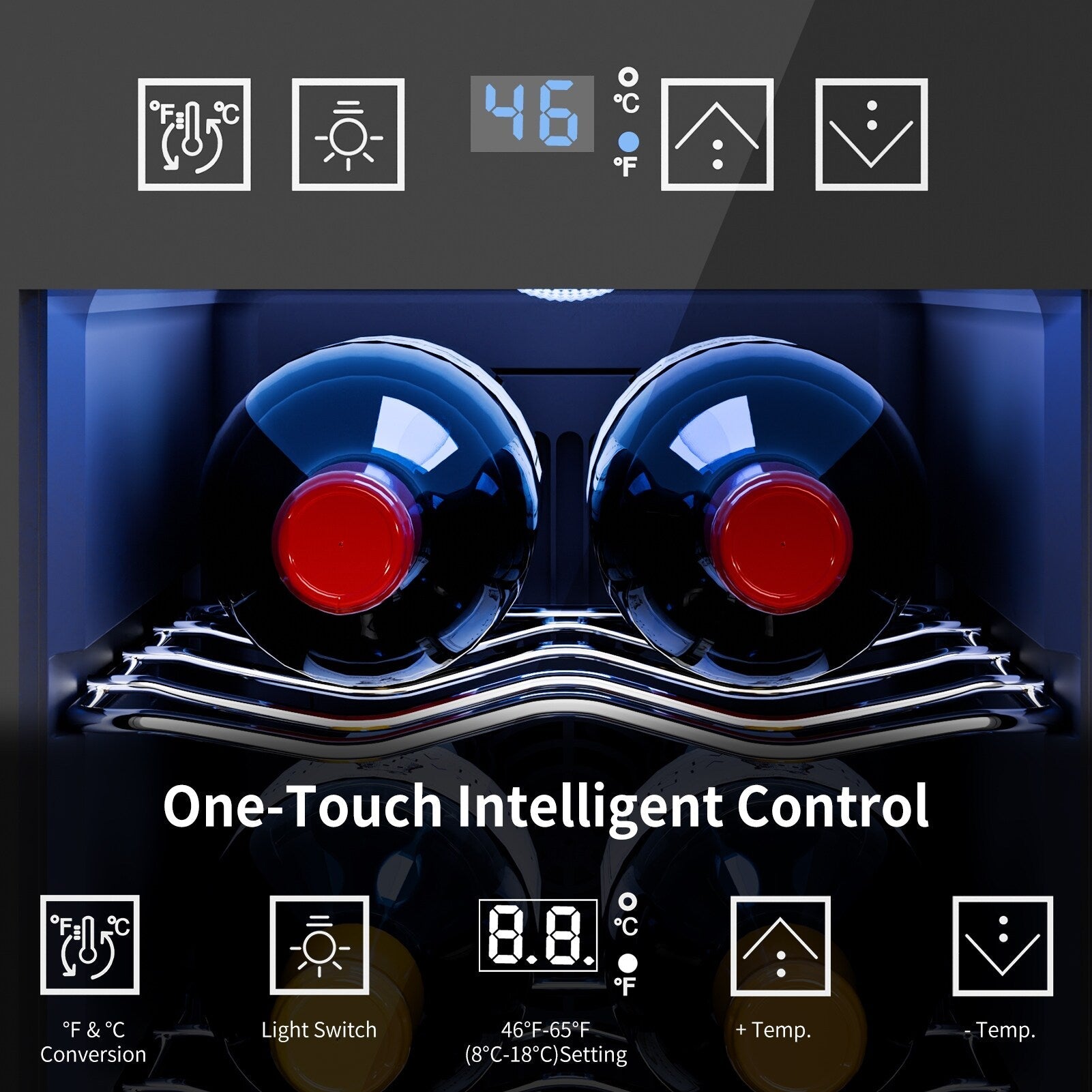 Commandes intelligentes à une touche : L’écran tactile intuitif facilite l’utilisation. Vous pouvez régler la température entre 8 et 18 °C (46 et 65 °F), allumer ou éteindre la lumière LED et même convertir entre Fahrenheit et Celsius en quelques clics.