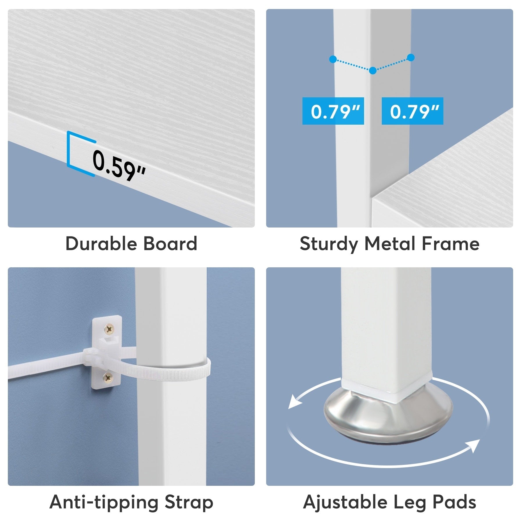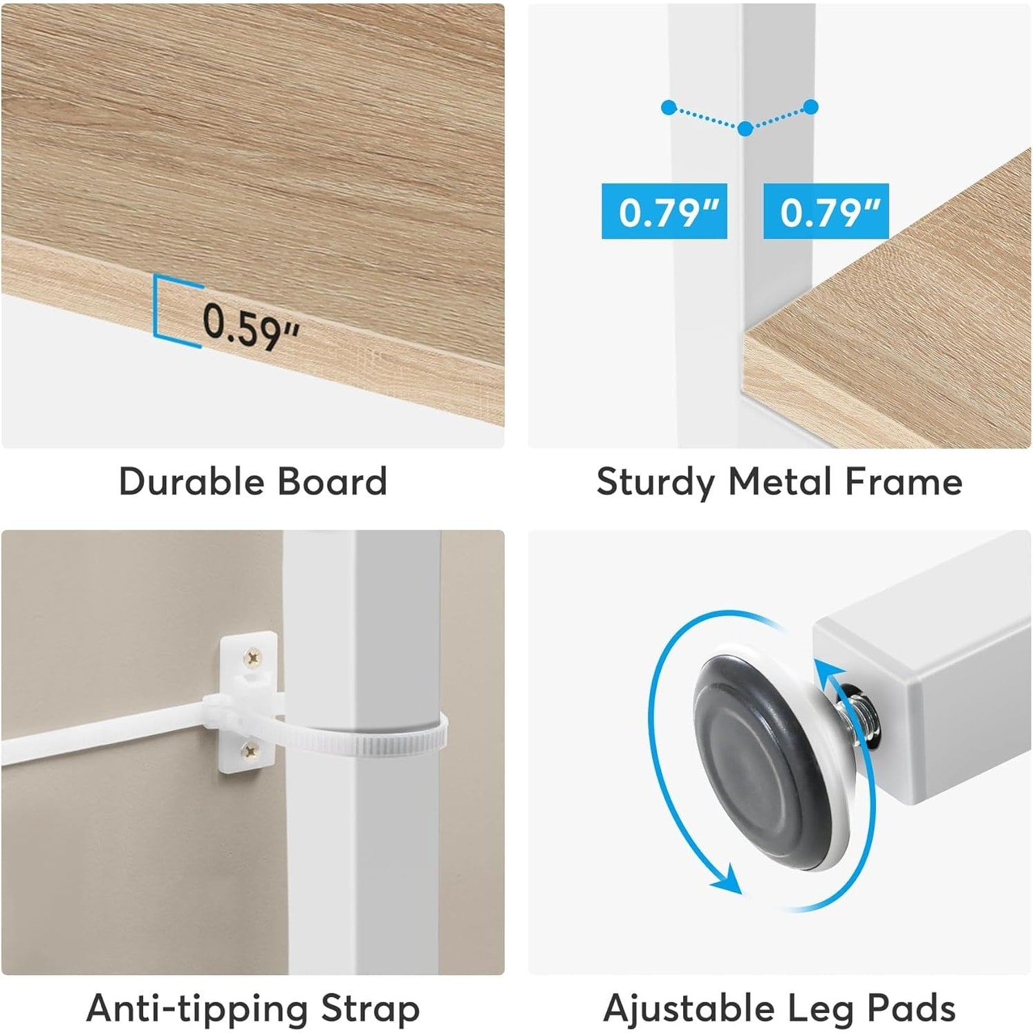- Structure stable : Fabriquées en panneaux de particules E1 écologiques de haute qualité et dotées d’une structure en tubes d’acier inoxydable épais, nos bibliothèques sont extrêmement robustes, stables et durables, avec une capacité de charge élevée allant jusqu’à 136 kg (300 lb). Un support arrière en acier décalé renforce la solidité et la fermeté du présentoir.