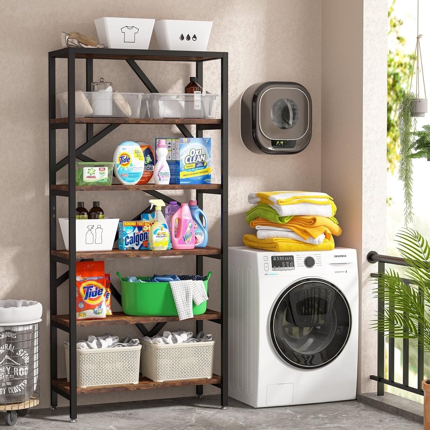 Vous cherchez une étagère haute et pratique pour optimiser le rangement de votre maison et de votre chambre ? Cette étagère multifonctionnelle, qui fait également office de meuble de rangement, est la solution idéale pour organiser et ranger vos appareils électroménagers (mixeur, four, grille-pain), vos ustensiles de cuisine et votre vaisselle. Outre son utilisation comme meuble de rangement, elle est aussi parfaite comme organisateur de coin café pour y placer fruits, pain, conserves, boissons, machine à café, etc. Son design unique apporte une touche d'élégance à votre intérieur. Sa grande capacité permet de ranger non seulement des fournitures de bureau volumineuses, mais aussi des livres, des documents, etc. Cette étagère multifonctionnelle vous offrira un espace de travail propre et agréable, aussi bien à la maison qu'au bureau. Dites adieu au désordre, optez pour la simplicité et gagnez en confort et en productivité. Ses pieds en métal lui confèrent un style industriel vintage, tandis que ses étagères ouvertes offrent un espace de rangement supplémentaire pour vos fournitures de bureau comme une imprimante ou un scanner. Ses 6 niveaux de rangement offrent un espace généreux pour exposer vos objets préférés : livres, albums photo, objets de décoration, plantes en pot, etc.