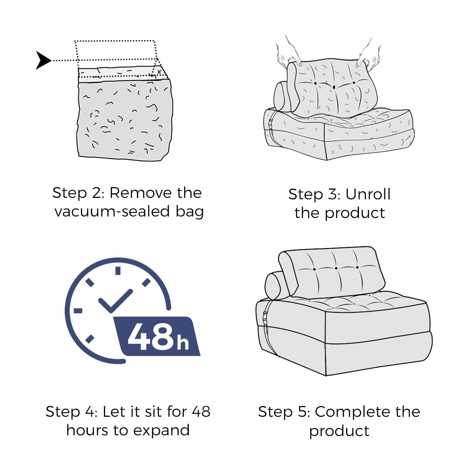 - Livraison et installation pratiques : Compressé et emballé sous vide pour une expédition efficace ; prévoir 48 heures après le déballage pour que le canapé-lit reprenne sa forme originale.