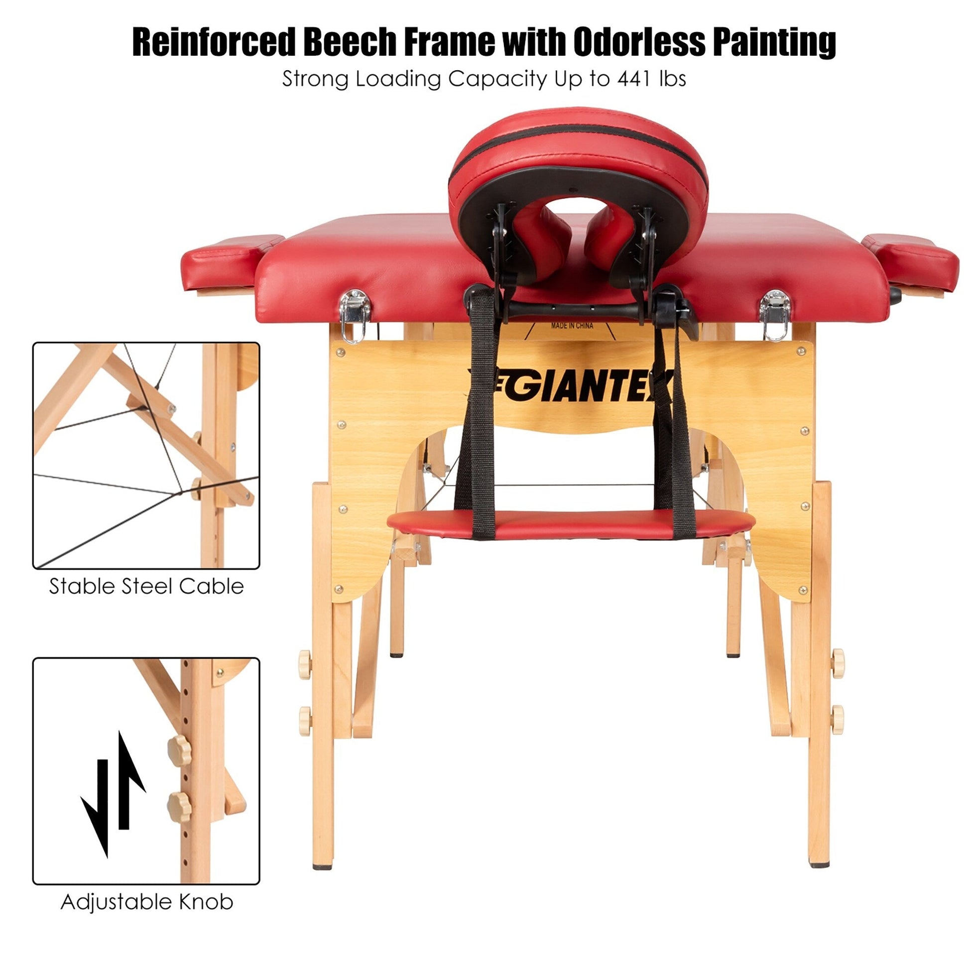 Table de massage portable de 213 cm (84 po) de long, réglable, pour le visage, les soins spa et les tatouages, avec sac de transport.