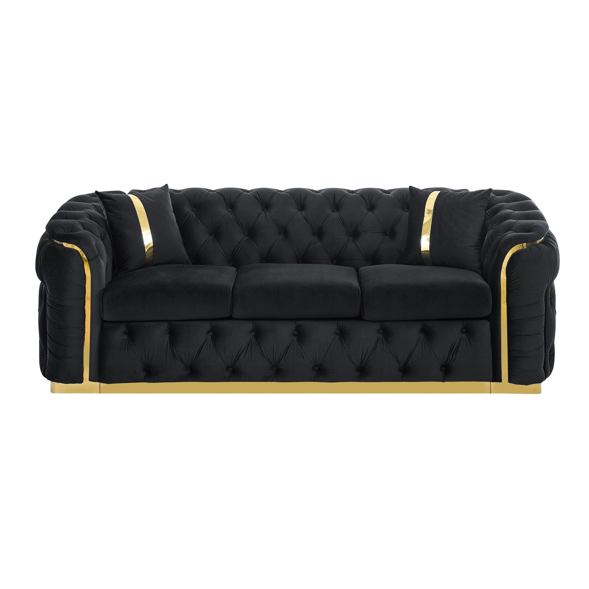 Canapé 3 places en velours 90.6 avec 2 coussins haute densité, accents dorés et oreillers
