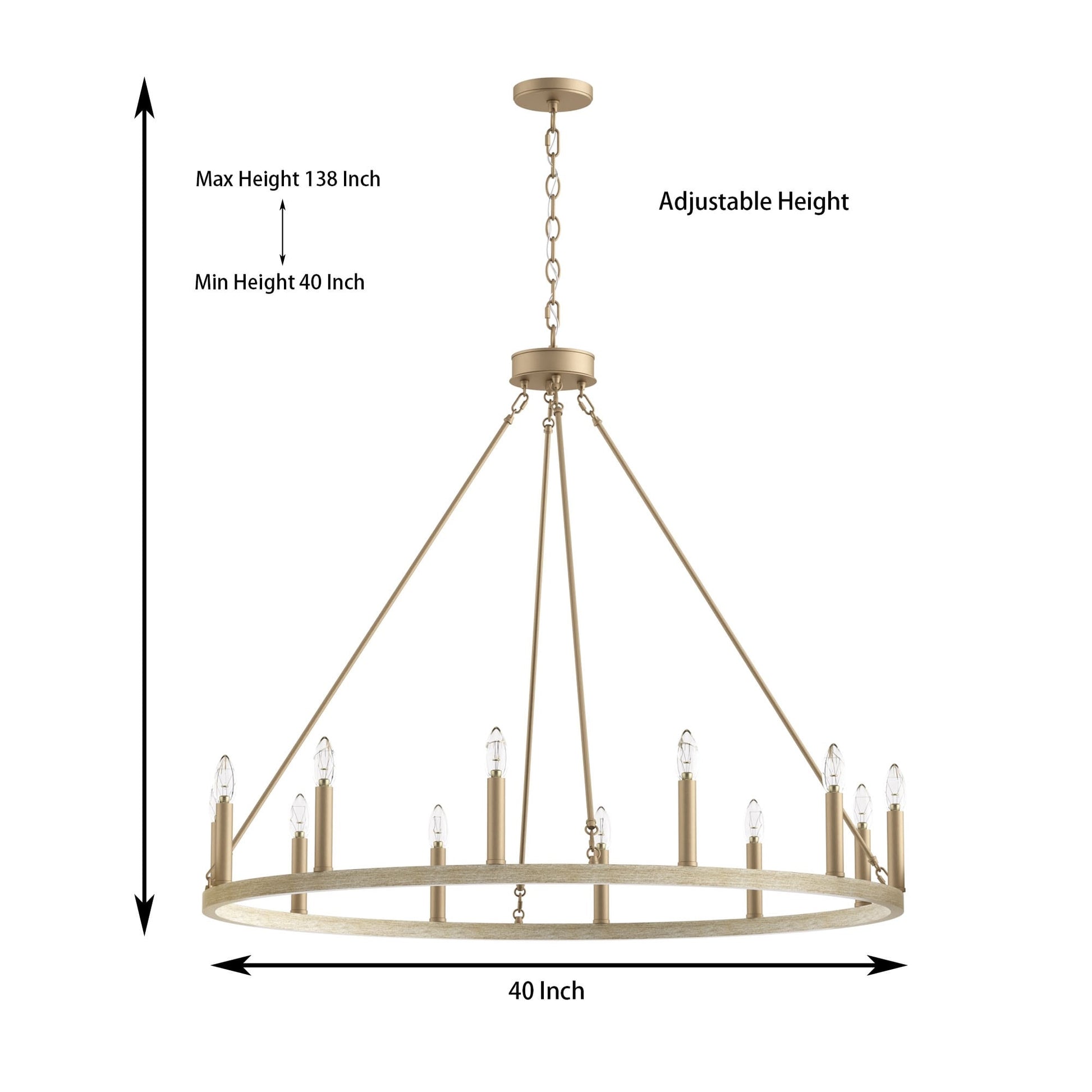 Apportez une touche de style champêtre moderne à votre intérieur avec le lustre Wagon Wheel. Fabriqué en acier de haute qualité et disponible en plusieurs coloris, il s'adapte à différents styles, tels que le style champêtre moderne, le style campagne française et le style bord de mer. Avec sa grande taille de 102 cm (40 pouces), ce lustre est idéal pour les salons, les entrées, les escaliers, les couloirs, les salles à manger et les chambres. Équipé d'une chaîne de 244 cm (96 pouces), sa hauteur est réglable de 102 cm à 350 cm (40 à 138 pouces), ce qui le rend parfait pour les plafonds standards, hauts et même inclinés, offrant ainsi une grande flexibilité d'installation. Ses 12 supports de bougies (ampoules candélabres vendues séparément) diffusent une lumière douce et agréable.