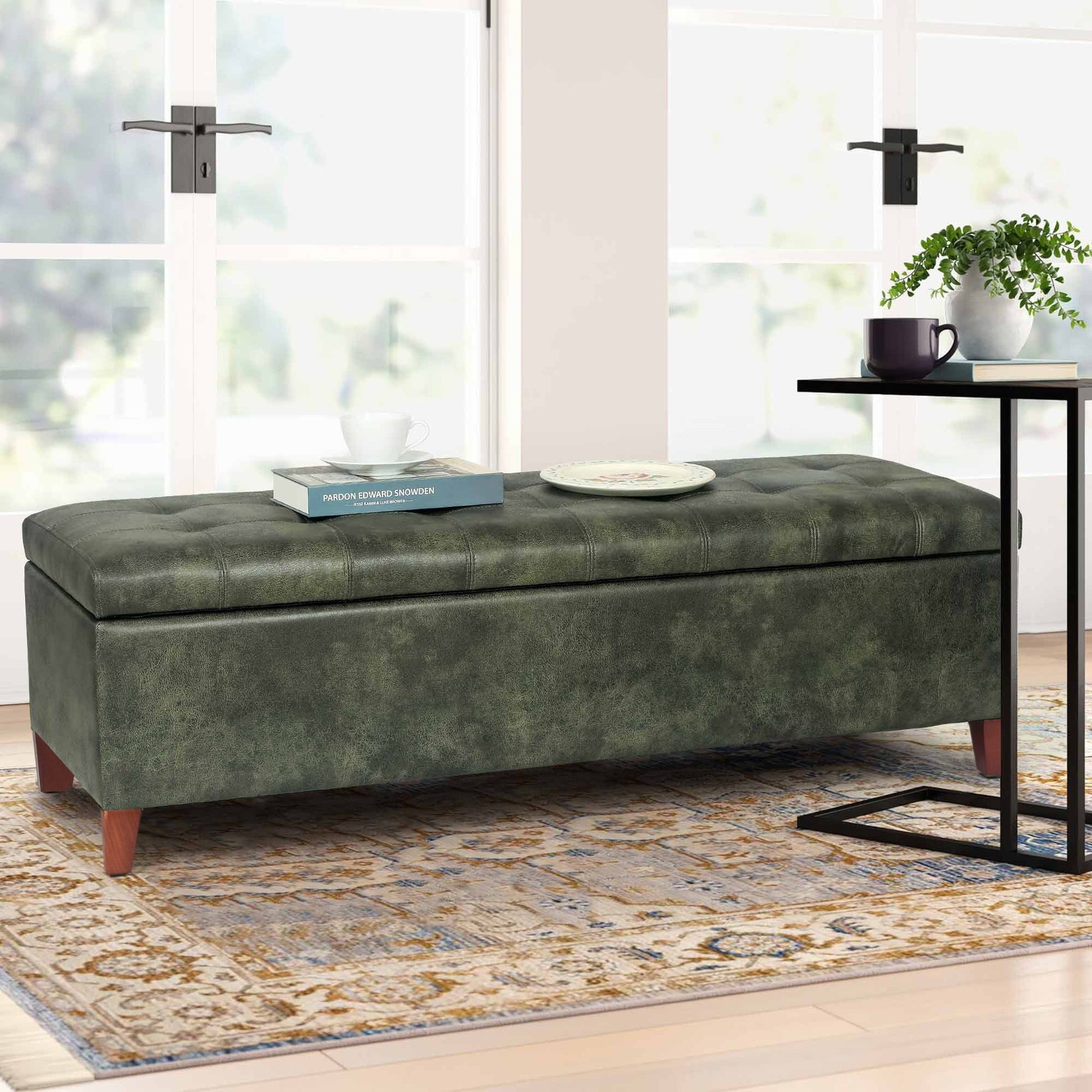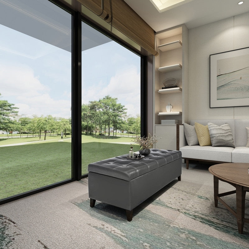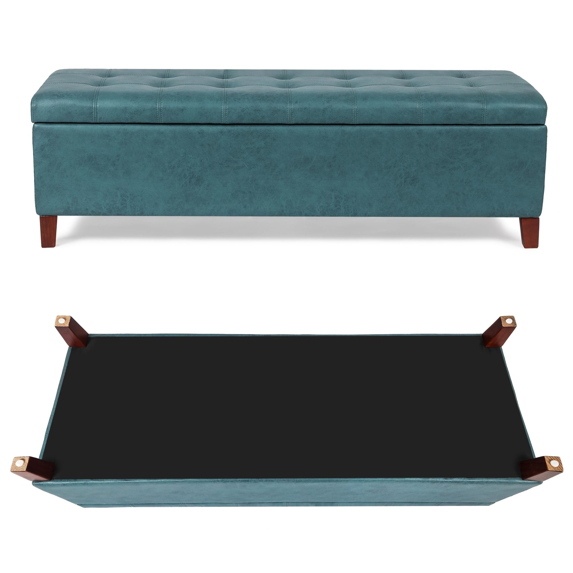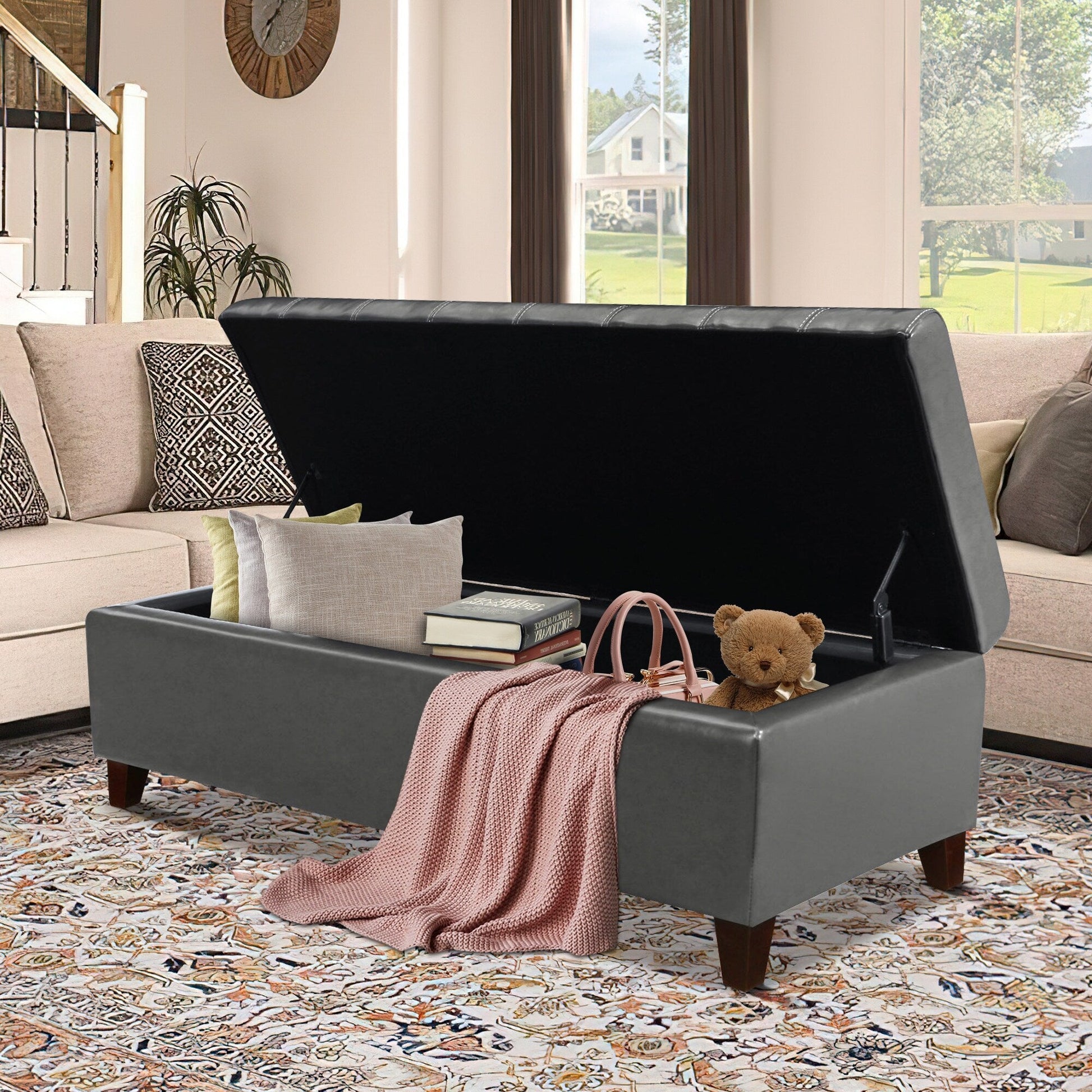 Apportez une touche d'élégance et de fonctionnalité à votre intérieur avec ce banc-pouf coffre. Disponible en plusieurs coloris, ce meuble raffiné est doté d'un rembourrage capitonné pour un confort optimal et d'un grand espace de rangement intérieur, idéal pour les couvertures, les livres ou autres objets du quotidien. Son design surélevé apporte du cachet à votre chambre ou votre entrée, tandis que son revêtement en cuir reconstitué résistant garantit une qualité durable.
