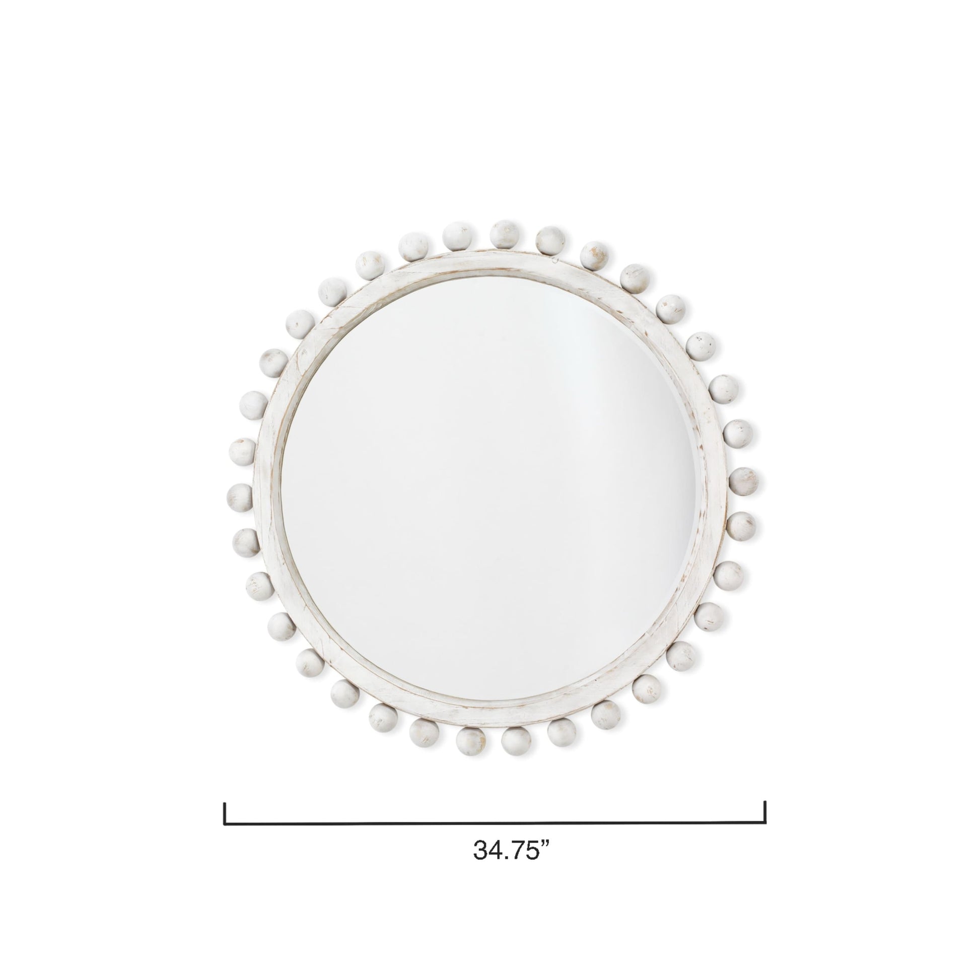 Apportez une touche d'élégance à votre intérieur avec le miroir Orion d'Alden Décor. Ce magnifique miroir décoratif est fabriqué à la main par des artisans qualifiés à partir de bois de sapin naturel et orné de perles finement sculptées, ajoutant une note théâtrale à n'importe quelle pièce. Le miroir biseauté peut être suspendu verticalement ou horizontalement, ce qui en fait un objet polyvalent pour tous les espaces.