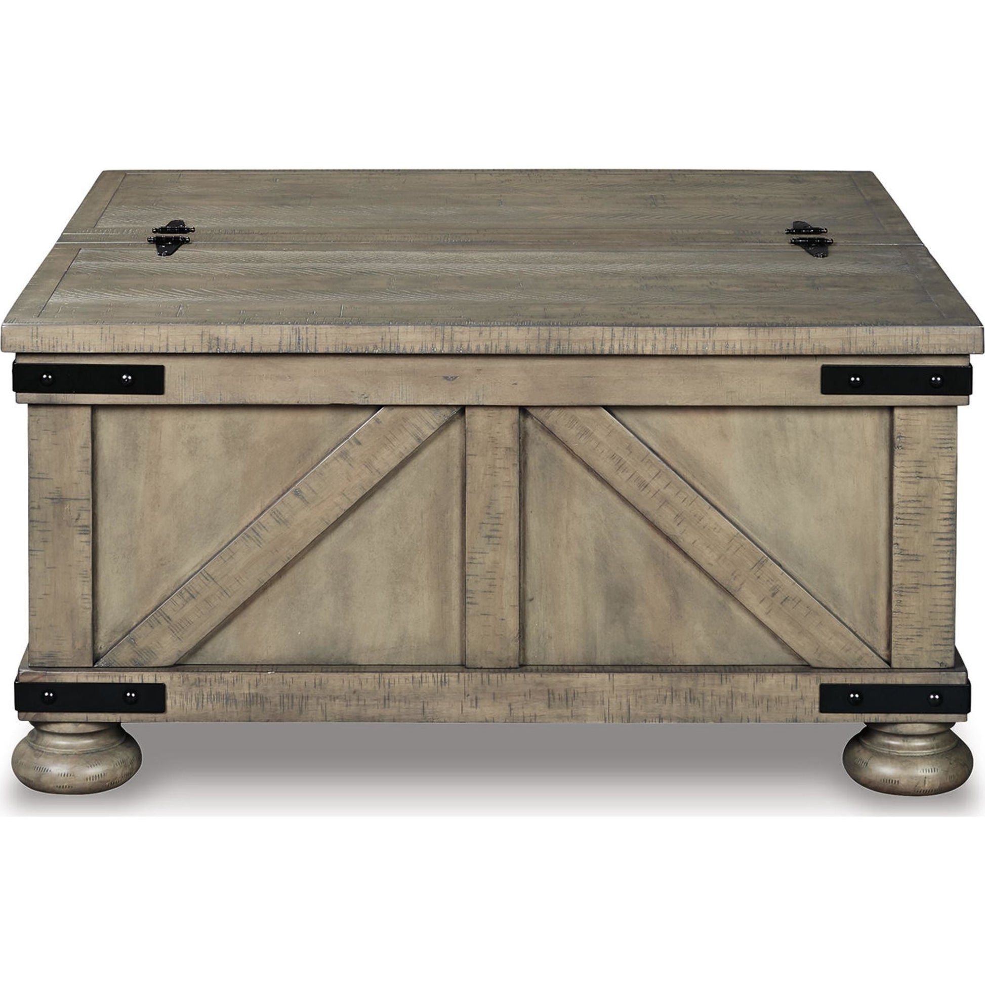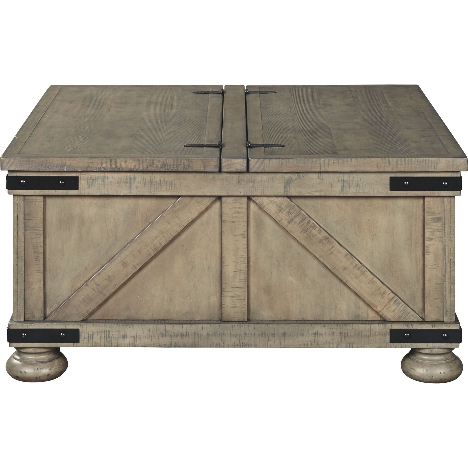 Alliez esthétique et fonctionnalité avec la table basse carrée Aldwin dotée d'un espace de rangement. Son plateau à double couvercle offre un accès facile à un vaste espace de rangement. Fabriquée en pin massif avec une finition gris vieilli, cette table basse aux dimensions généreuses incarne à merveille le charme rustique d'une maison de campagne.