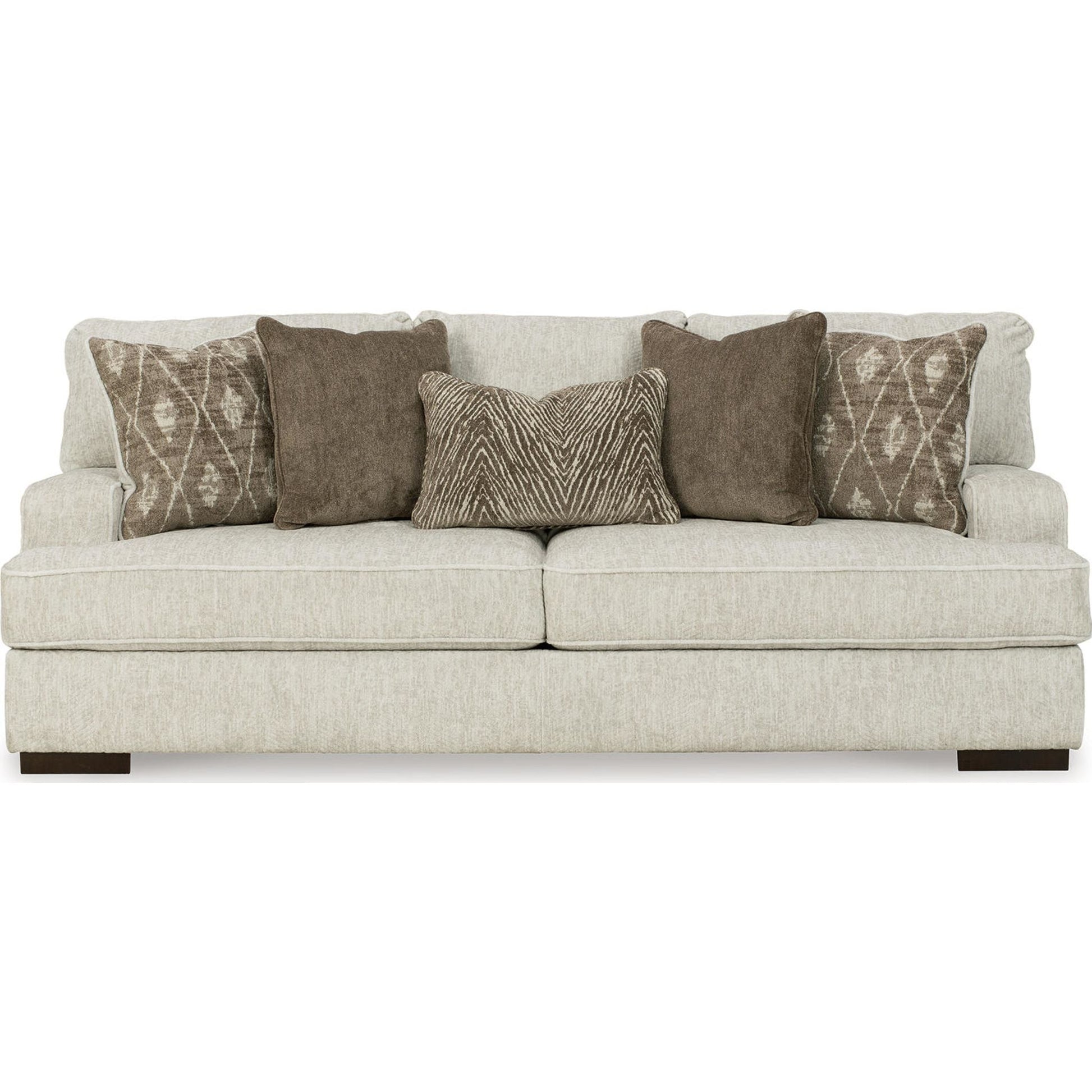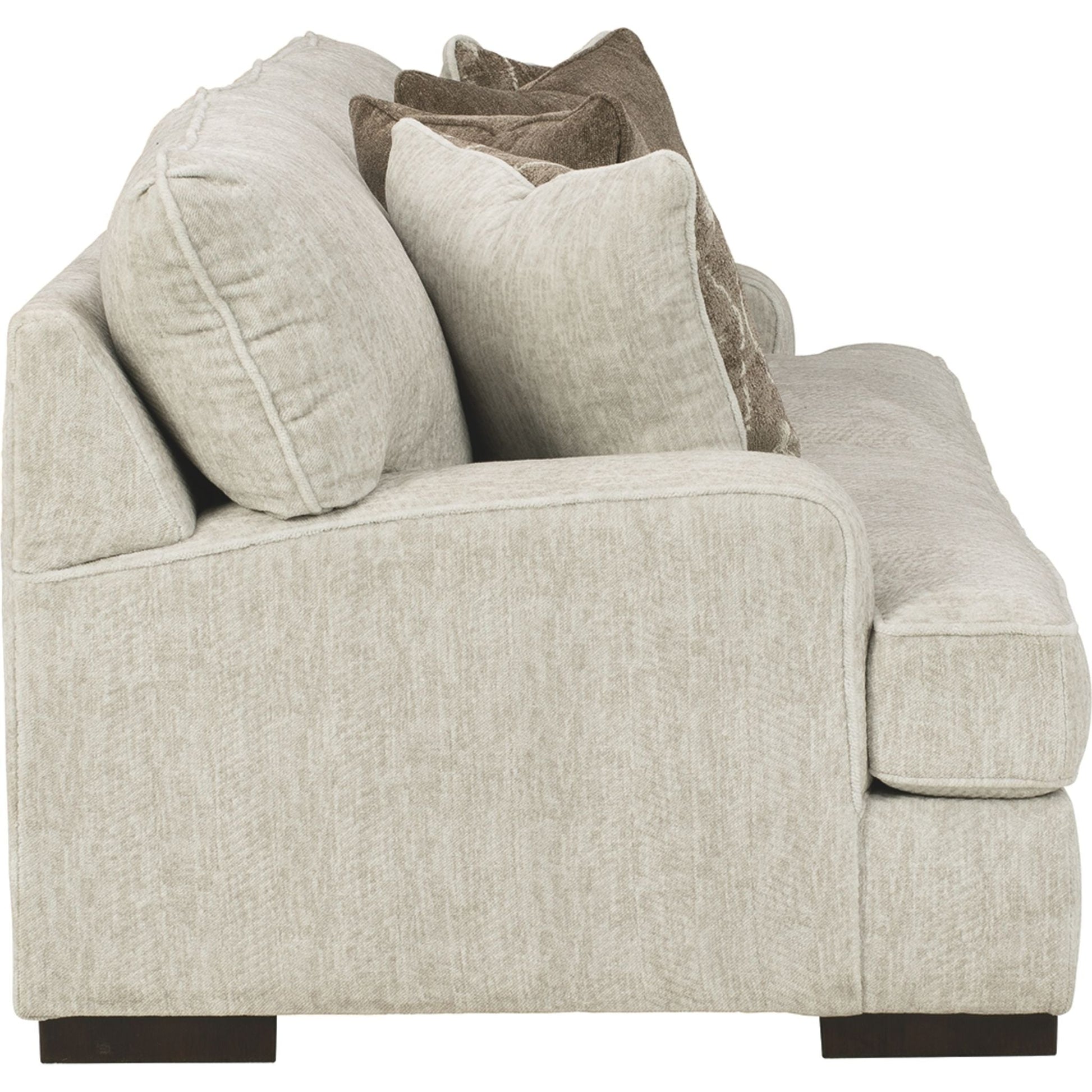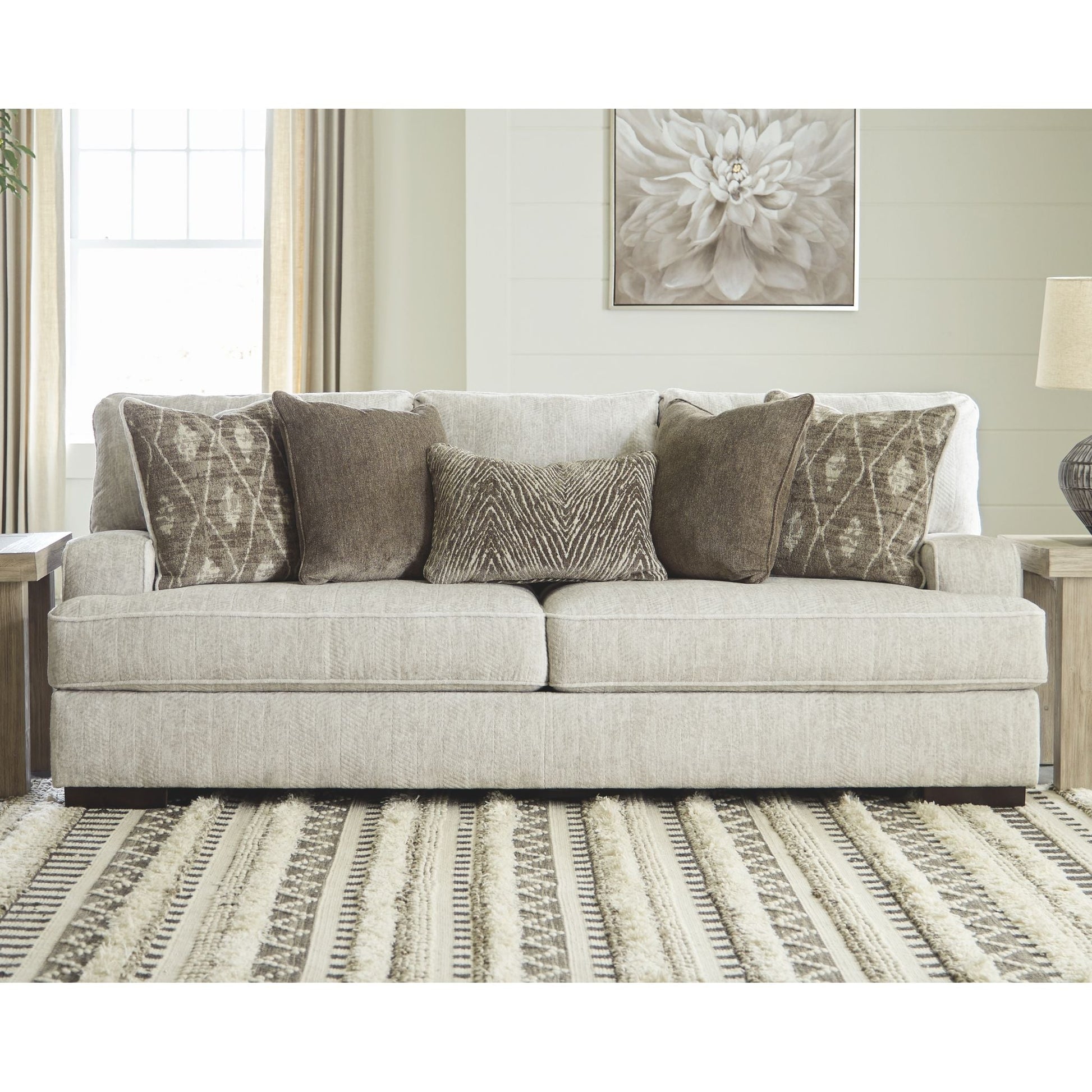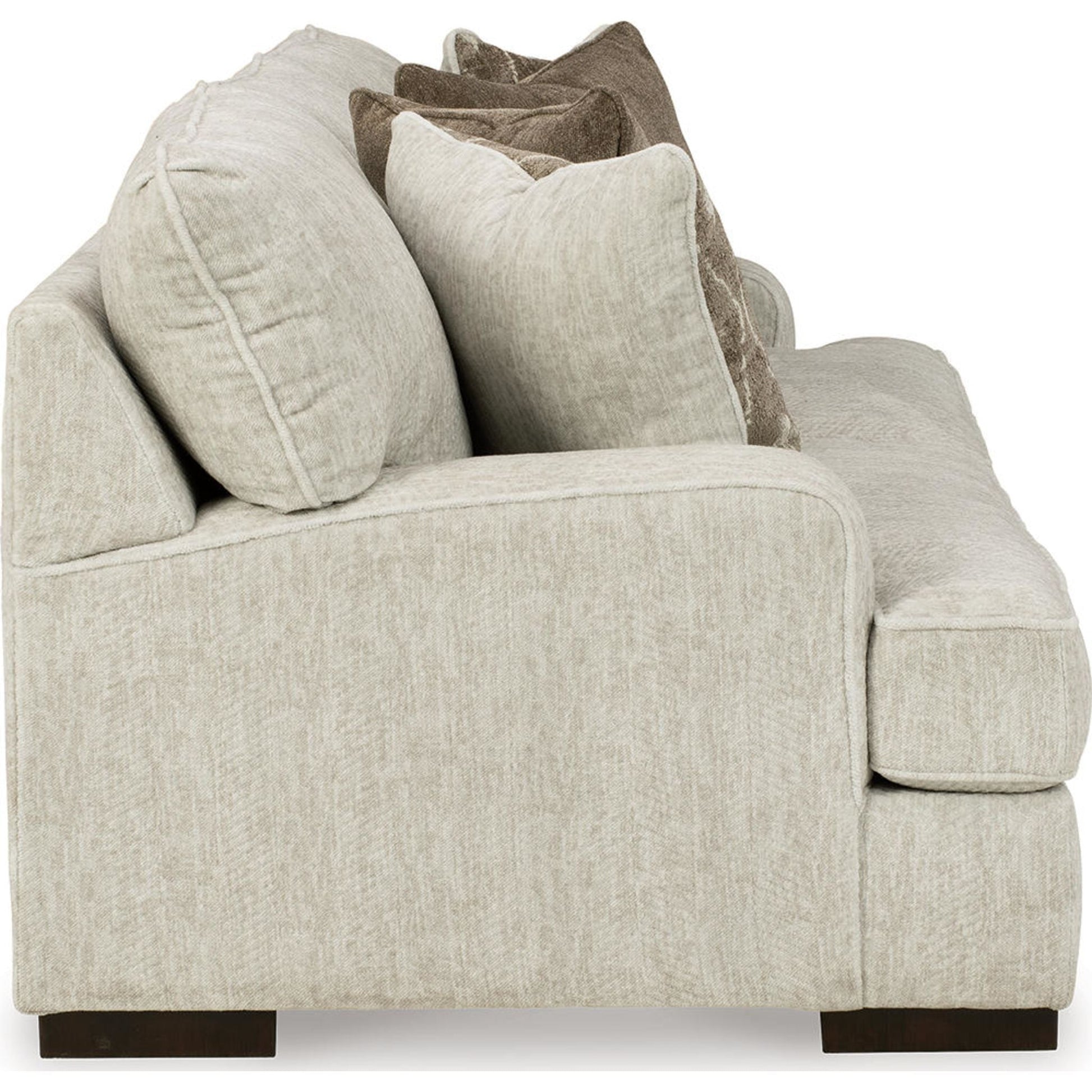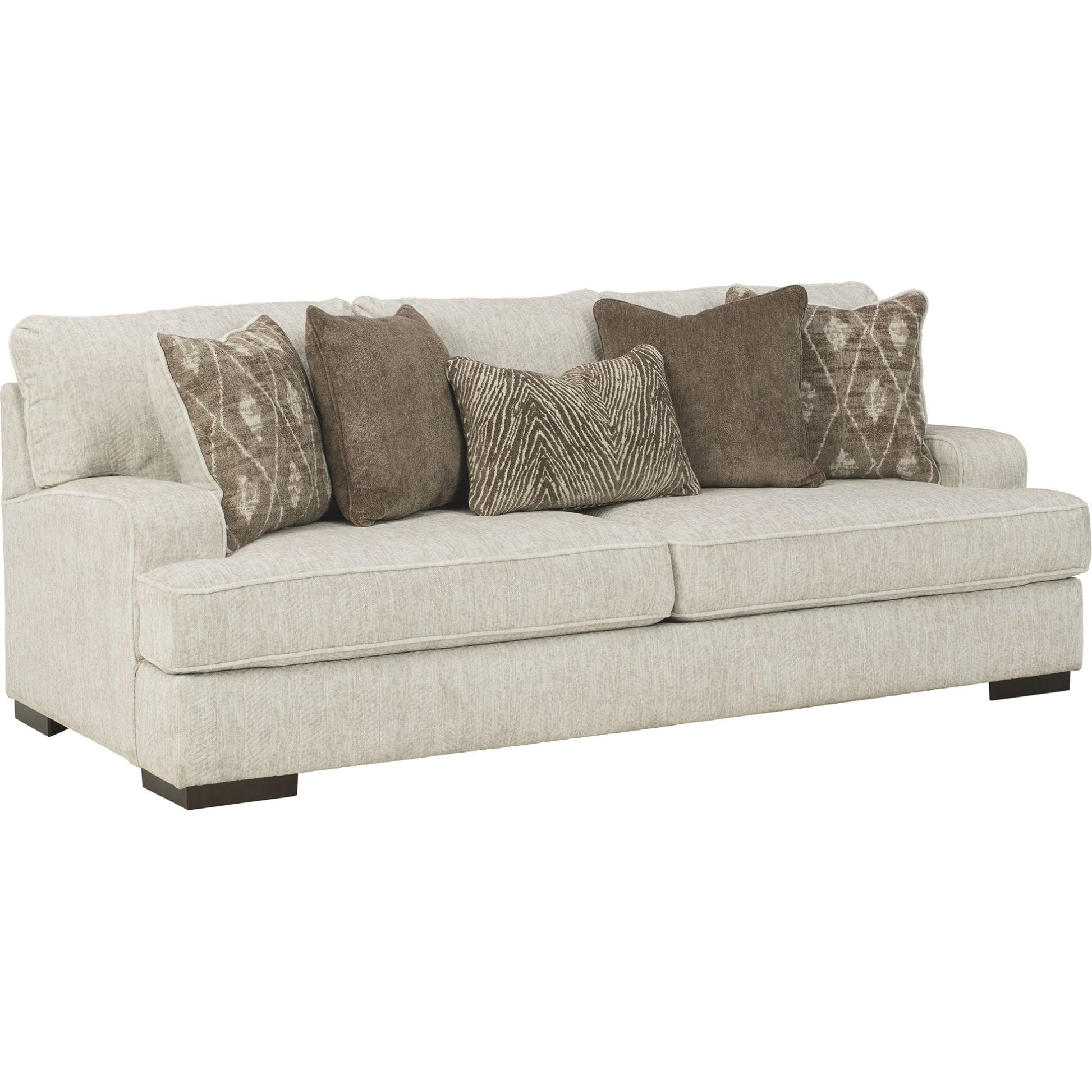 Résolument moderne et d'une élégance décontractée, le canapé Alesandra s'intègre harmonieusement à de nombreux intérieurs. Son style unique se distingue par ses accoudoirs droits aux angles arrondis, ses coussins enveloppants et ses pieds bas en bois chaleureux. Le revêtement parchemin, subtilement texturé à chevrons, sublime les tons neutres.