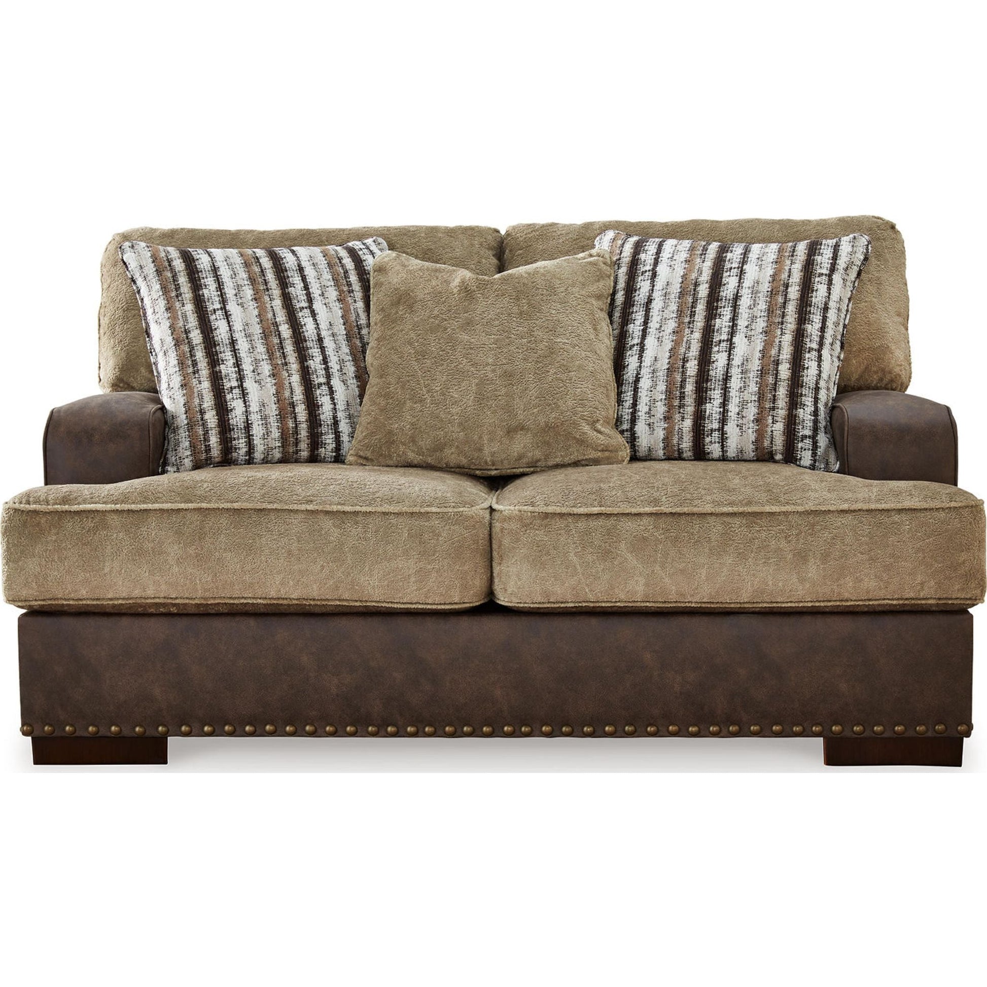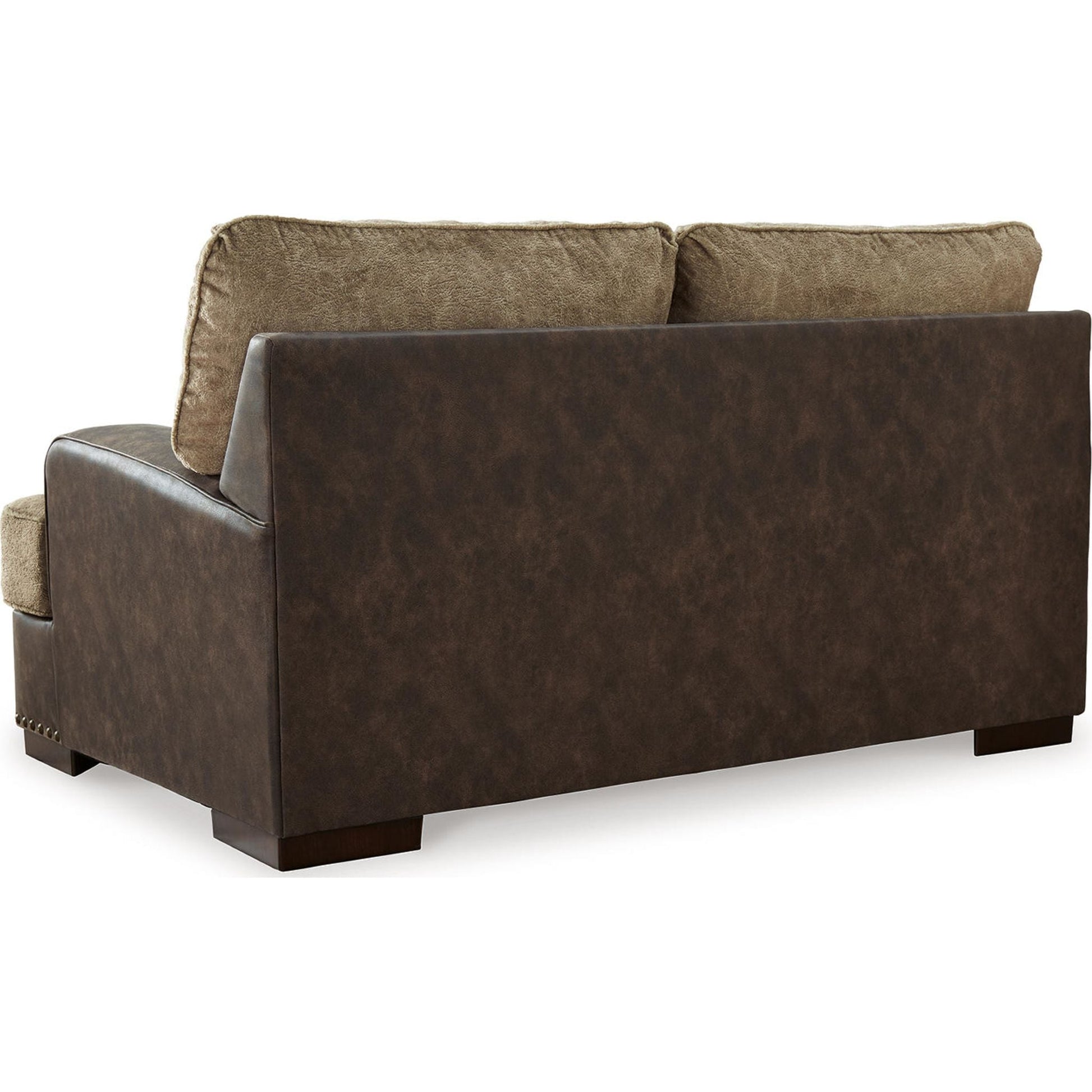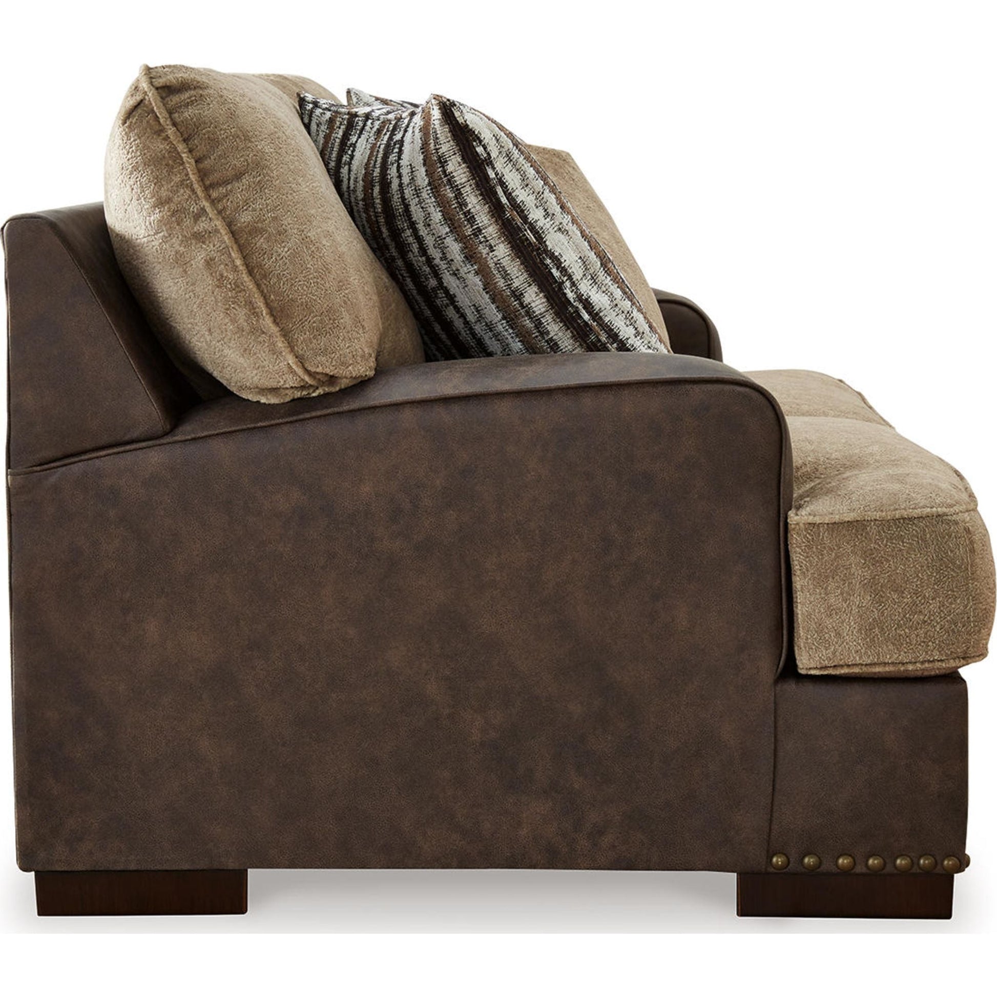 Orné d'une discrète frise de clous décoratifs, le canapé deux places Alesbury est idéal pour les amateurs de cuir. Deux teintes texturées offrent un style et un confort exceptionnels, tout en apportant une touche d'originalité. Des coussins décoratifs ajoutent une note ludique.
