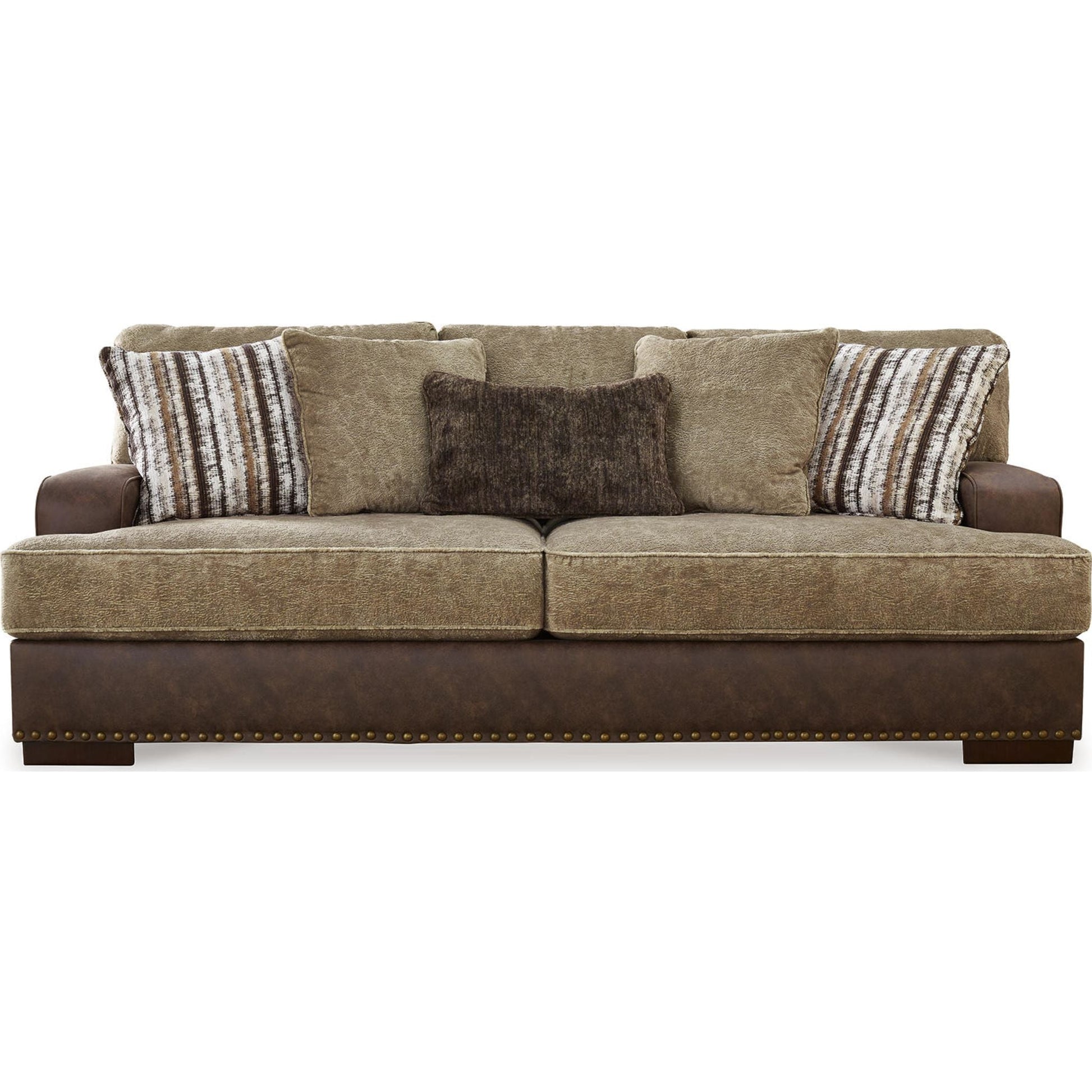 Orné d'une discrète frise de clous décoratifs, le canapé Alesbury est idéal pour les amateurs de cuir. Deux teintes texturées offrent un style et un confort exceptionnels, tout en apportant une touche d'originalité. Des coussins décoratifs ajoutent une note ludique.