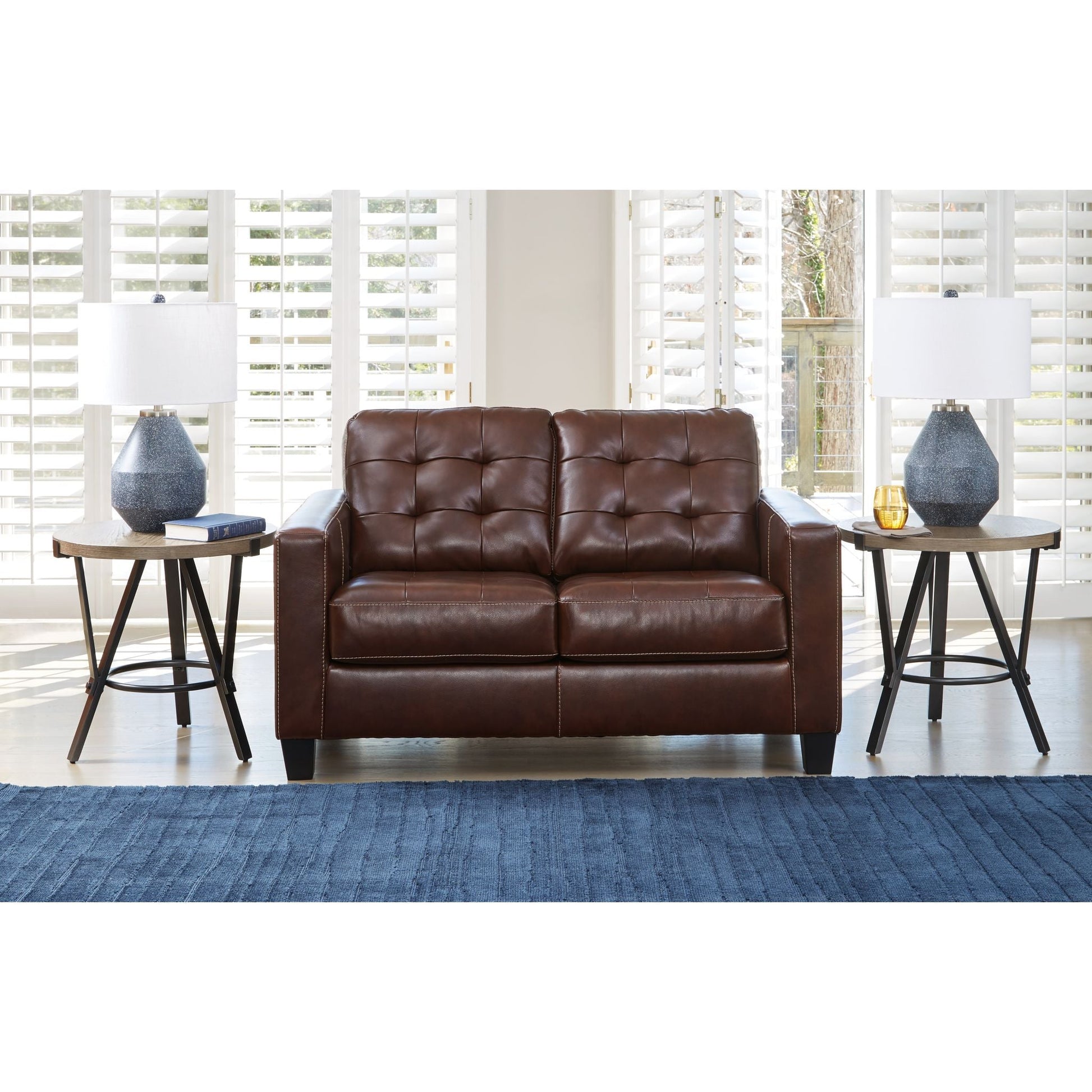 Aménagez votre espace avec la structure épurée du canapé deux places Altonbury. Les surpiqûres décoratives et le capitonnage à boutons du coussin carré lui confèrent une allure soignée. Revêtu d'une combinaison de cuir et de similicuir, ce canapé allie luxe et prix abordable.
