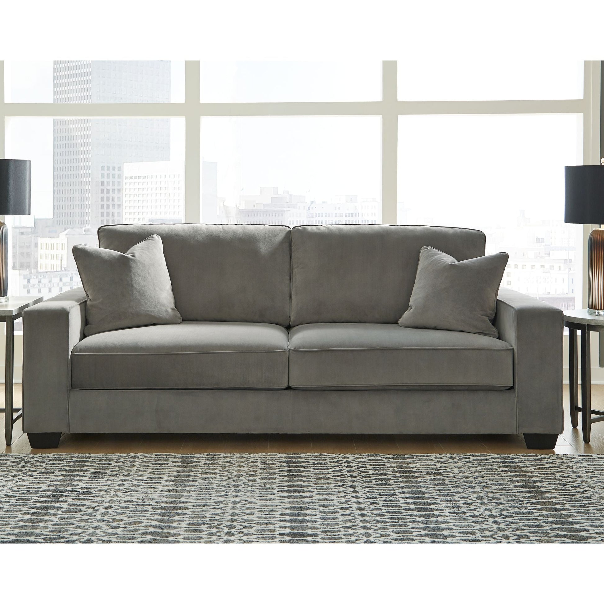 Avec son allure raffinée et haut de gamme à un prix imbattable, le canapé Angleton séduit sous tous les angles. Son design épuré, avec ses coussins superposés, ses larges accoudoirs et ses pieds fuselés noirs, lui confère une esthétique contemporaine et minimaliste. Son revêtement d'un gris grès chic et velouté sublime les tons neutres. Les coussins décoratifs assortis, garnis de plumes, incarnent à la perfection l'art du minimalisme.