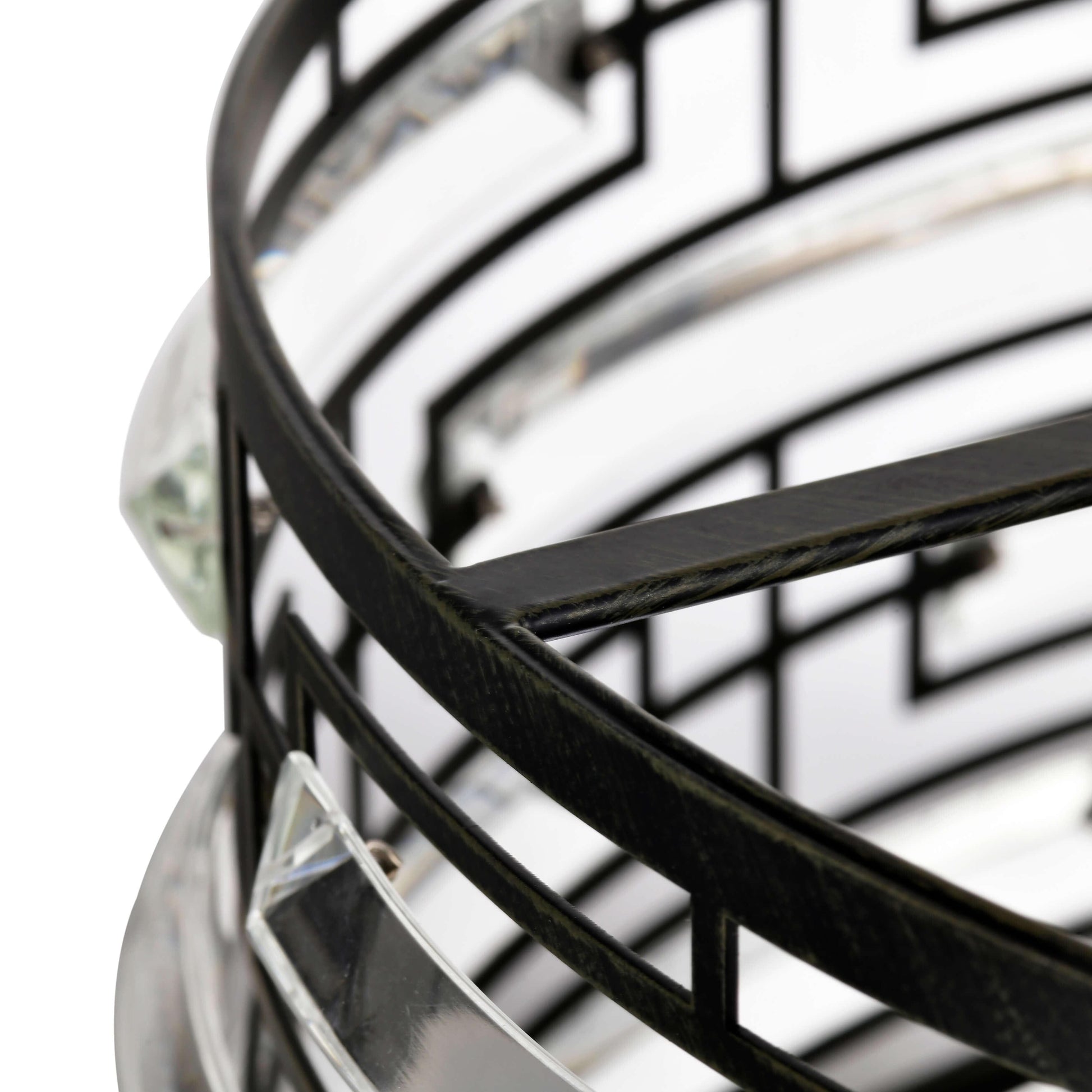Titre : Lustre Anita à abat-jour tambour et prisme en verre transparent