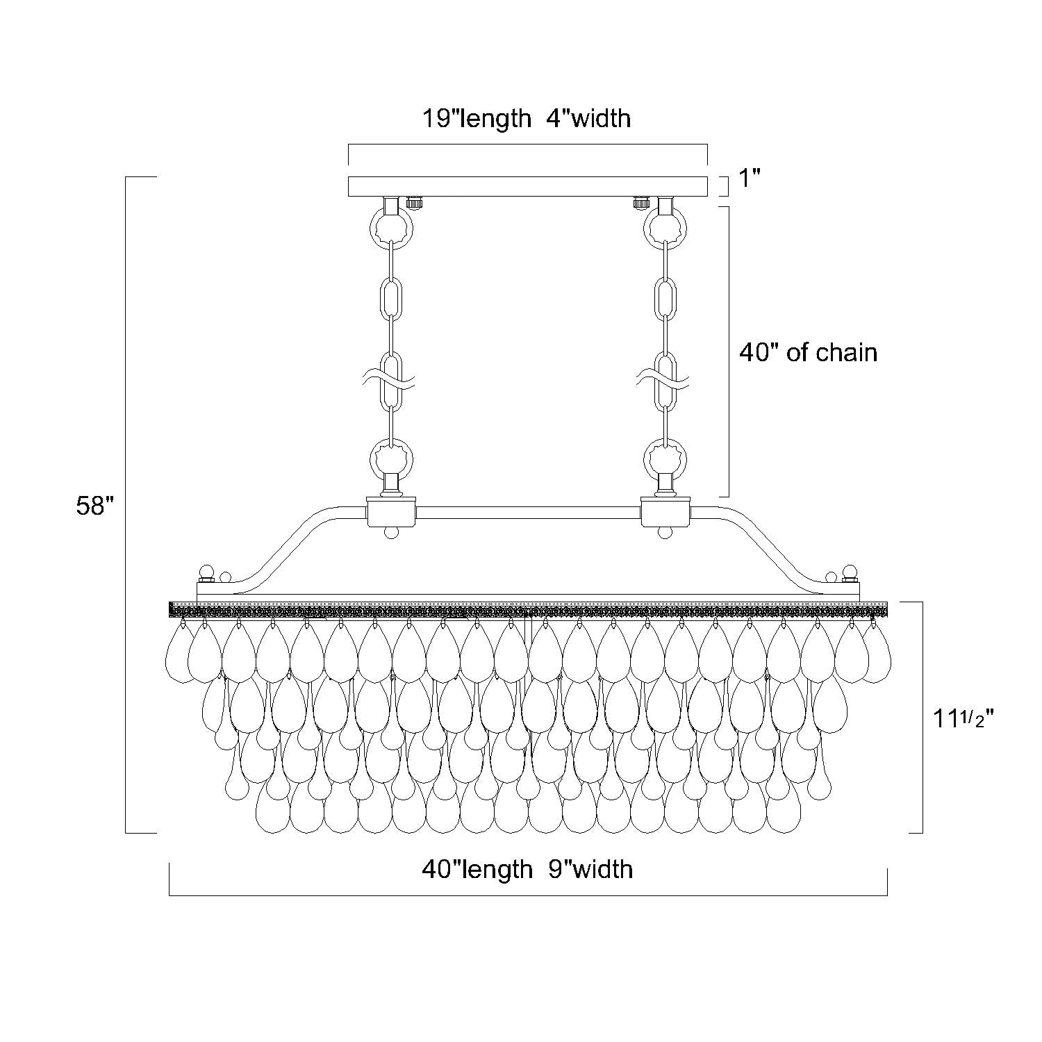 Affirmez votre style dans votre salle à manger ou votre cuisine avec ce somptueux luminaire rectangulaire à 6 lumières en bronze antique. Son allure antique lui confère un charme à la fois traditionnel et contemporain. Quatre rangées de cristaux en forme de larme diffusent une lumière douce et agréable. Grâce à ses chaînes réglables de 102 cm, il s'adapte à toutes les pièces et à toutes les configurations. De plus, il est compatible avec un variateur et des ampoules adaptées.