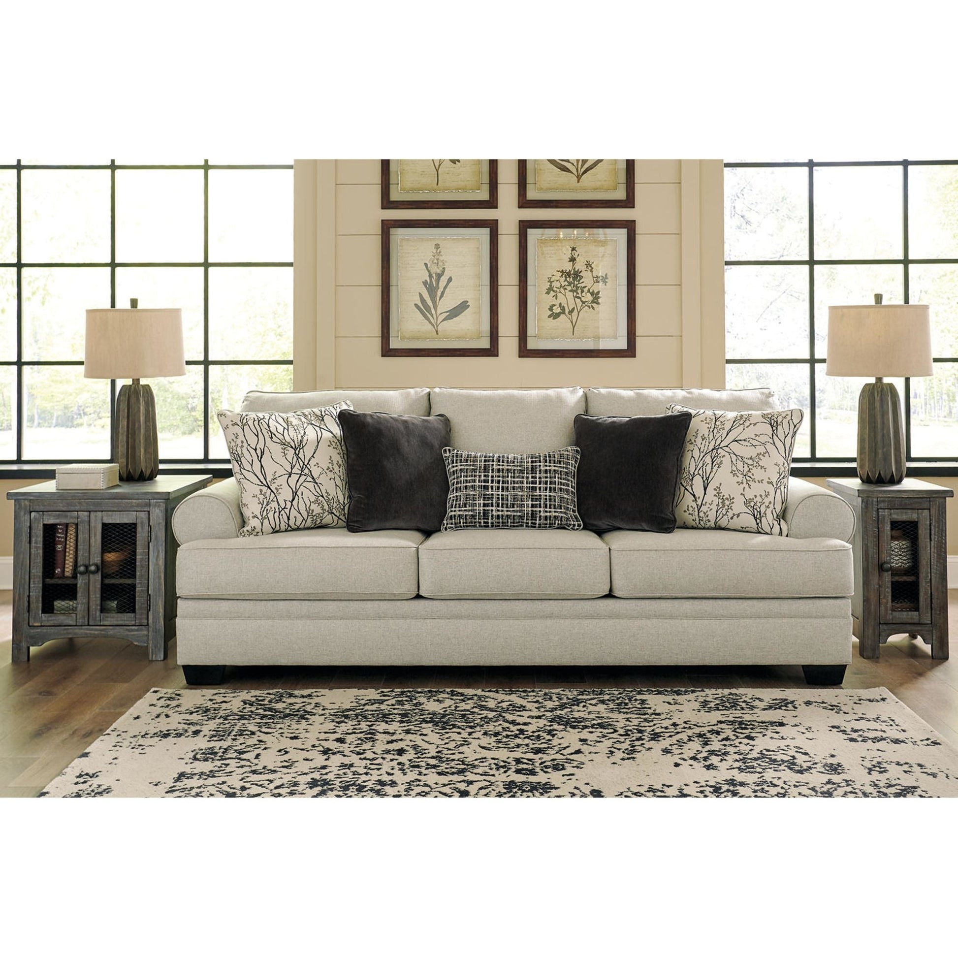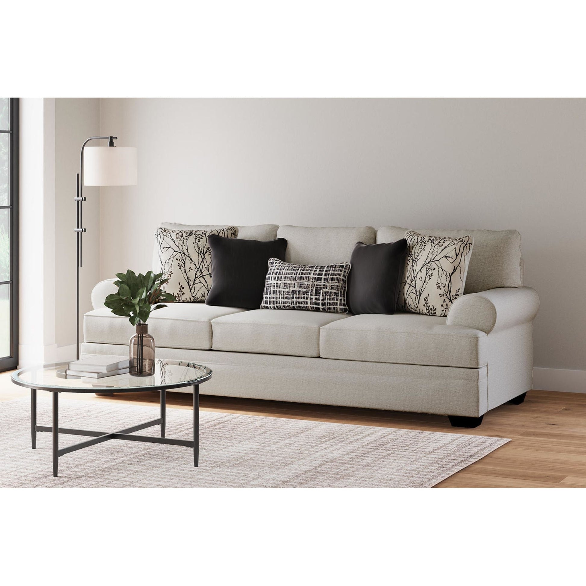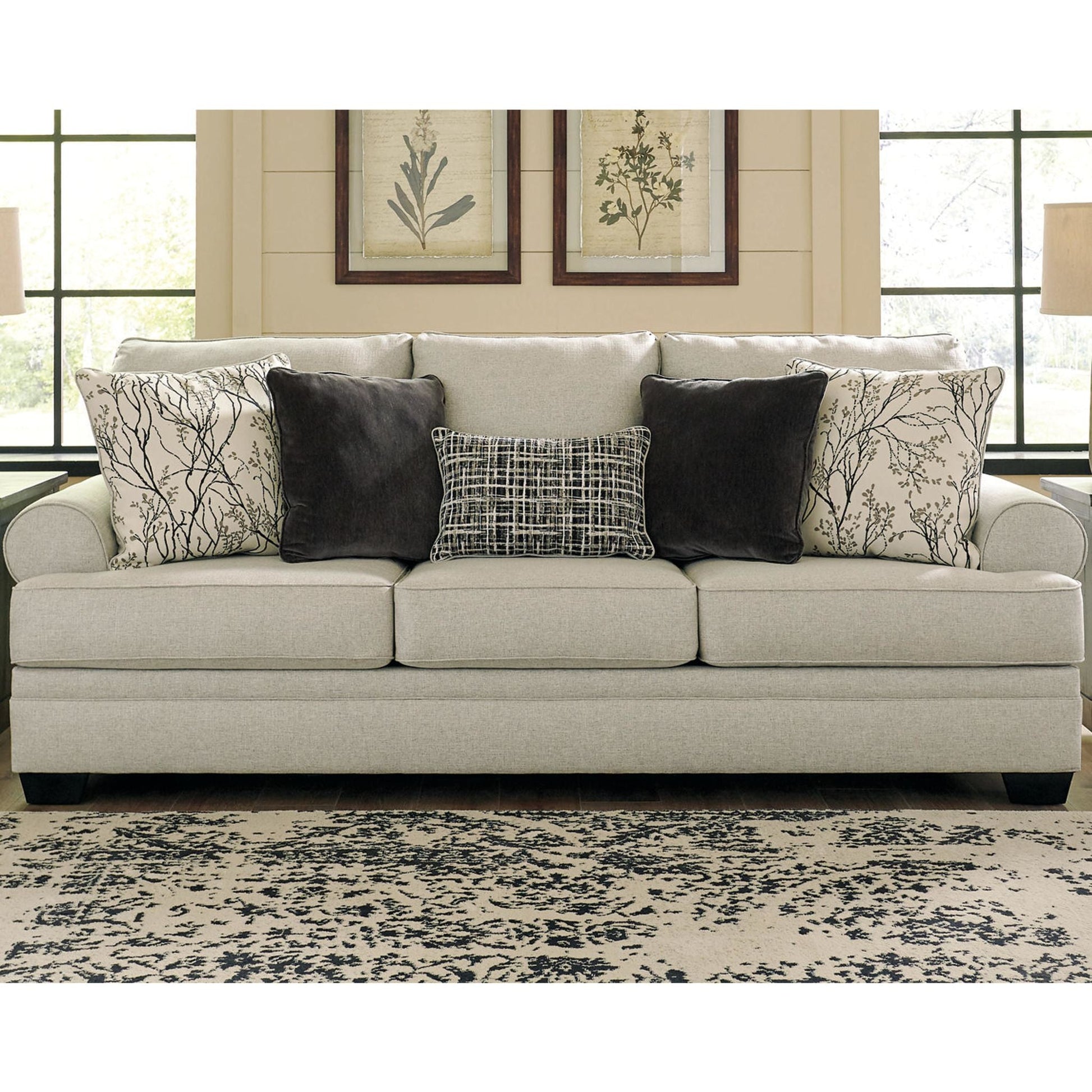 Nous avons hâte de voir votre visage s'illuminer de confort lorsque vous vous installerez sur le canapé Antonlini. Ses coussins moelleux sont recouverts de chenille tissée en lin pour une douceur incomparable. Les accoudoirs arrondis lui confèrent une allure décontractée et élégante. Les coussins à motif de vigne apportent une touche de nature apaisante et apaisante, tandis que le coussin lombaire à motif quadrillé insuffle une modernité tendance. Les coussins en velours gris anthracite uni ajoutent une touche de texture, parfaits pour se lover confortablement dans les assises profondes. Et grâce à sa teinte neutre, il s'intègre harmonieusement à votre intérieur.