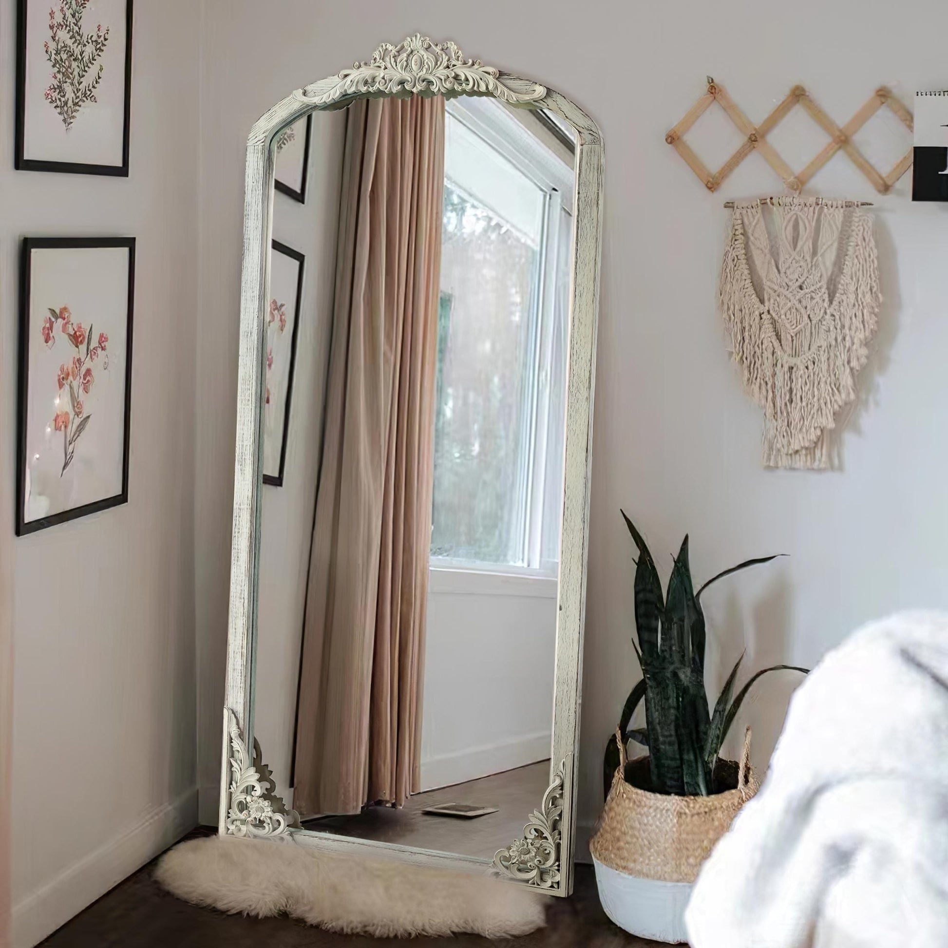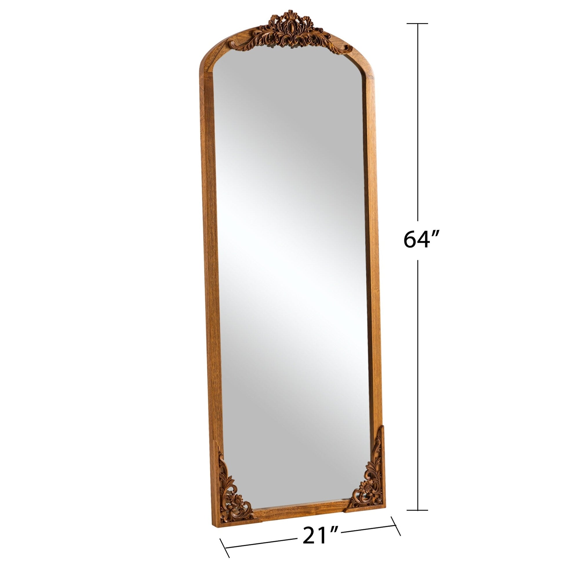Sublimez l'ambiance de votre pièce grâce à l'élégance intemporelle de ce miroir sur pied en bois massif. Sa silhouette arquée et son motif à carreaux finement travaillé créent une illusion d'optique d'inspiration vintage qui met en valeur votre espace et apporte une touche unique à tout décor.