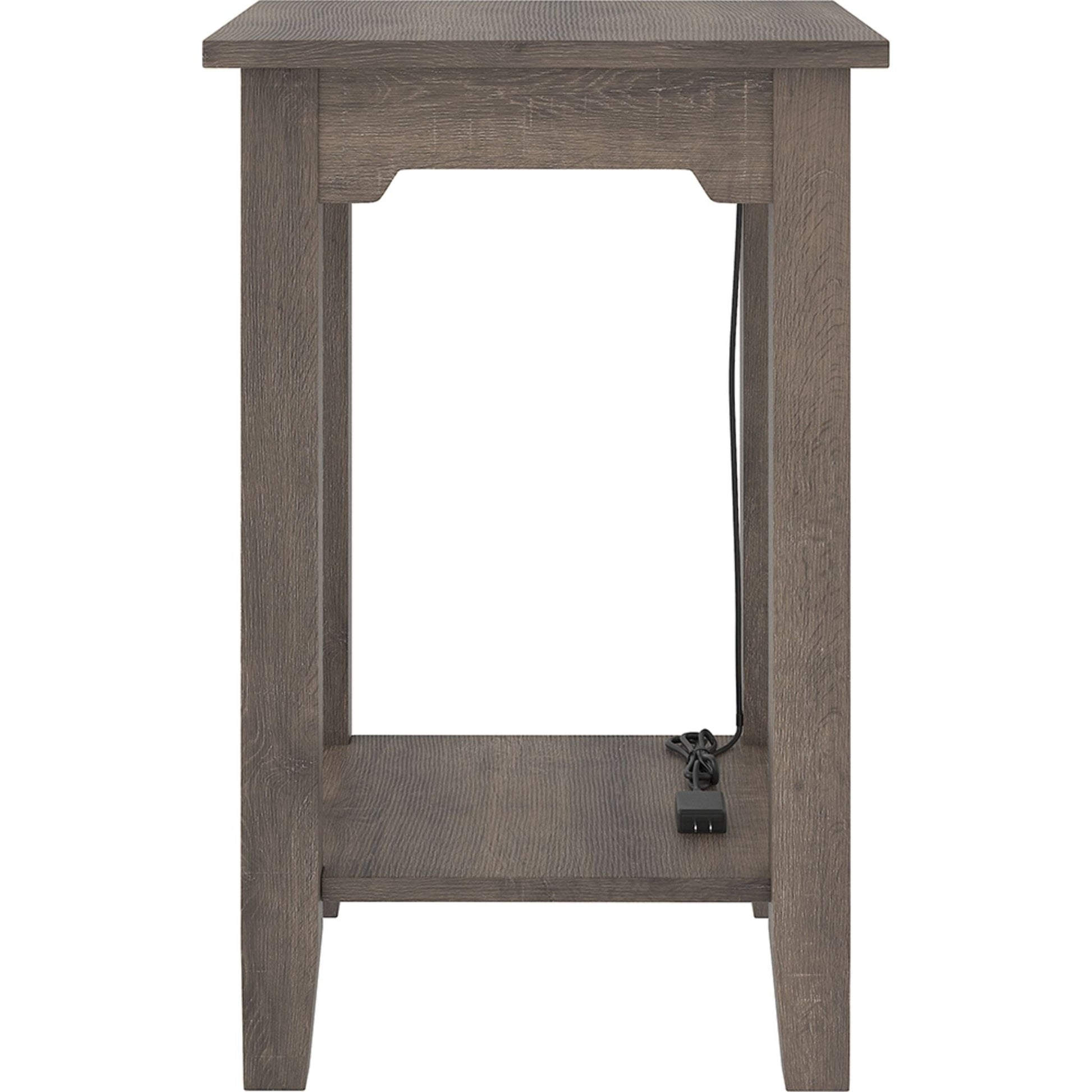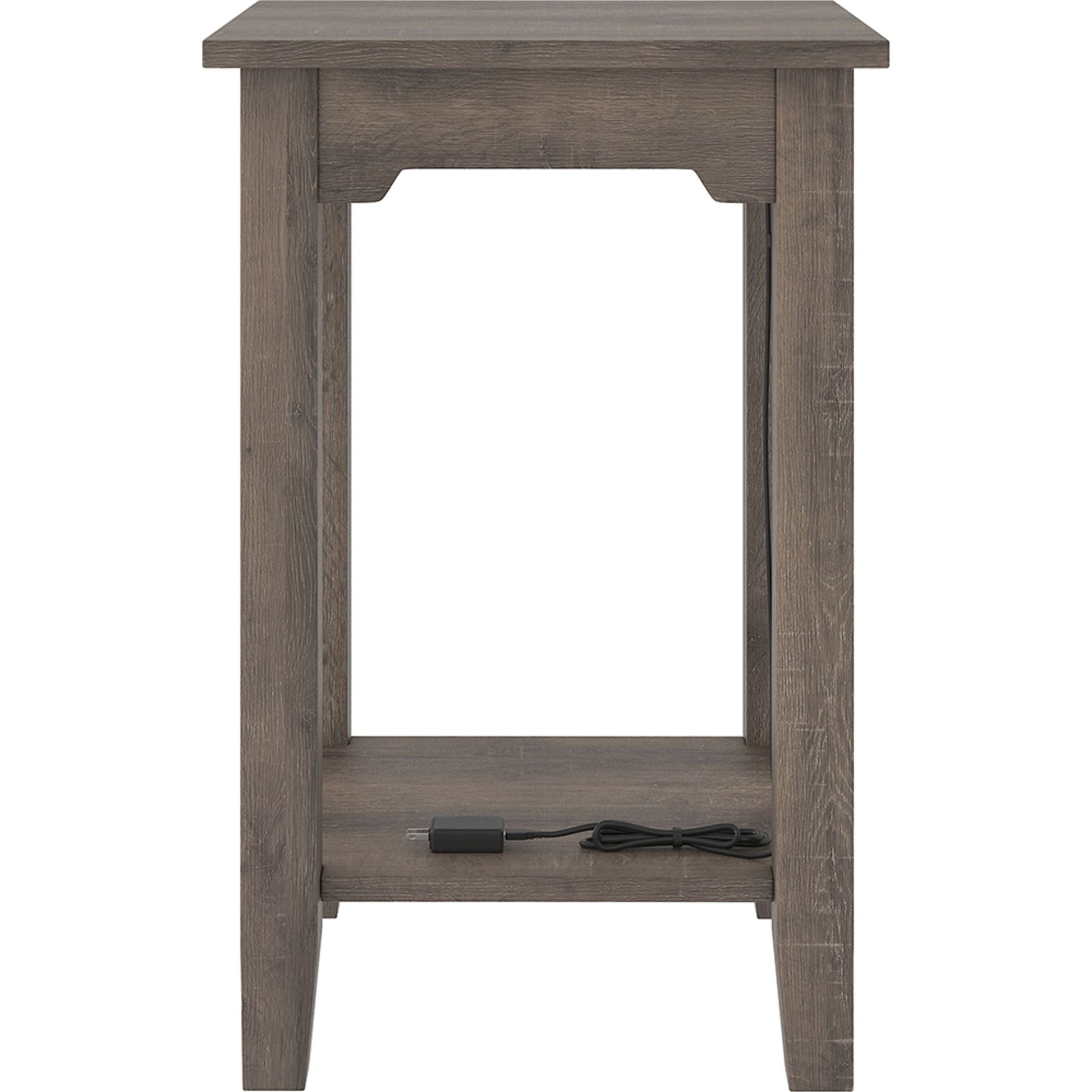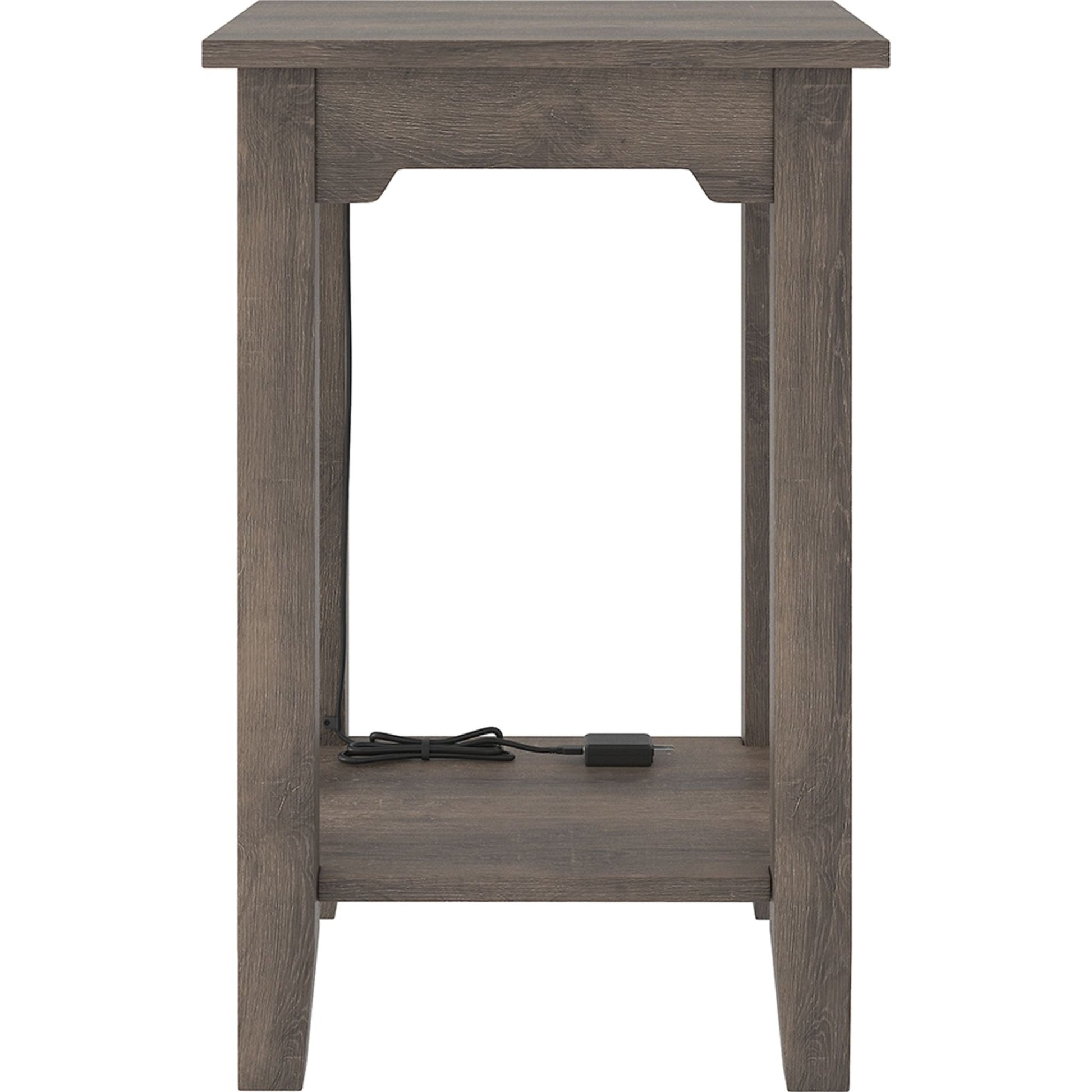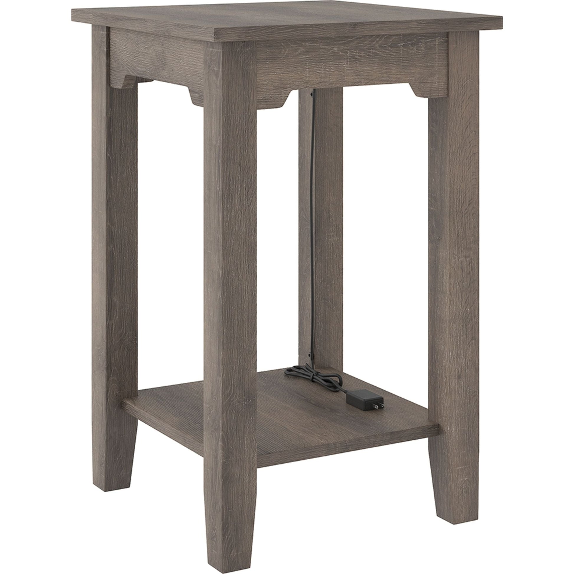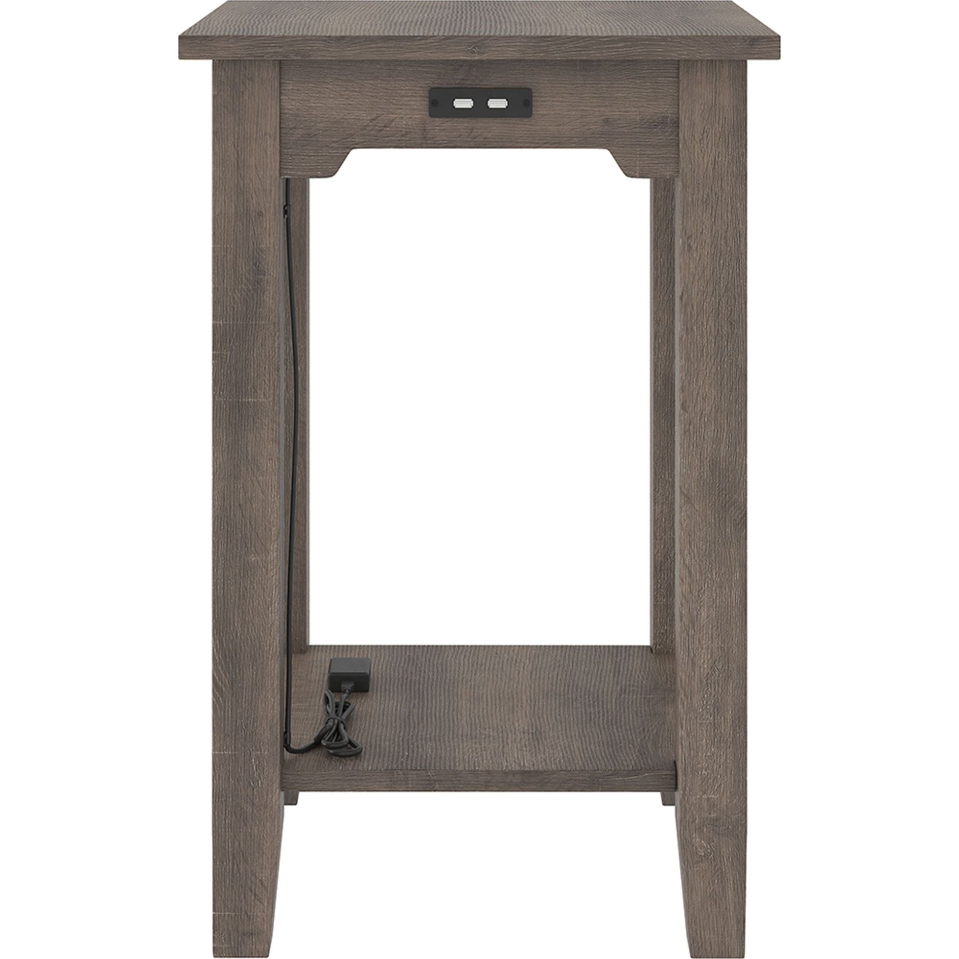 Rehaussez le style ferme moderne avec la table d'appoint Arlenbry. Arborant un élégant effet chêne vieilli, ce meuble est doté de deux ports USB pour alimenter vos appareils tout au long de la soirée. Apportez une touche de design fonctionnel et raffiné à votre salon.