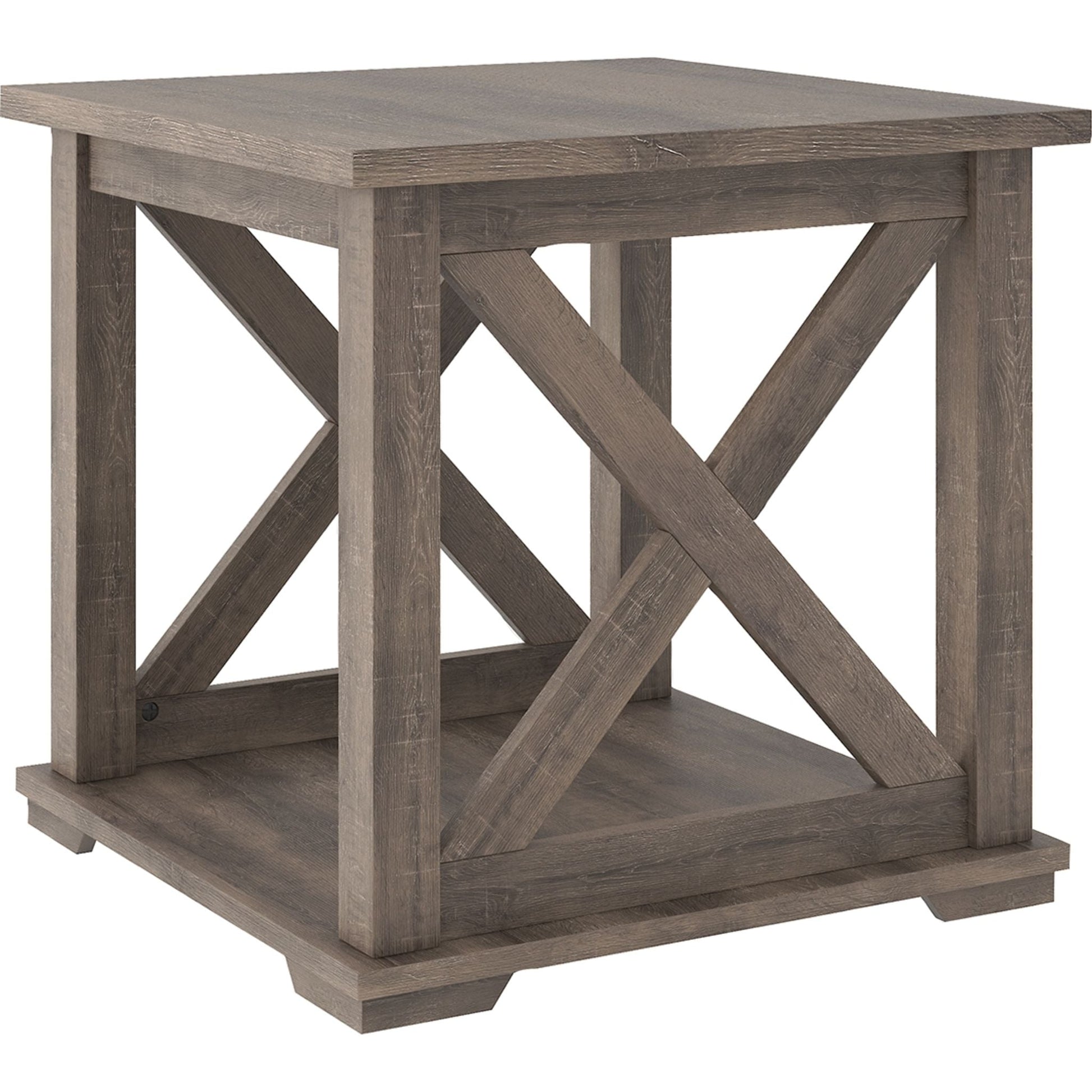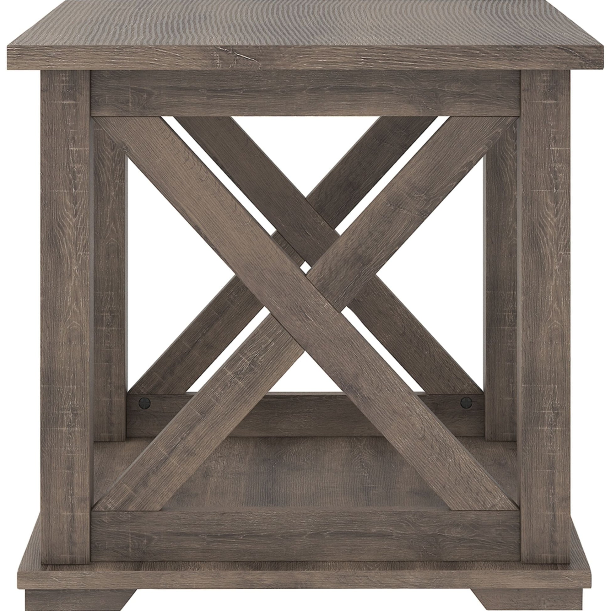Rehaussez le style ferme moderne avec la table d'appoint Arlenbry. Son élégant effet chêne vieilli et son design en croisillons lui confèrent une allure remarquable, quel que soit l'endroit où elle trouve sa place. Grâce à ses étagères spacieuses, ce meuble indispensable offre une multitude de possibilités.