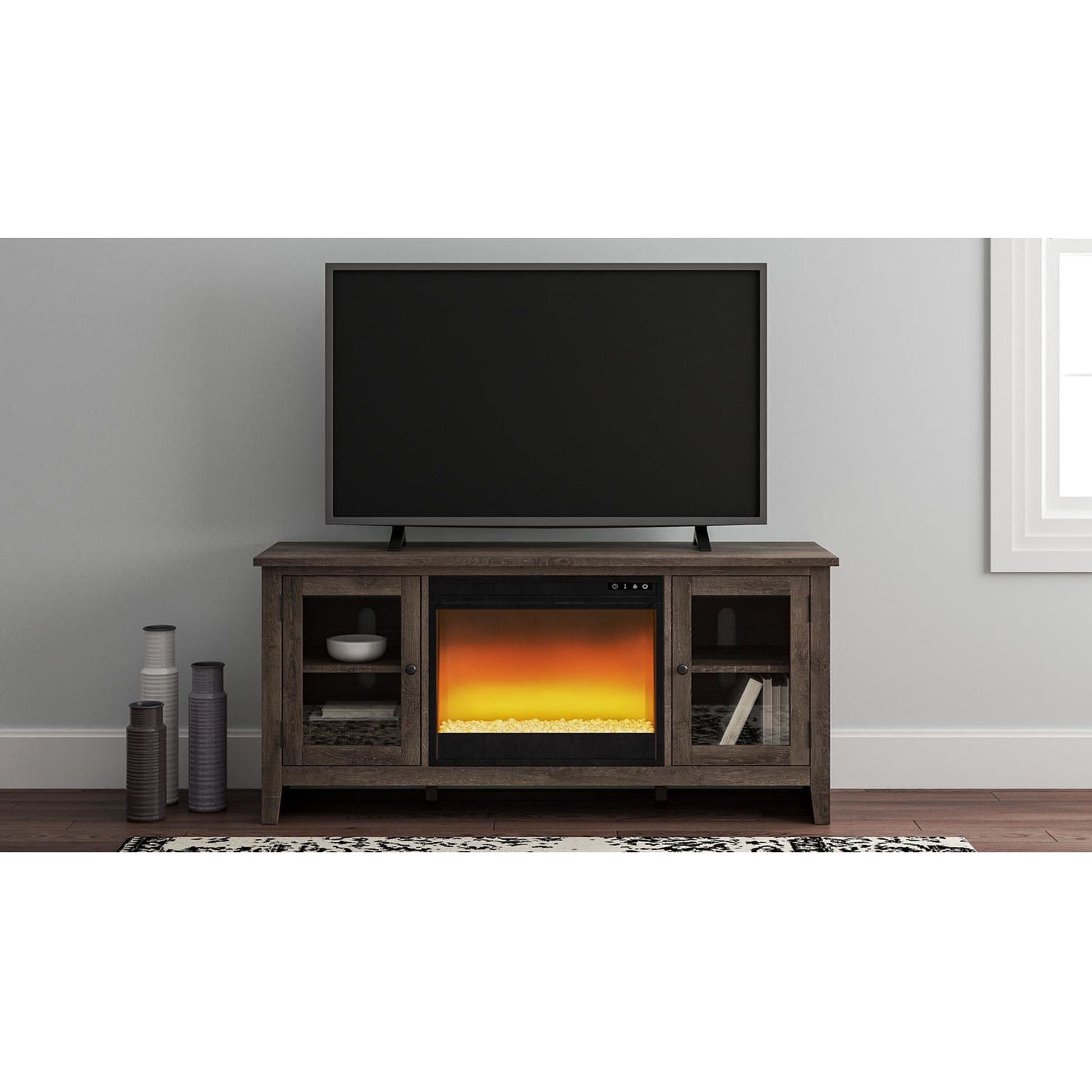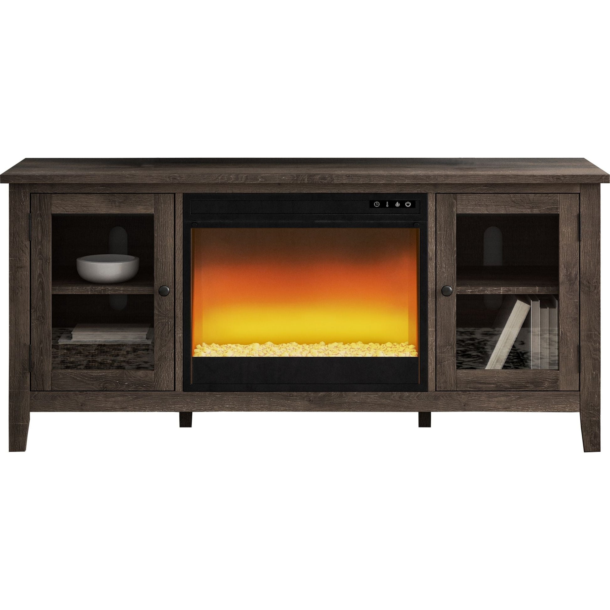 Avec sa finition chêne vieilli et son charme minimaliste, le meuble TV Arlenbry avec insert de cheminée LED s'accorde parfaitement à votre style décontracté et raffiné. Conçu pour accueillir vos appareils multimédias, il est doté d'étagères réglables, de passe-câbles et de deux portes vitrées qui soulignent ses lignes épurées. Son style s'intègre idéalement dans un intérieur de style ferme moderne ou contemporain. Pour une touche d'élégance supplémentaire : un insert de cheminée LED fonctionnant avec ou sans chauffage, avec six niveaux de température, une télécommande et une protection contre la surchauffe pour plus de sécurité. L'insert est fourni avec des cristaux de verre et des pierres naturelles (en option) pour personnaliser l'aspect du foyer.