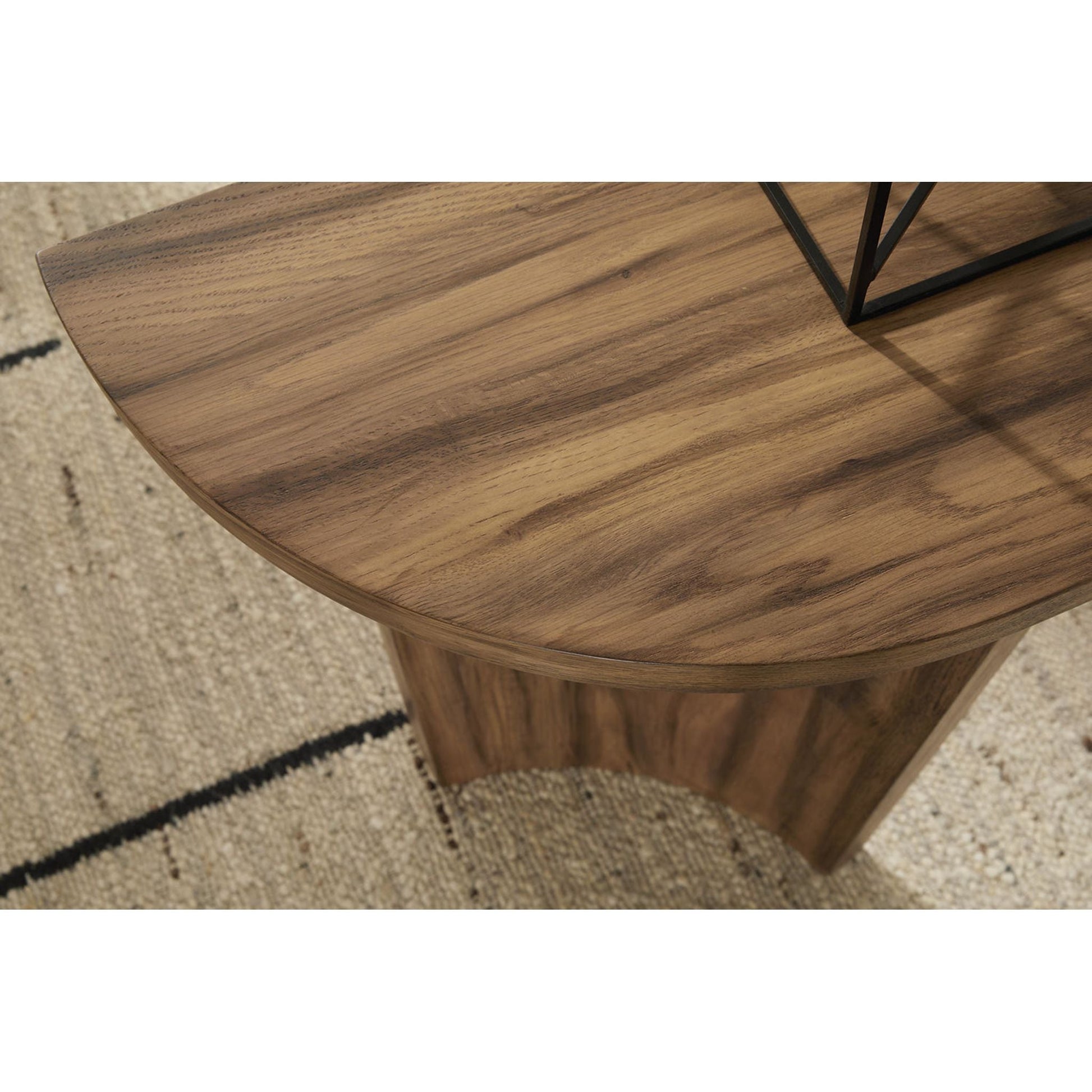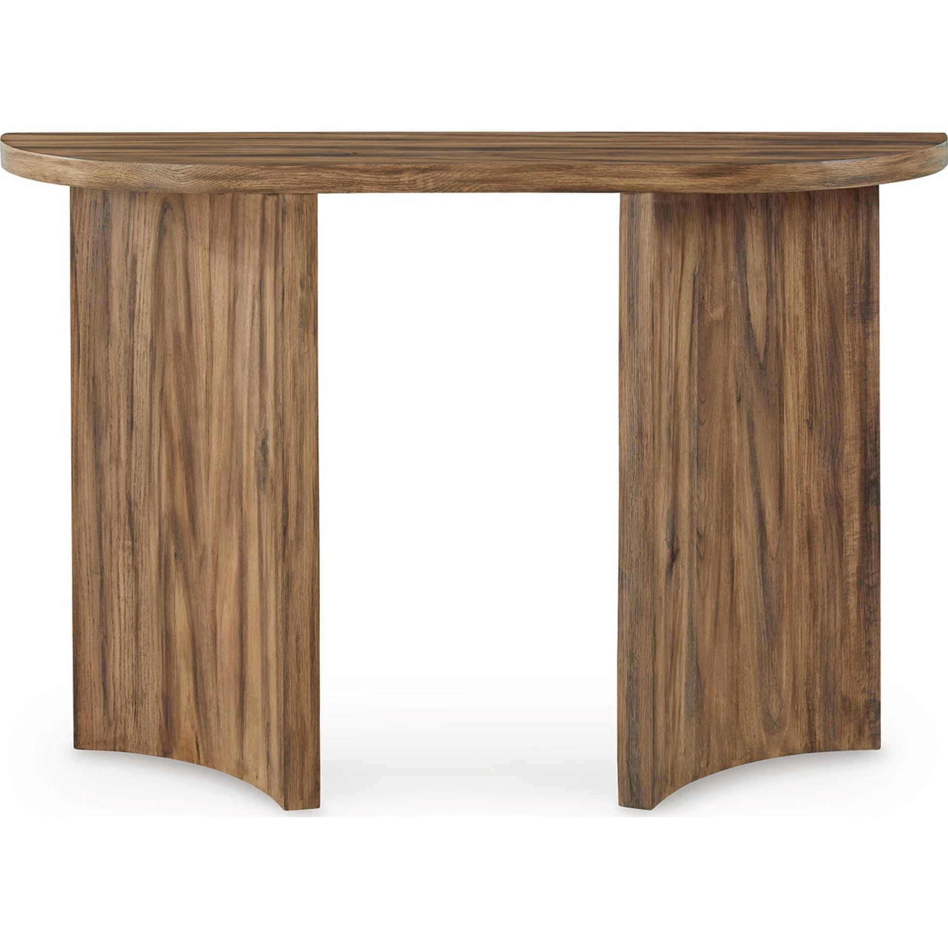 Avec sa silhouette élégante et artistique, cette console allie avec brio modernité et fonctionnalité. Sa finition brun chaud met en valeur le magnifique grain du bois, apportant une touche naturelle à votre décoration ou à une lampe d'appoint. Dotée d'un plateau épais et robuste, elle deviendra sans aucun doute un élément incontournable de votre salon.
