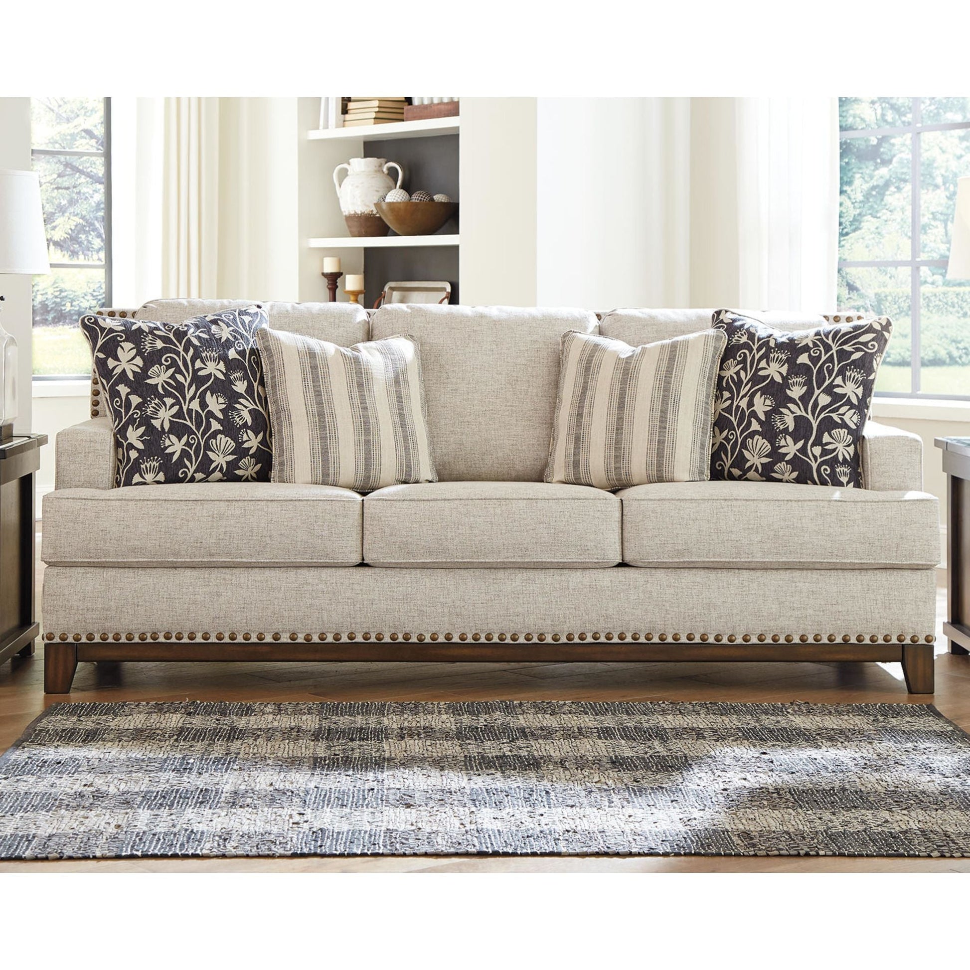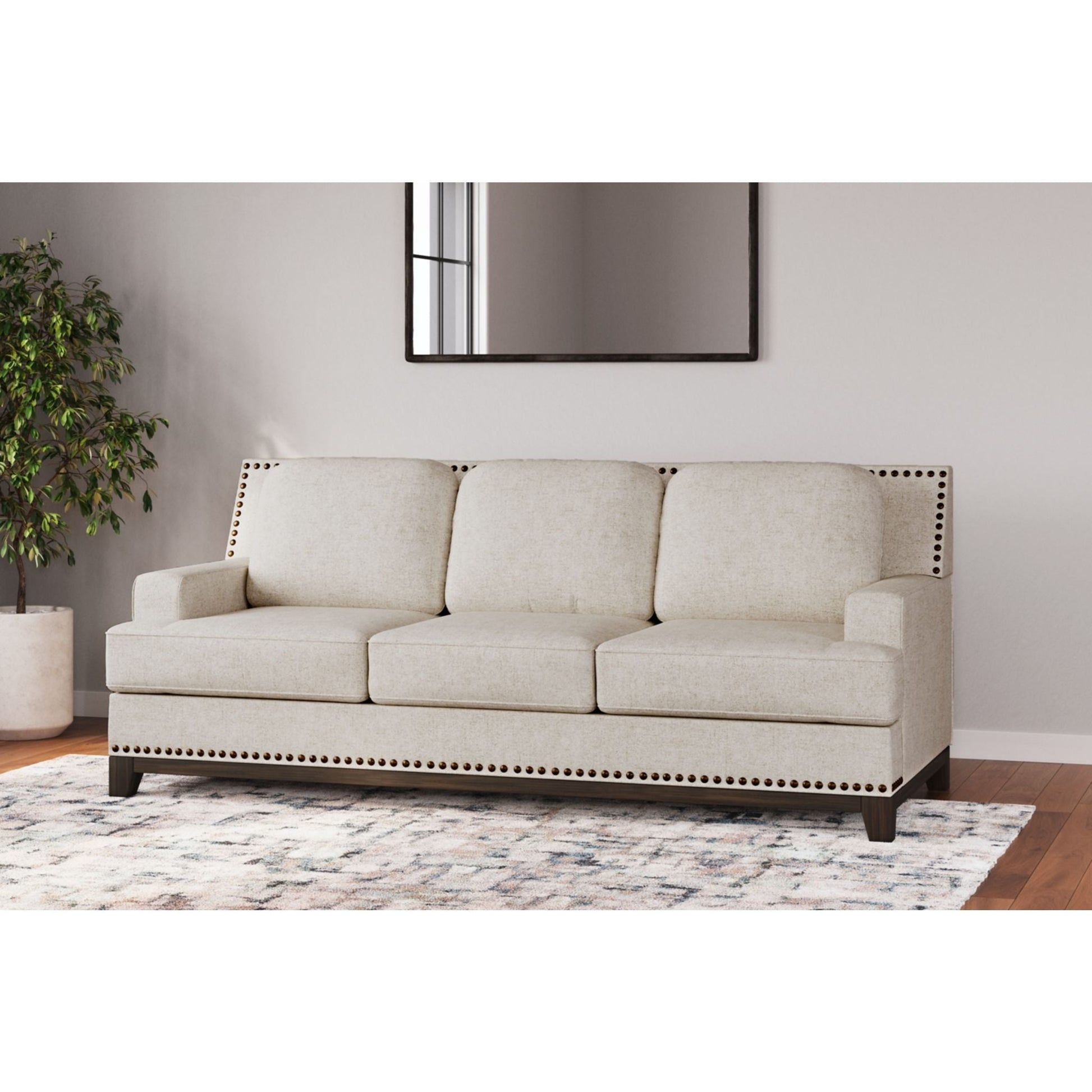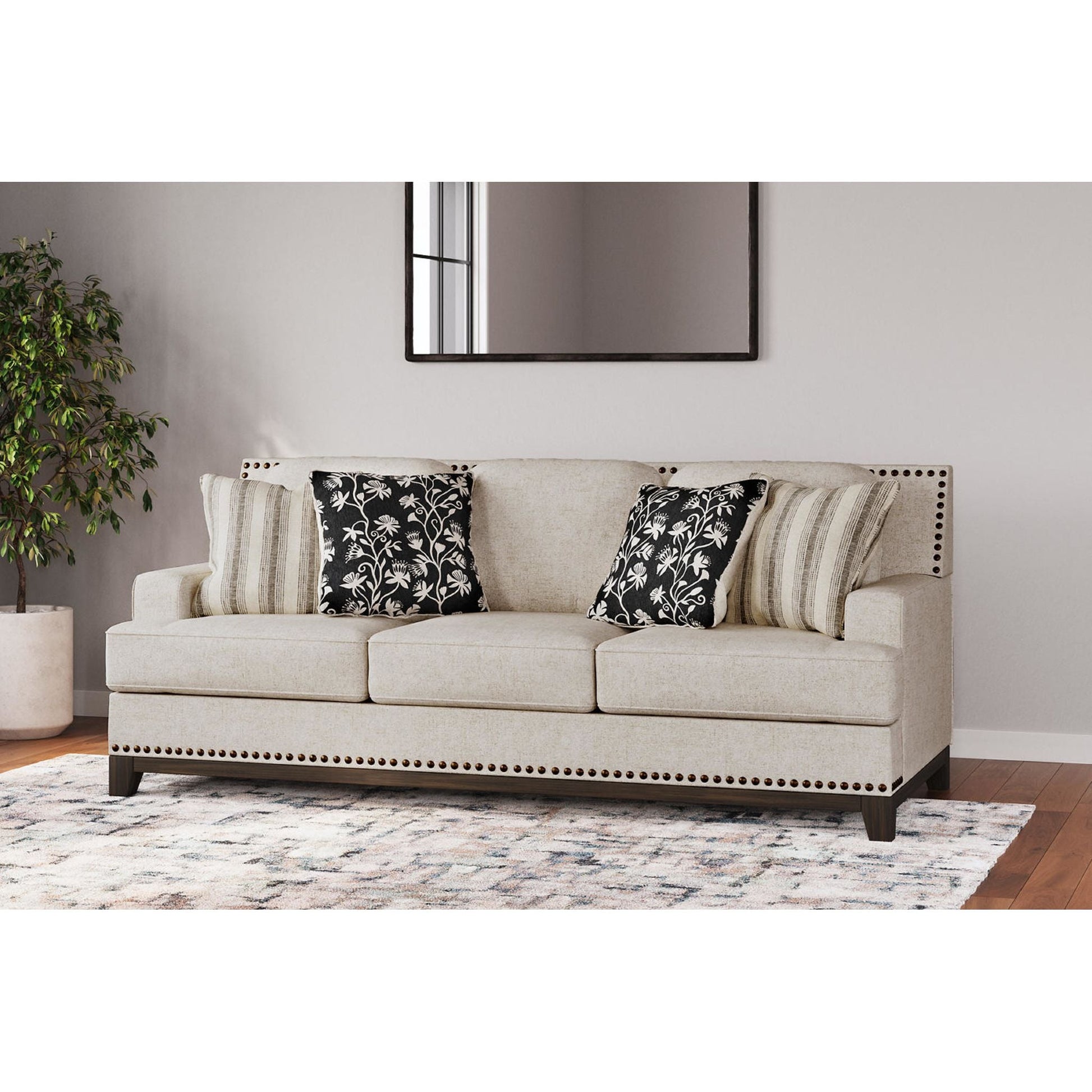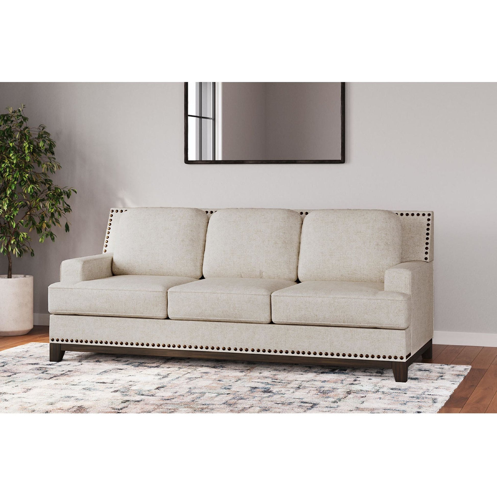 Avec son mélange unique et chic d'éléments, le canapé Ballina bouscule les codes avec élégance. Épuré et raffiné, avec une subtile touche classique, ce canapé design se distingue par ses accoudoirs droits et ses clous décoratifs qui soulignent sa silhouette linéaire. Un détail qui le rend véritablement unique : une traverse apparente couleur noyer pour une esthétique haut de gamme digne d'une galerie d'art. Ses coussins réversibles et ses oreillers décoratifs aux teintes douces et apaisantes permettent à ce canapé de s'intégrer à tous les styles, du style maison de campagne moderne aux intérieurs urbains chics.