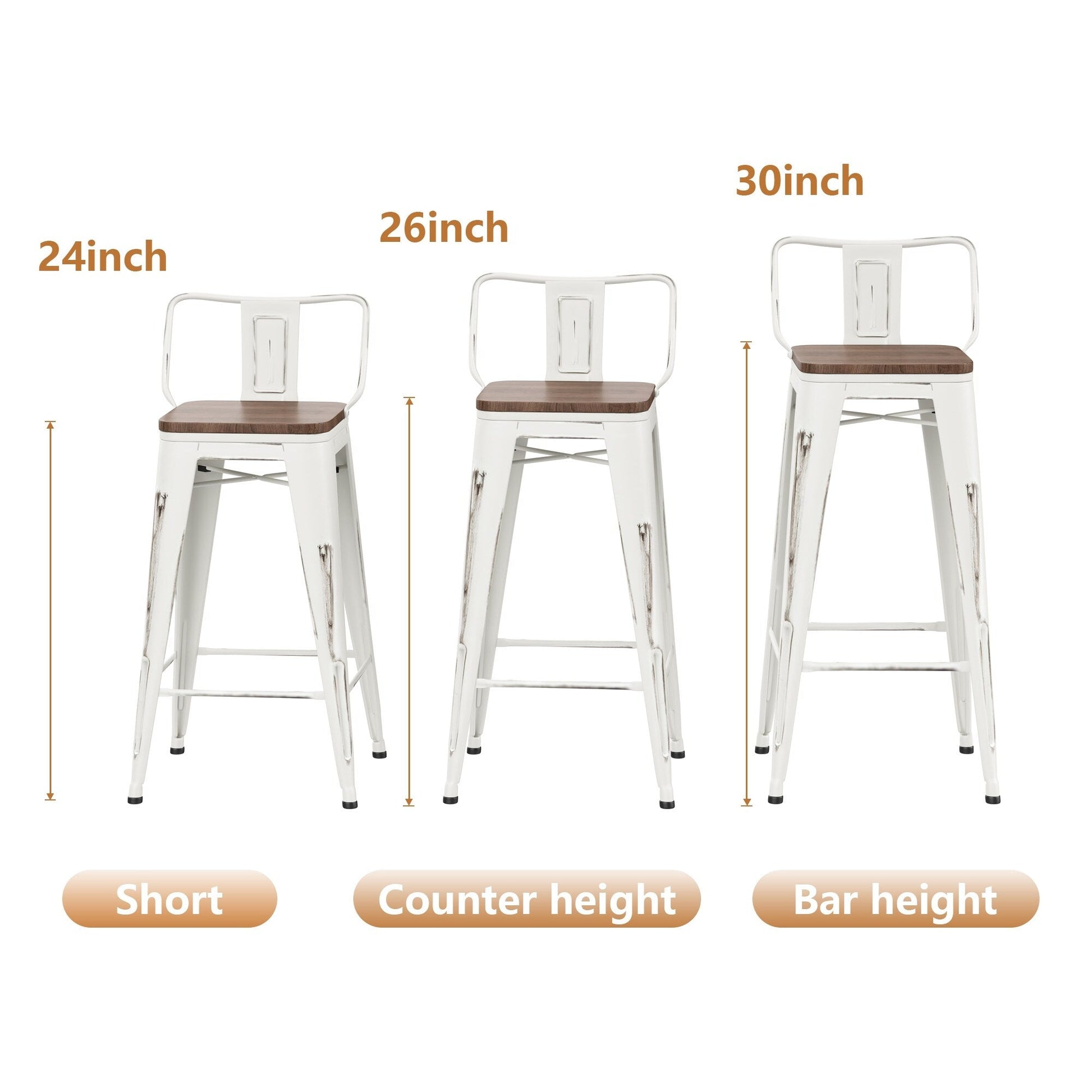 Ensemble de 4 tabourets de bar industriels en métal avec dossier et assise en bois