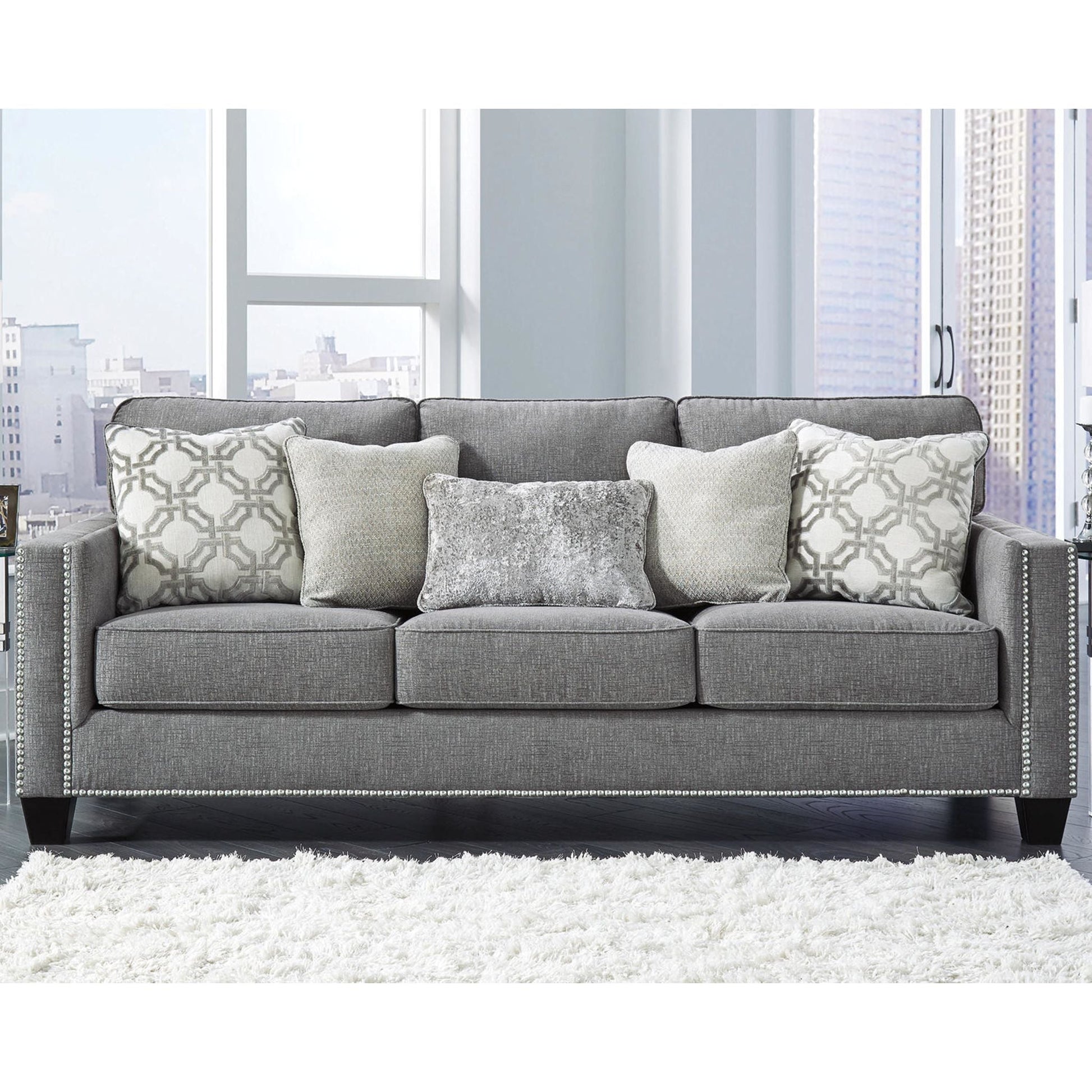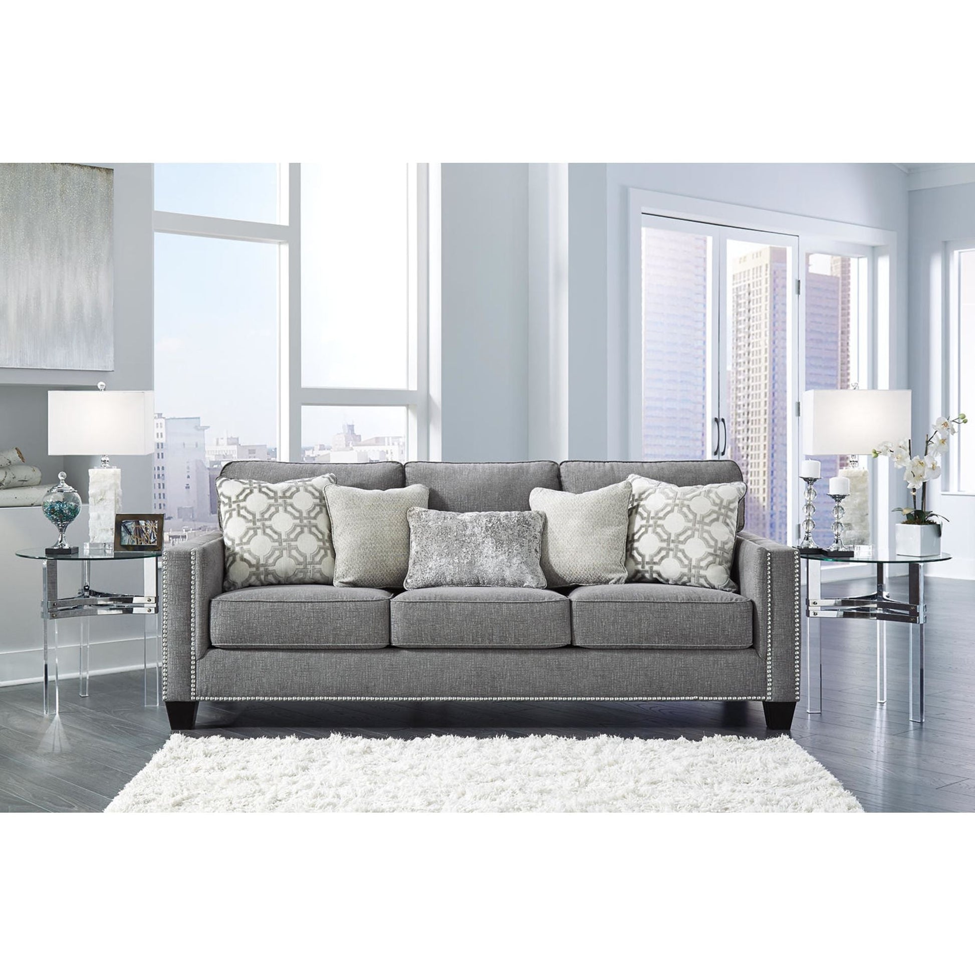 La première impression est primordiale, et ce canapé la met en valeur. Son tissu chenille gris, d'une douceur incomparable, attire tous les regards : un véritable coup de cœur. Ses lignes épurées affirment une esthétique moderne, rehaussée par une garniture cloutée couleur nickel pour un effet spectaculaire. Des coussins décoratifs aux motifs abstraits contemporains et un coussin lombaire en velours froissé apportent une touche de textures raffinées. Ce canapé est un hommage vibrant à la mode.