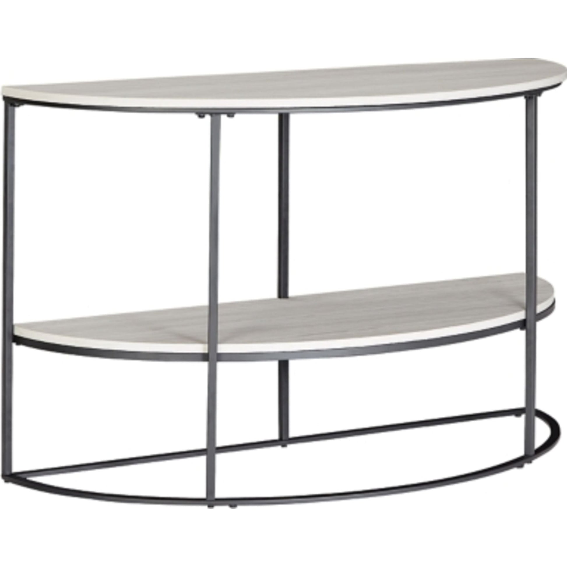Recevez vos invités en toute simplicité grâce à la console Bayflynn, au style contemporain et décontracté. Conçue pour les personnes modernes et exigeantes, son design minimaliste séduit par ses pieds en métal et son plateau stratifié à l'effet blanchi. Une étagère inférieure offre un espace généreux pour vos livres, paniers ou objets de décoration préférés.