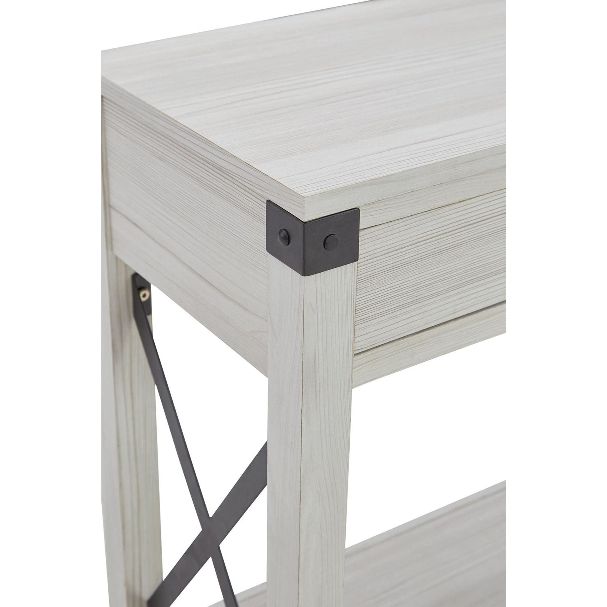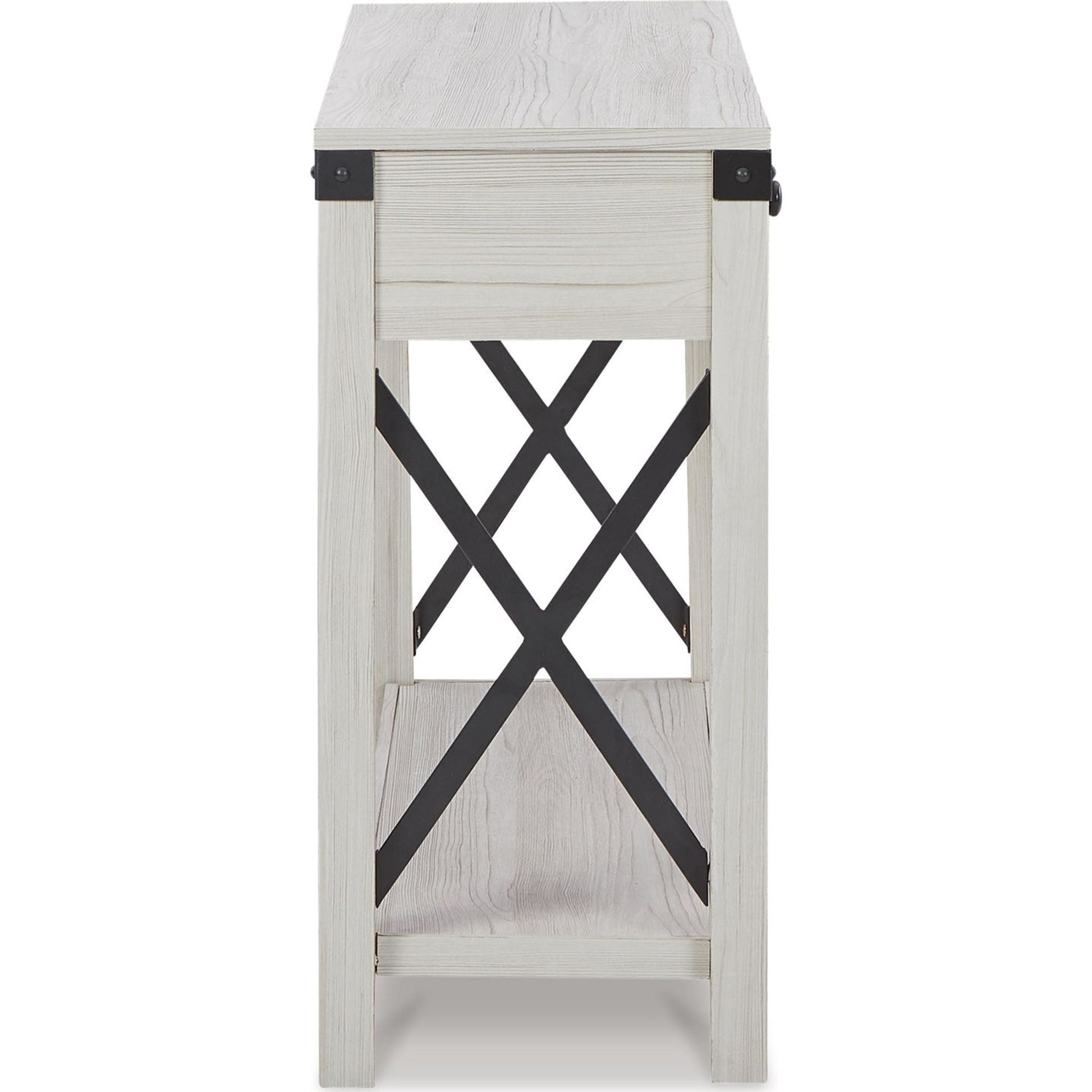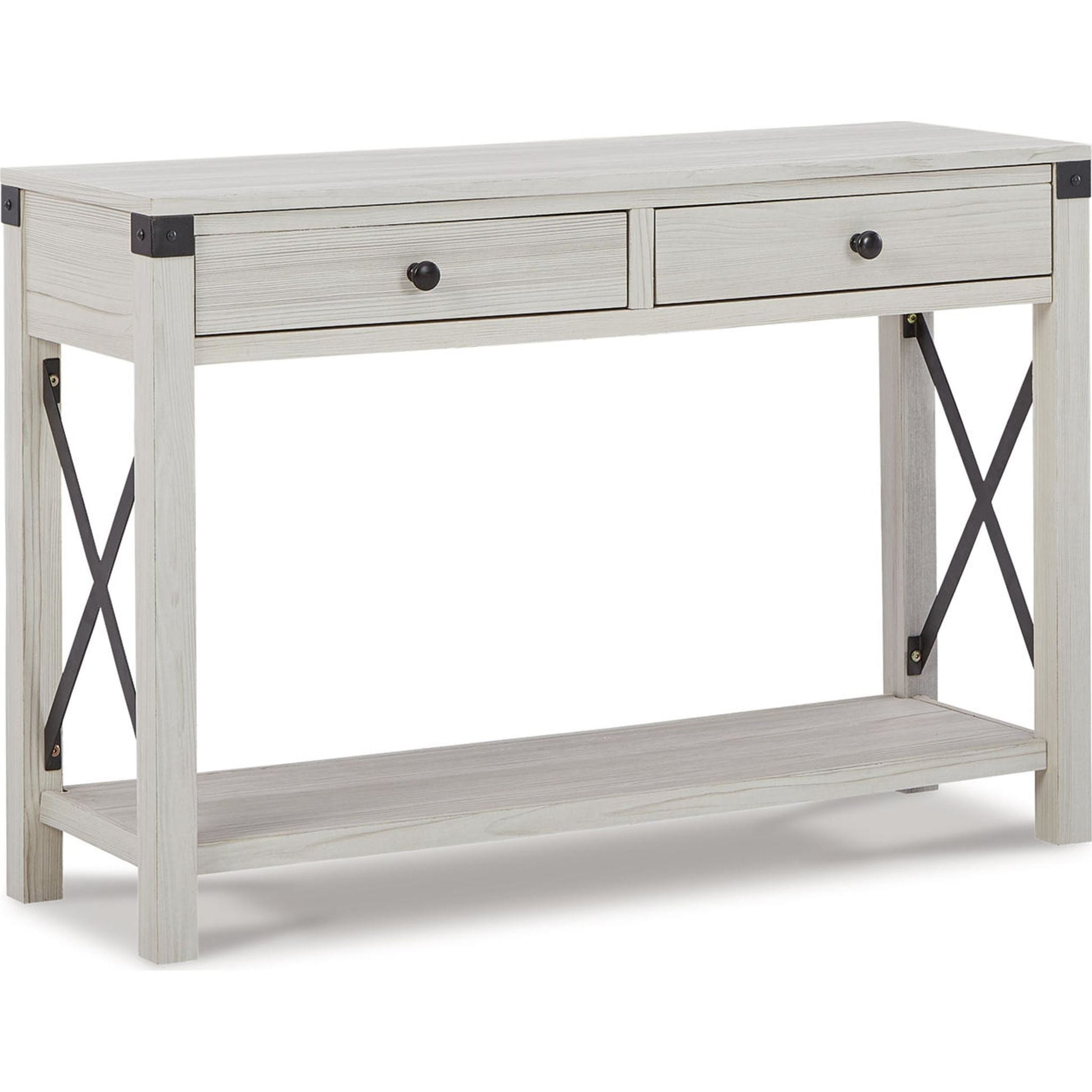 Si vous recherchez une pièce maîtresse qui sublimera votre intérieur, la console Bayflynn affirme votre style avec élégance. Son effet bois de grange vieilli, subtilement blanchi, lui confère une allure à la fois sobre et pleine de caractère. Des accents métalliques en forme de croix lui apportent une touche d'originalité.