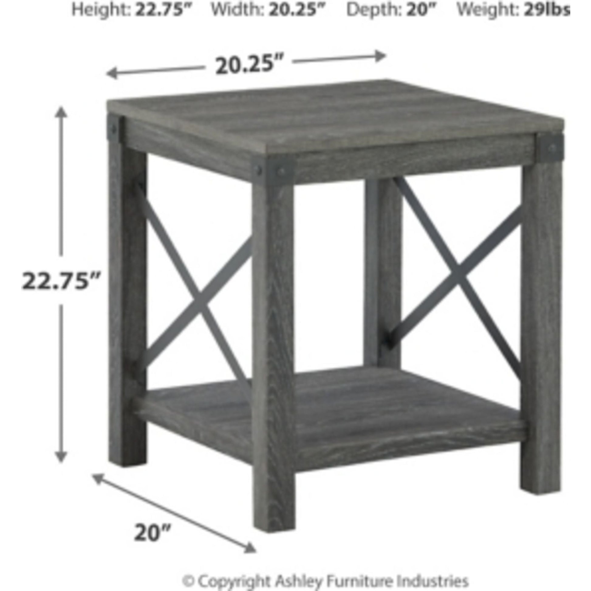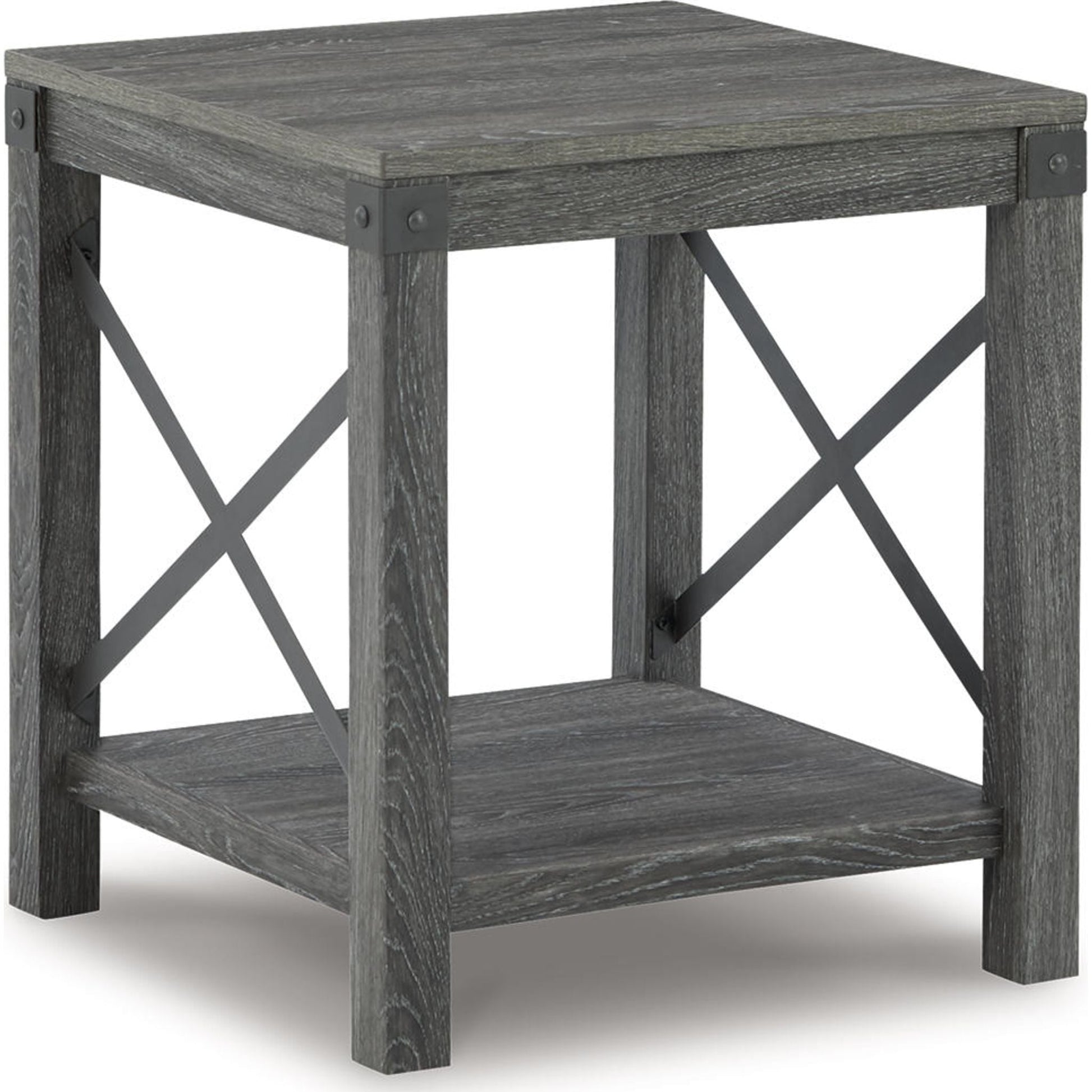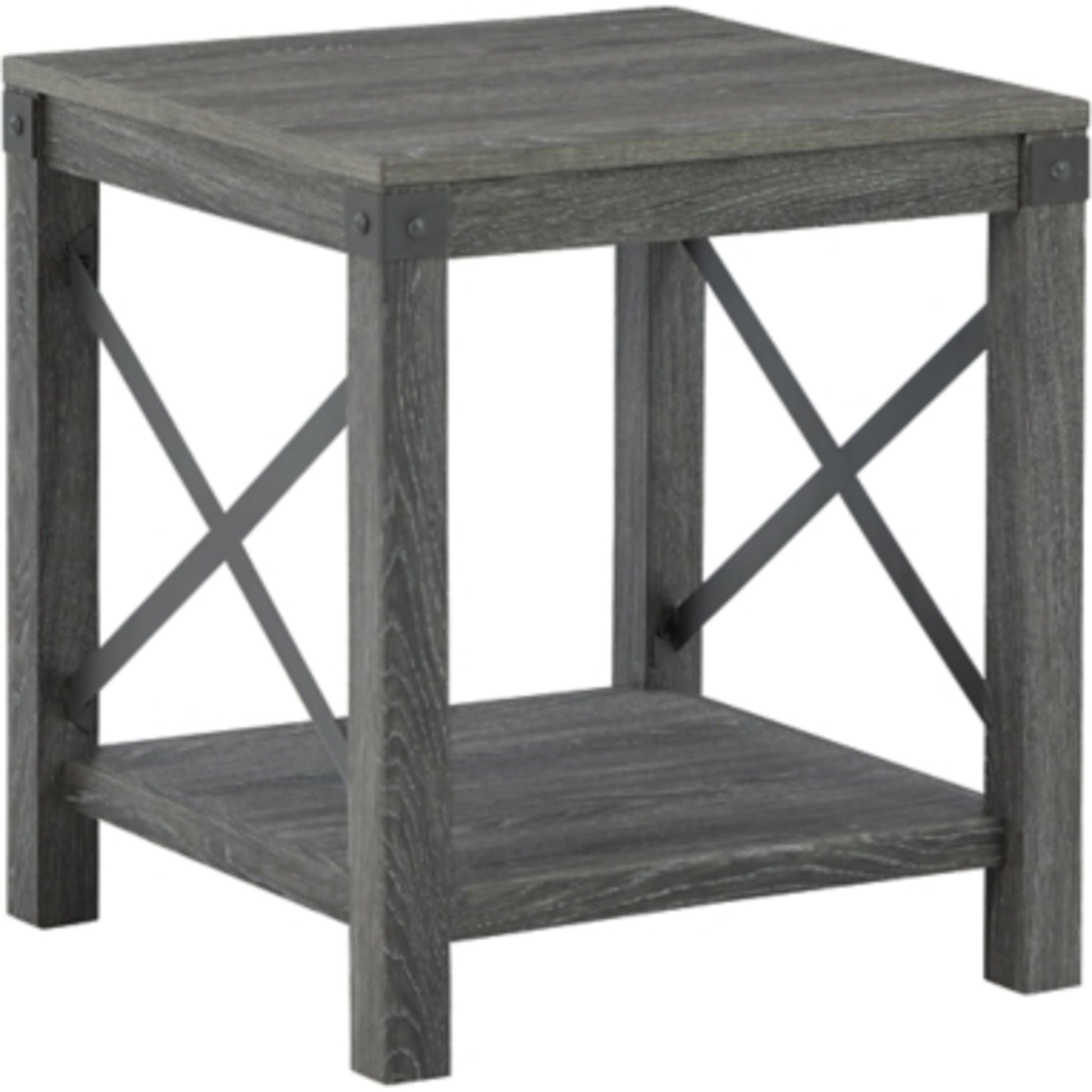 Apportez une touche de modernité et de charme rustique à votre intérieur avec la table d'appoint carrée Freedan. Son élégant veinage de bois et ses accents métalliques classiques en forme de croix lui confèrent une allure raffinée, tandis que son étagère inférieure offre un espace pratique pour vos accessoires de décoration.