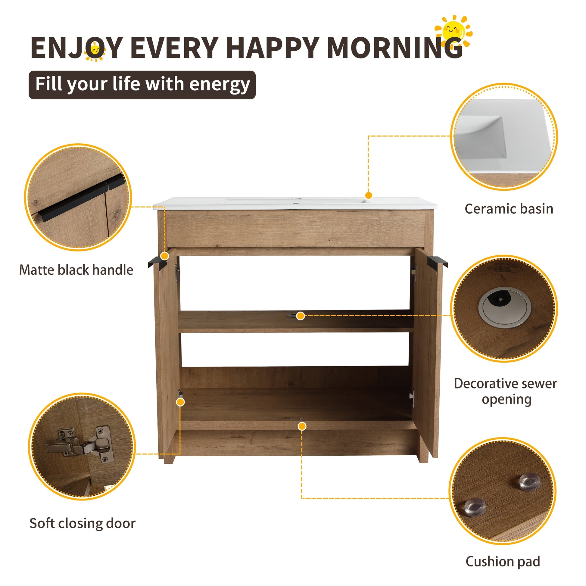 Apportez style et rangement à votre salle de bain avec le meuble-lavabo sur pied Beingnext. Fabriqué en bois de haute qualité et résistant, ce meuble-lavabo supporte l'humidité et les variations de température. Son lavabo en vitrocéramique lisse et étanche facilite le nettoyage. Doté d'une étagère réglable et de charnières à fermeture douce, ce meuble-lavabo offre un espace de rangement modulable et un fonctionnement silencieux.
