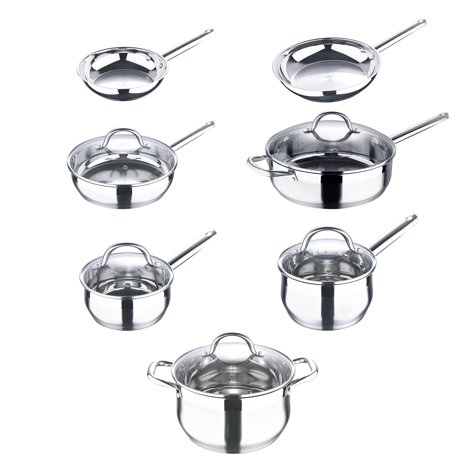 Améliorez votre batterie de cuisine avec l'ensemble Gourmet 12 pièces en acier inoxydable. Cet ensemble comprend tous les ustensiles essentiels pour satisfaire les passionnés de cuisine. Grâce à leur forme bombée, la chaleur et l'humidité circulent parfaitement, garantissant des résultats de cuisson optimaux pour toutes vos recettes. L'ensemble Gourmet 12 pièces inclut une poêle de 20 cm, une poêle de 25 cm, une poêle de 30 cm avec couvercle, une sauteuse de 2,5 litres avec couvercle, une casserole de 1,3 litre avec couvercle, une casserole de 2 litres avec couvercle et une cocotte de 5 litres avec couvercle.