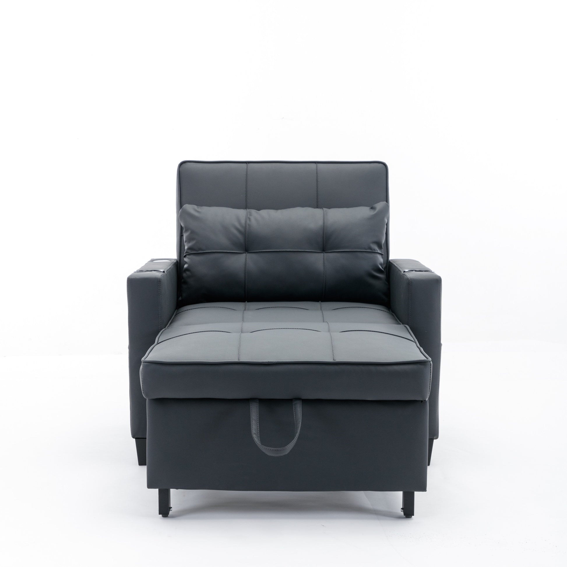 Canapé-lit convertible en similicuir noir avec ports USB