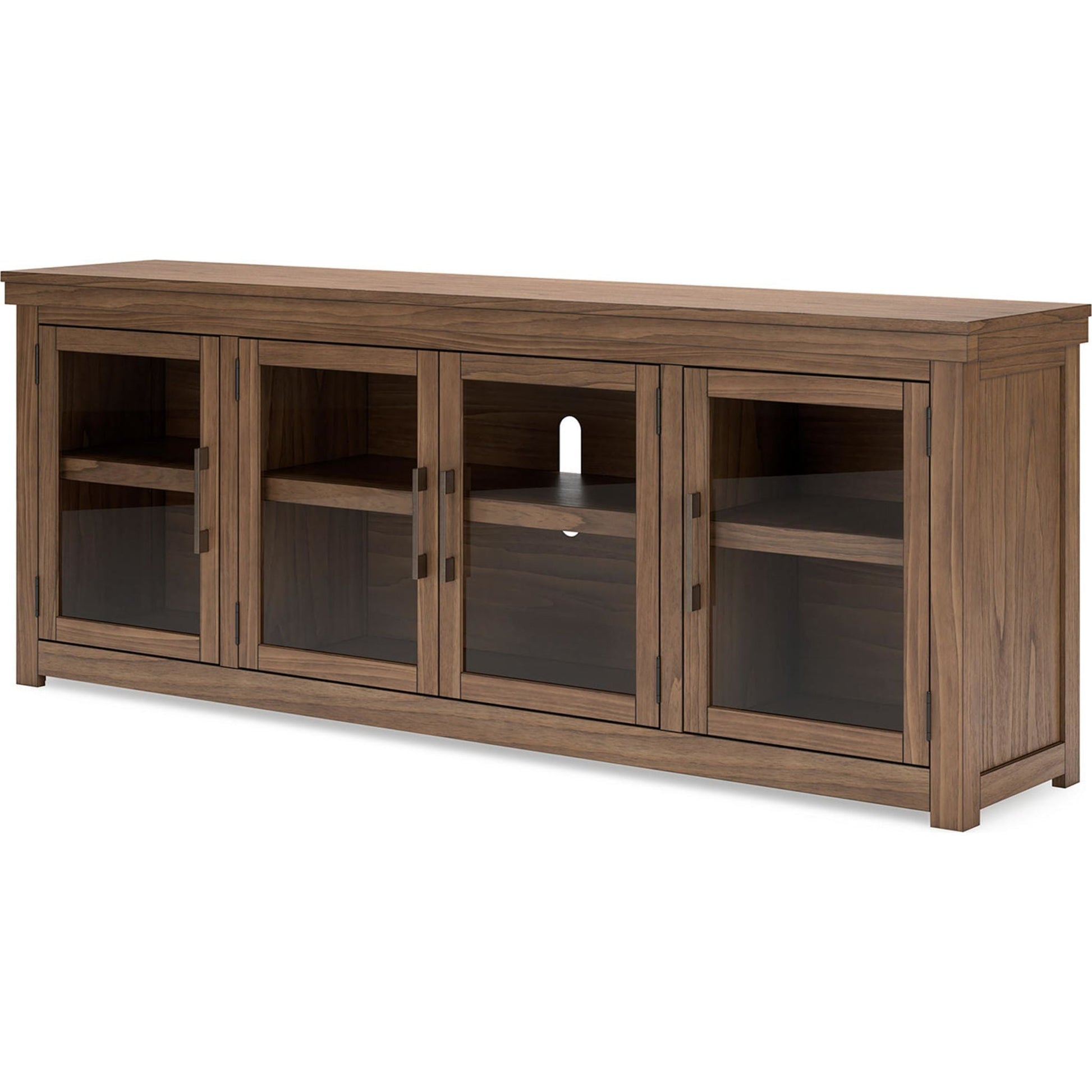 Sublimez votre expérience de divertissement avec le meuble TV Boardernest. Véritable pièce maîtresse fonctionnelle de votre salon, il se distingue par une finition riche et polyvalente. Rehaussez instantanément vos soirées jeux et films : sa silhouette imposante accueille facilement les écrans plats. Et grâce à ses superbes portes vitrées qui dévoilent un vaste espace de rangement, vous pouvez mettre en valeur avec élégance vos objets décoratifs, DVD ou vinyles.