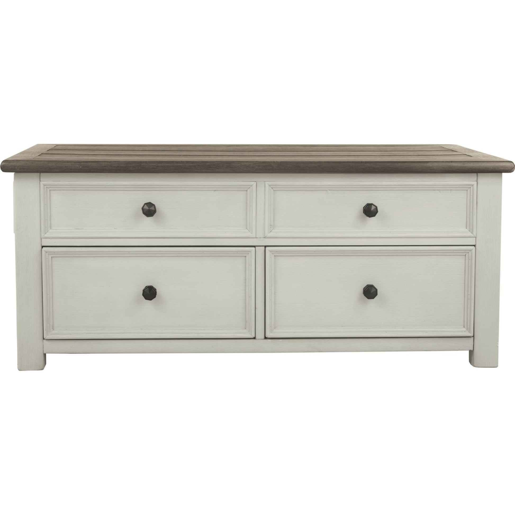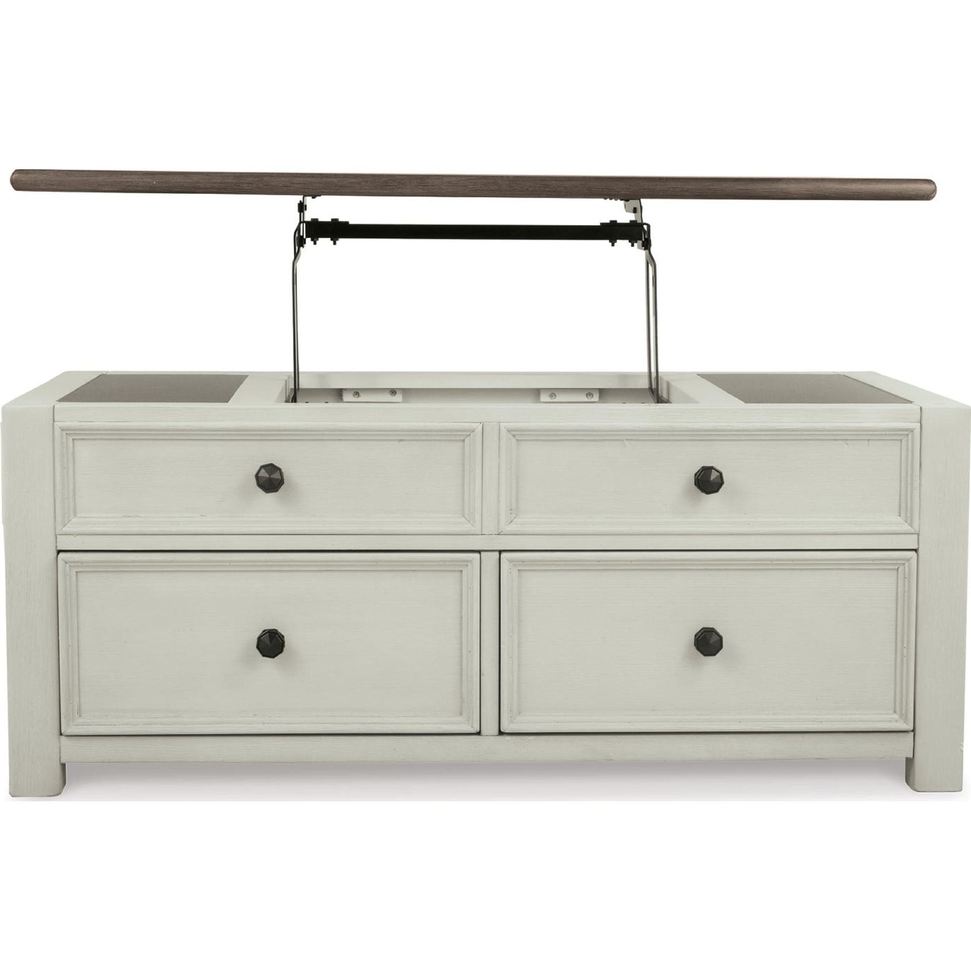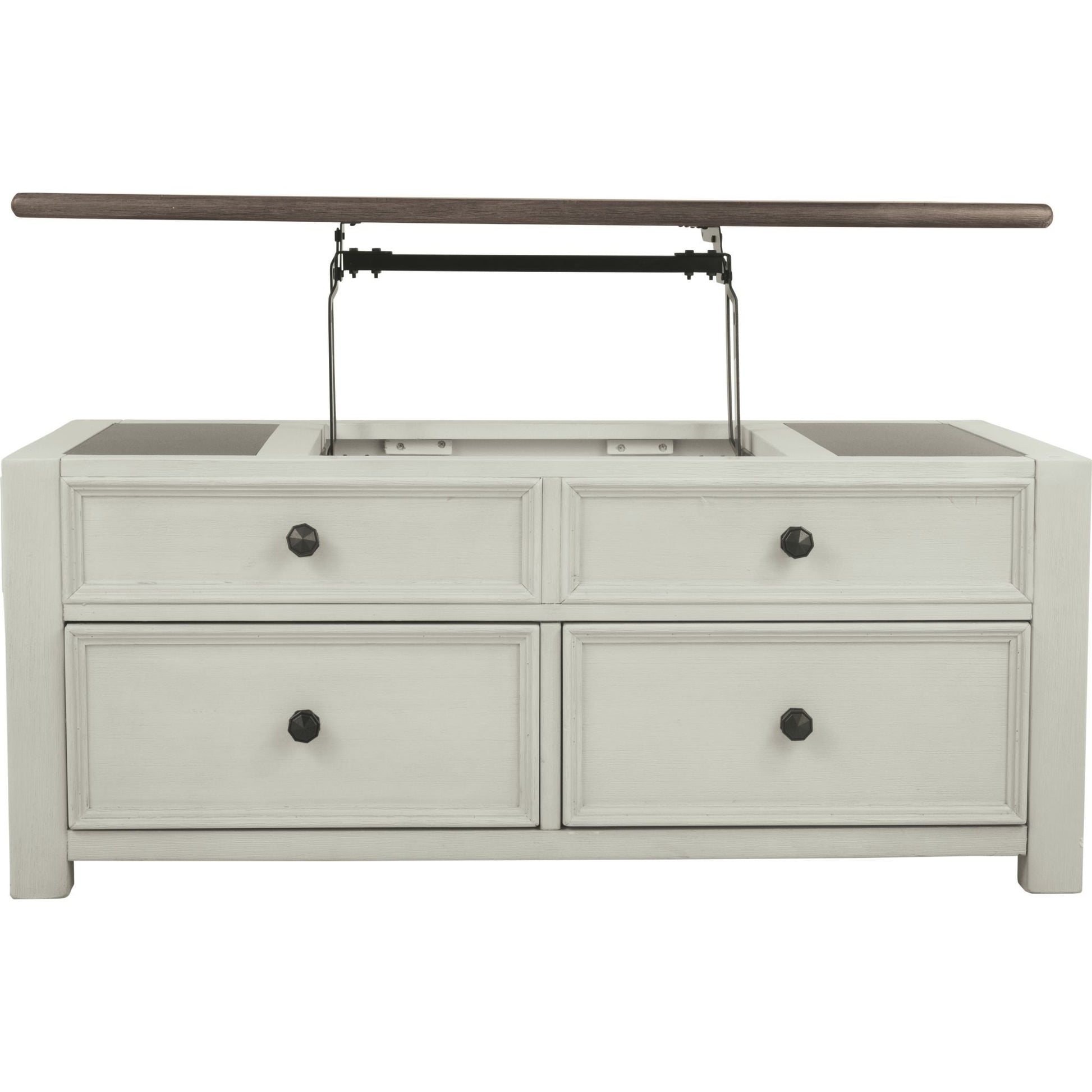 Rangez, servez et mettez en valeur vos objets préférés avec la table basse relevable Bolanburg. Sa finition texturée blanc antique crée un style bicolore vintage qui traversera les années.