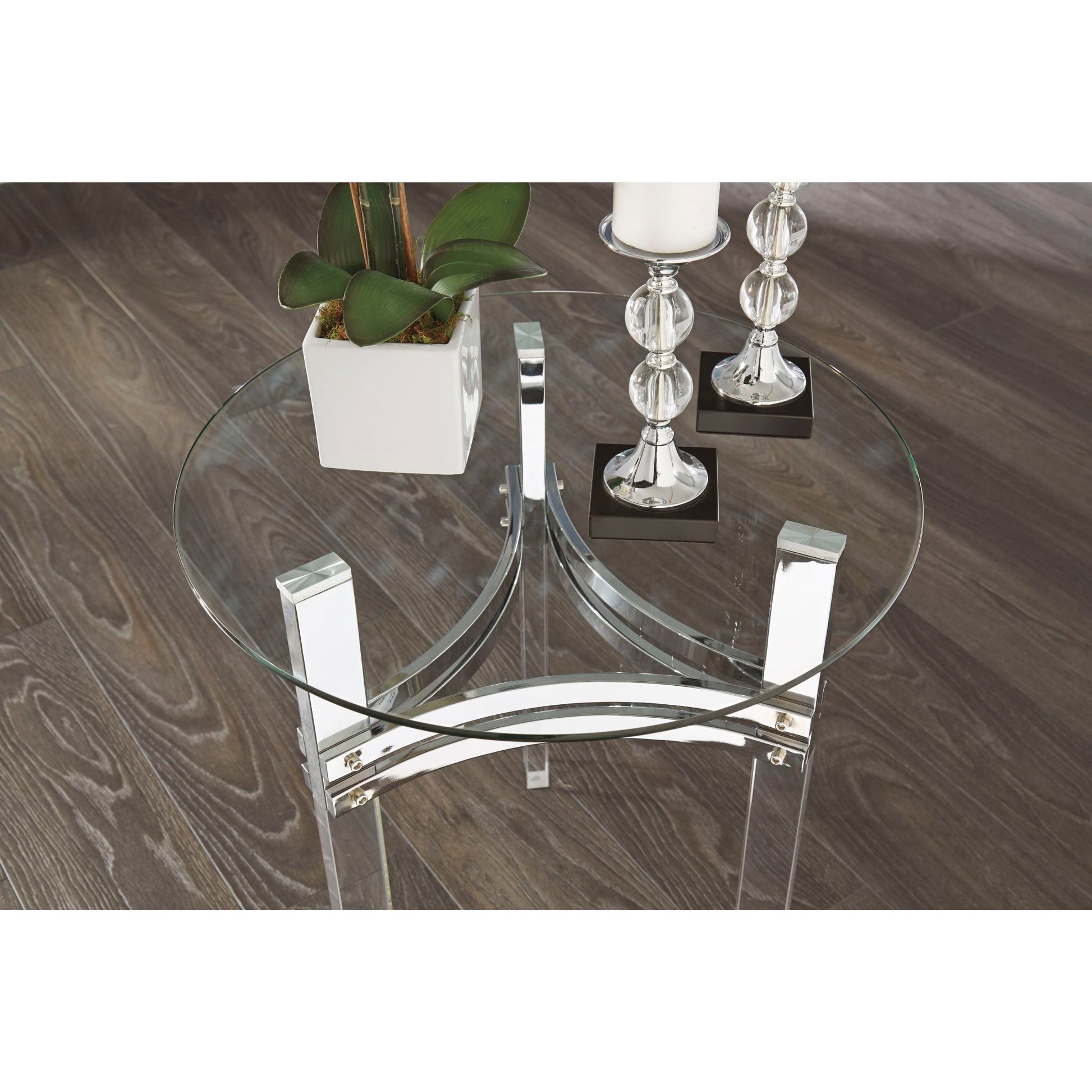 Si vous appréciez la transparence, vous serez conquis par la table d'appoint ronde Braddoni. Son plateau en verre transparent et ses pieds en acrylique ajouré en font un modèle de minimalisme. La traverse chromée souligne avec élégance son style contemporain.