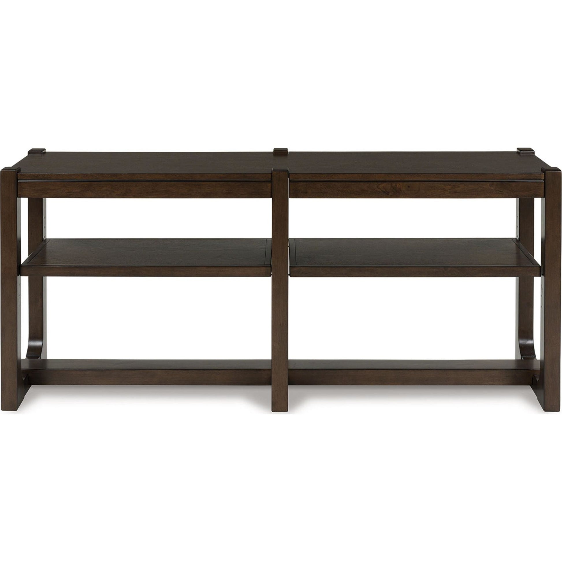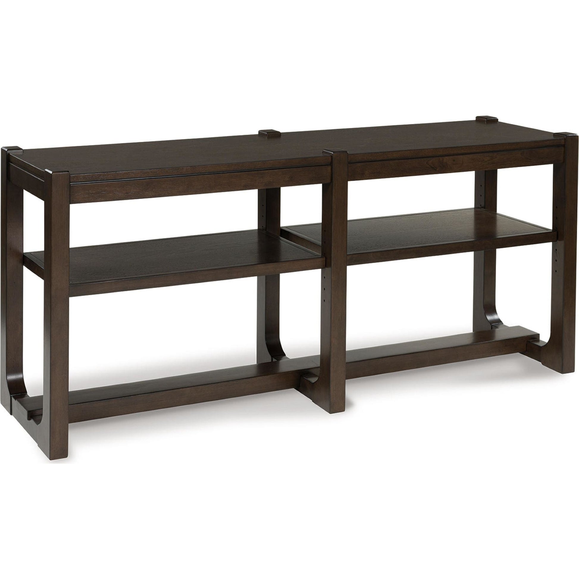 Si vous appréciez le style contemporain décontracté, vous allez adorer la console Breckington. Sa finition bois aux riches veinures foncées crée une ambiance apaisante, tandis que ses deux étagères réglables et indépendantes allient fonctionnalité et esthétique. Élégante et raffinée, cette console polyvalente est également idéale comme meuble TV ou bibliothèque. Une touche de modernité pour un intérieur contemporain réussi.