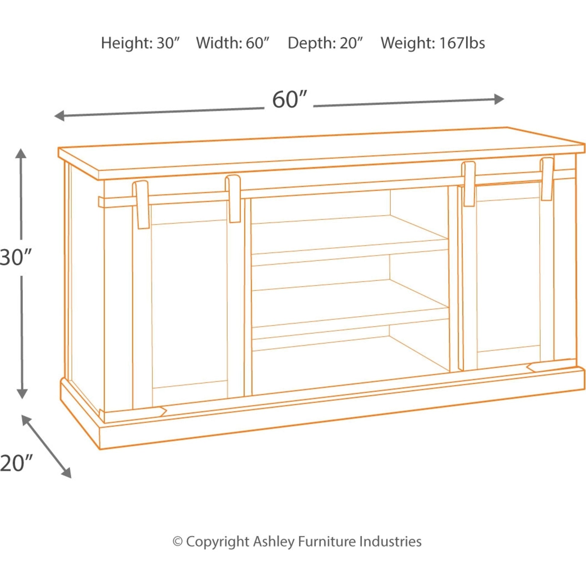 Apportez une touche champêtre à votre salon avec le meuble TV Budmore de 152 cm. Esthétique et modulable, il répond à tous vos besoins. Ses étagères latérales réglables offrent un grand espace de rangement, tandis que ses deux étagères centrales fixes sont parfaites pour vos appareils TV. Ses deux portes coulissantes de style grange s'orientent facilement selon vos envies. Pour un style épuré, repliez les portes latérales et profitez de ces espaces pour un rangement discret : une solution idéale !