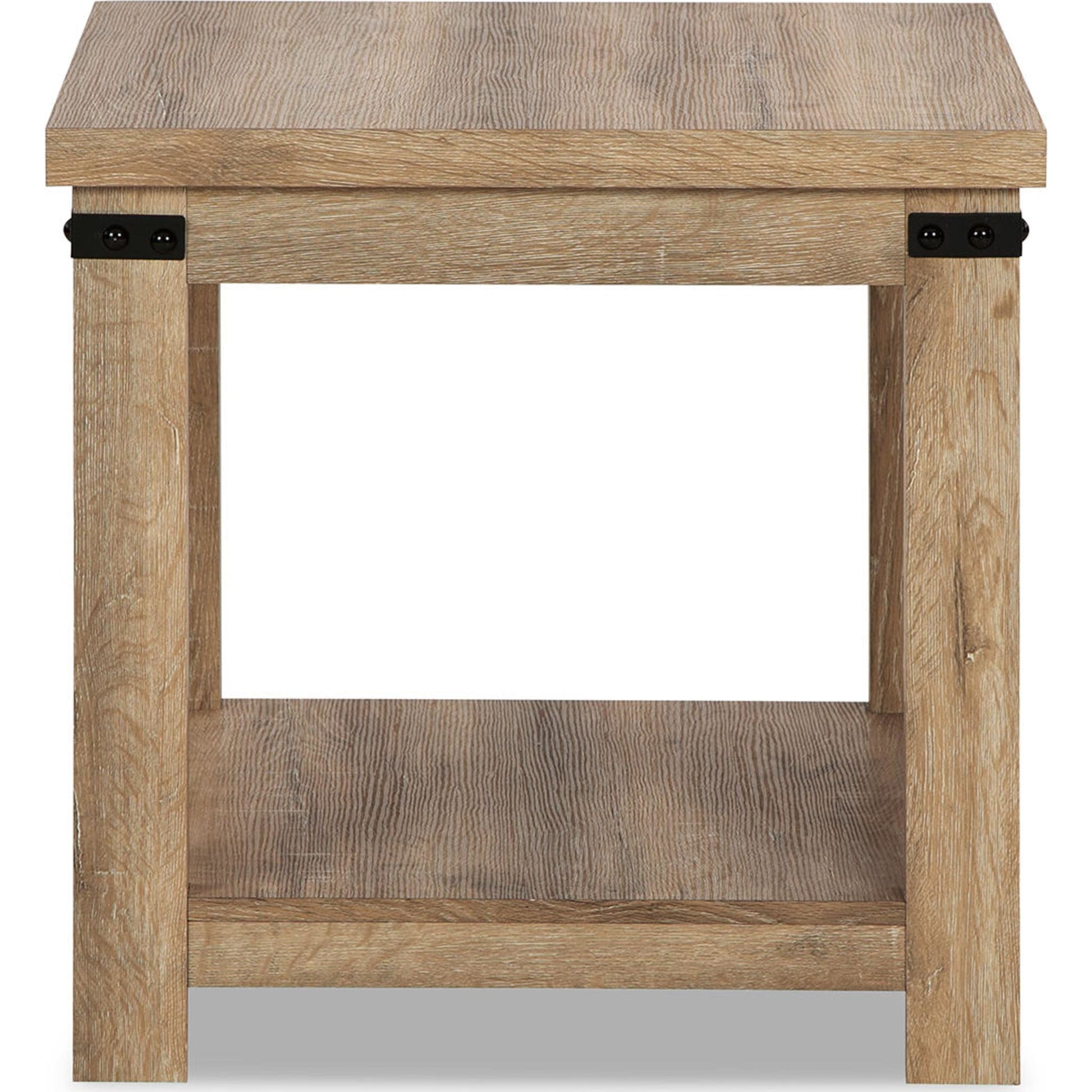 Cette table d'appoint revisite le style d'antan avec une élégance décontractée et moderne. Son grain de chêne naturel imité est chaleureux et accueillant, tandis que les accents métalliques lui confèrent une touche rustique et un mélange de matières. Une étagère inférieure, offrant un espace de rangement et d'exposition supplémentaire, complète ce meuble luxueux et décontracté.