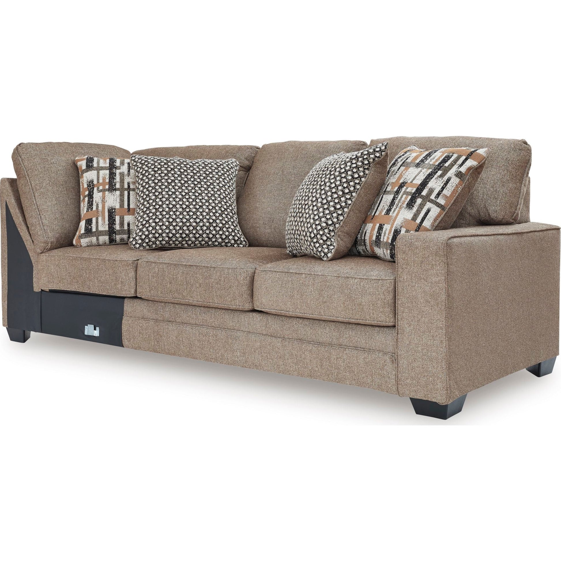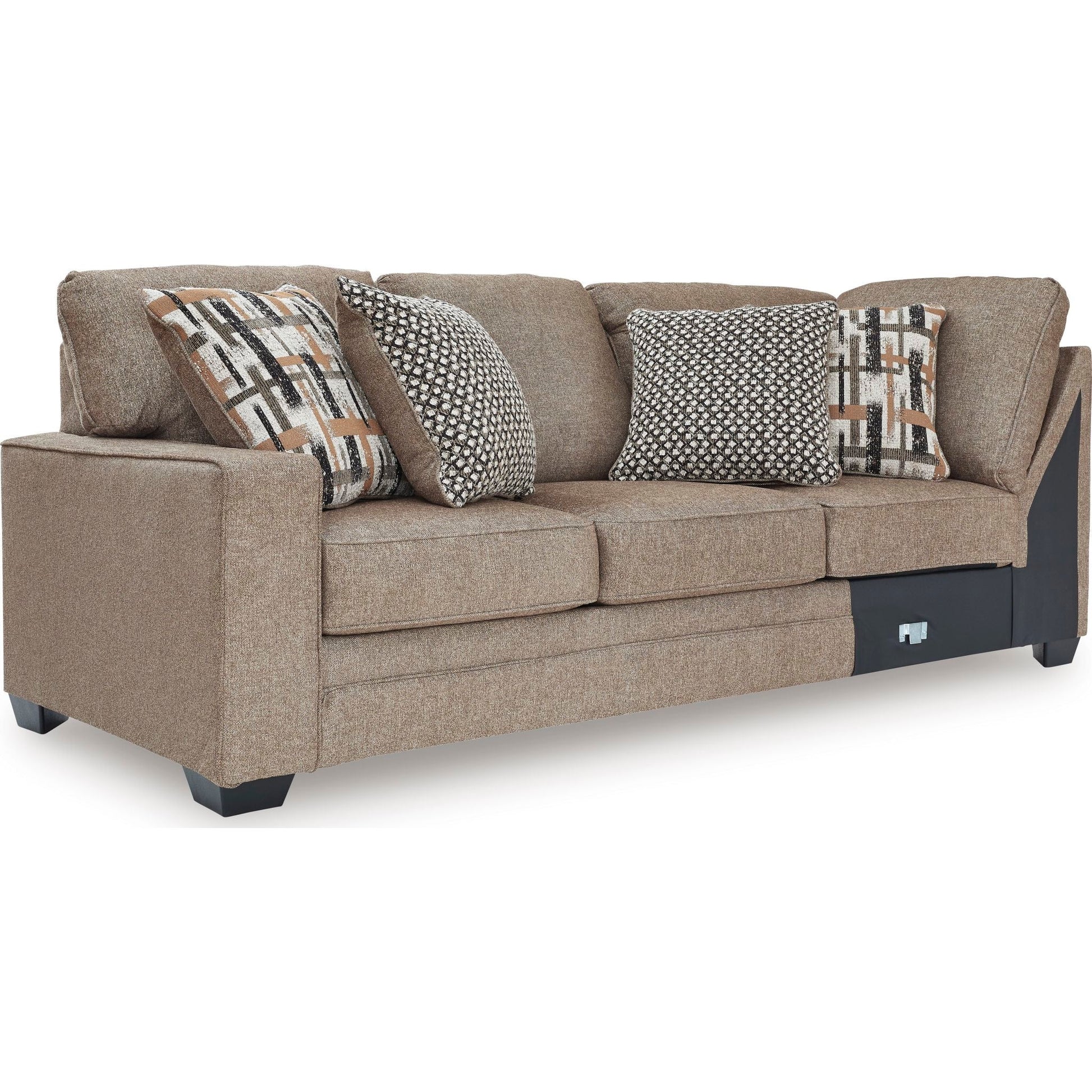 Classique, contemporain et chaleureux. Avec ce canapé d'angle avec méridienne, se détendre avec style devient un jeu d'enfant. Son coloris polyvalent, à la fois chaleureux et accueillant, apporte une touche d'élégance à votre intérieur grâce à son revêtement d'inspiration masculine. Des coussins graphiques dynamisent l'ensemble. Se prélasser au salon n'a jamais été aussi chic et confortable.