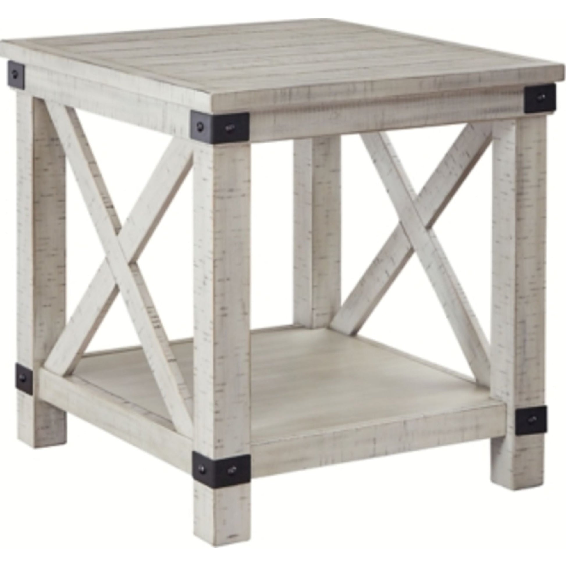 Avec sa finition blanchie à la chaux vieillie, la table d'appoint Carynhurst incarne à merveille le charme rustique d'une maison de campagne. Son style à croisillons lui confère une élégance indéniable. Les supports métalliques de style industriel apportent une touche résolument moderne.
