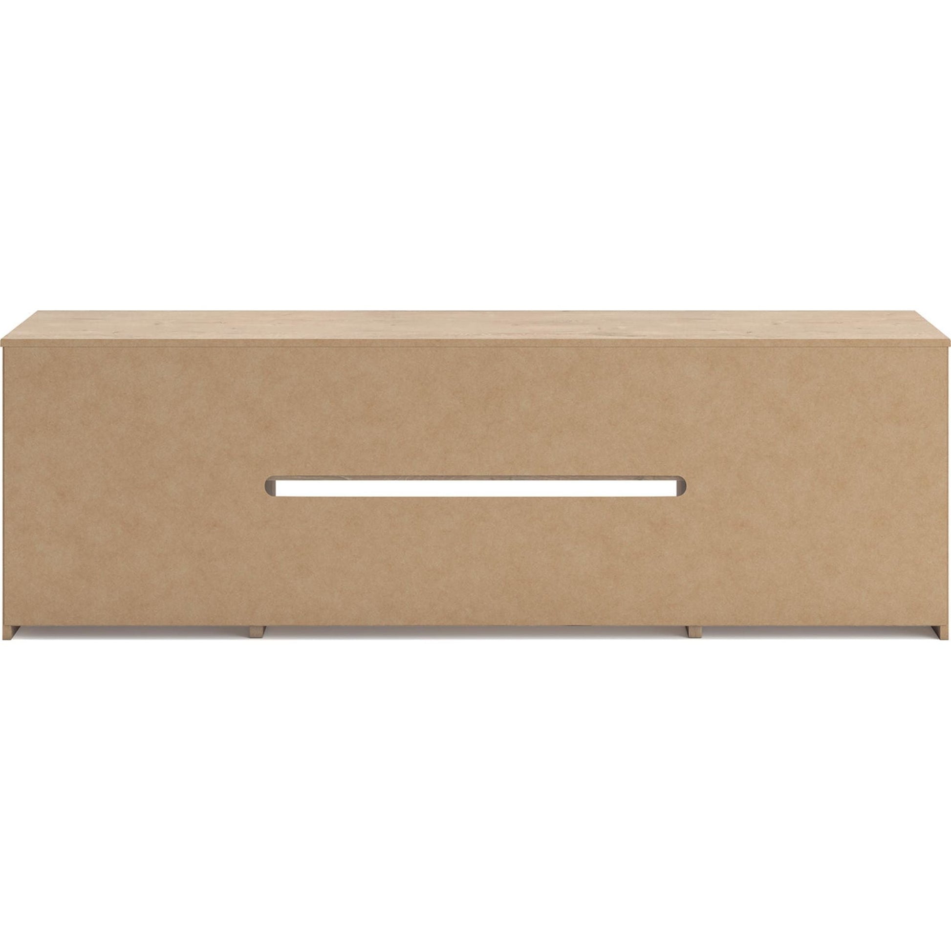 Le meuble TV Cayboni revisite le charme classique pour l'adapter à la vie moderne. Son veinage clair imité séduit par son cachet vintage, tandis que son élégant motif à chevrons est résolument tendance. Et grâce aux rangements dissimulés derrière les portes, vos accessoires multimédias restent à l'abri avec style.