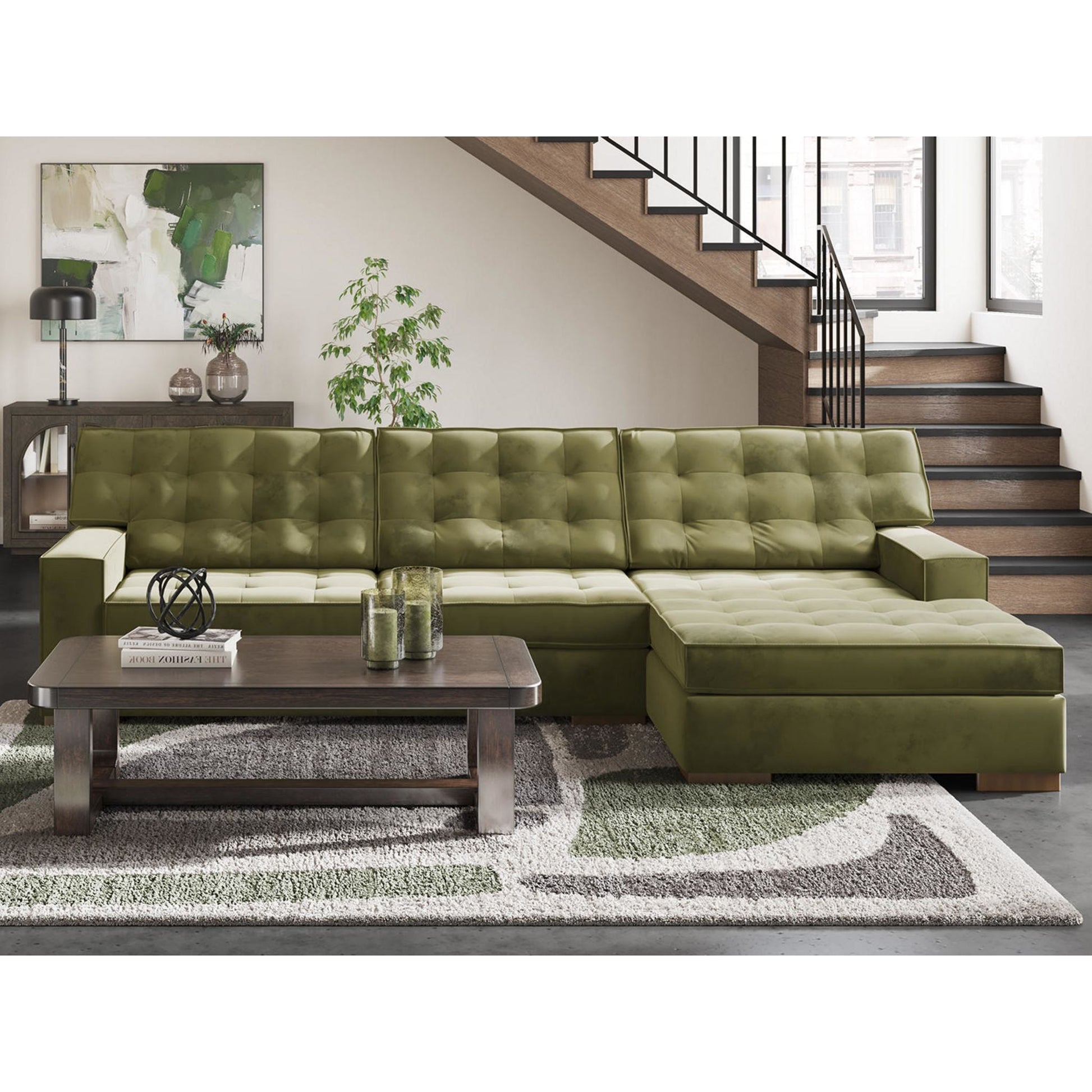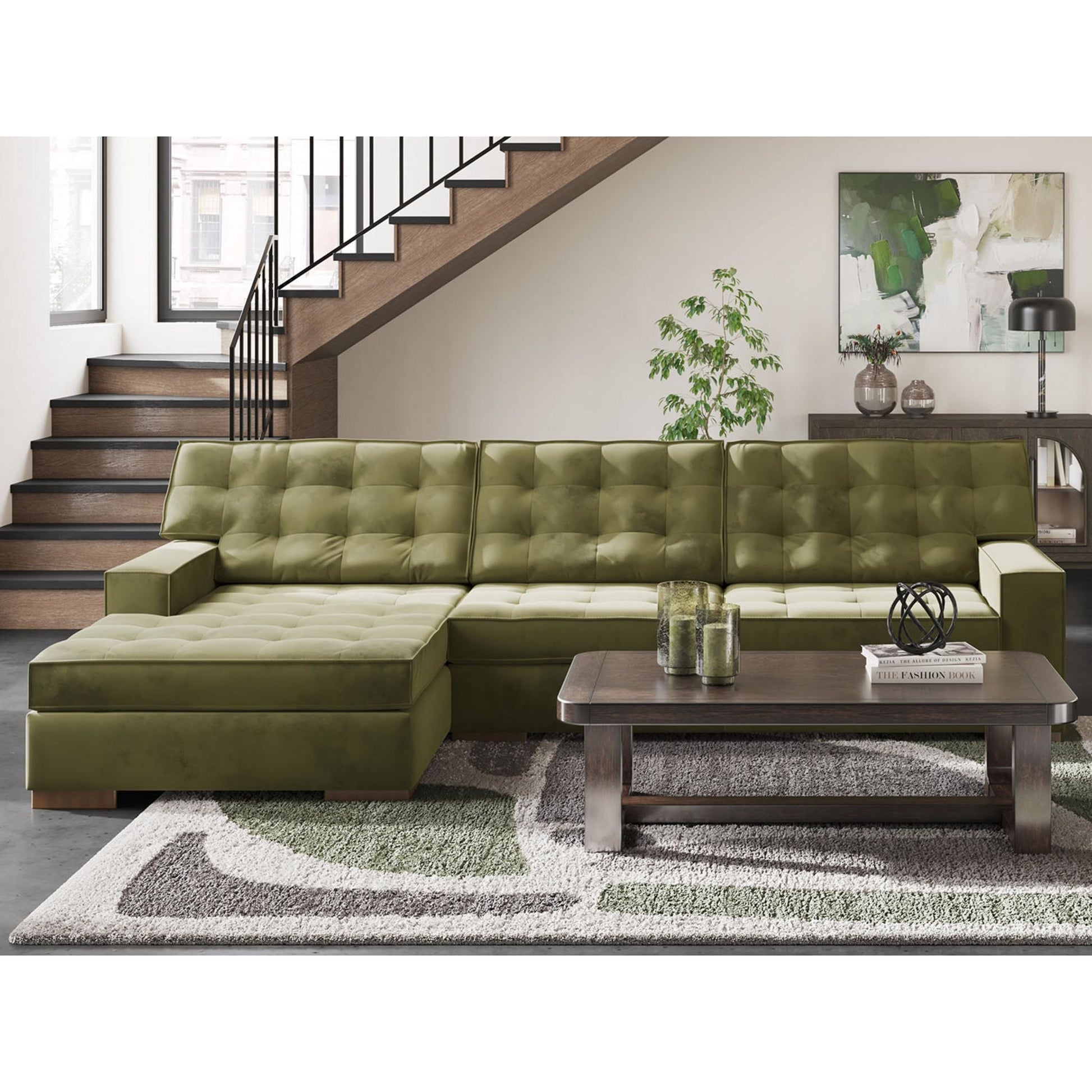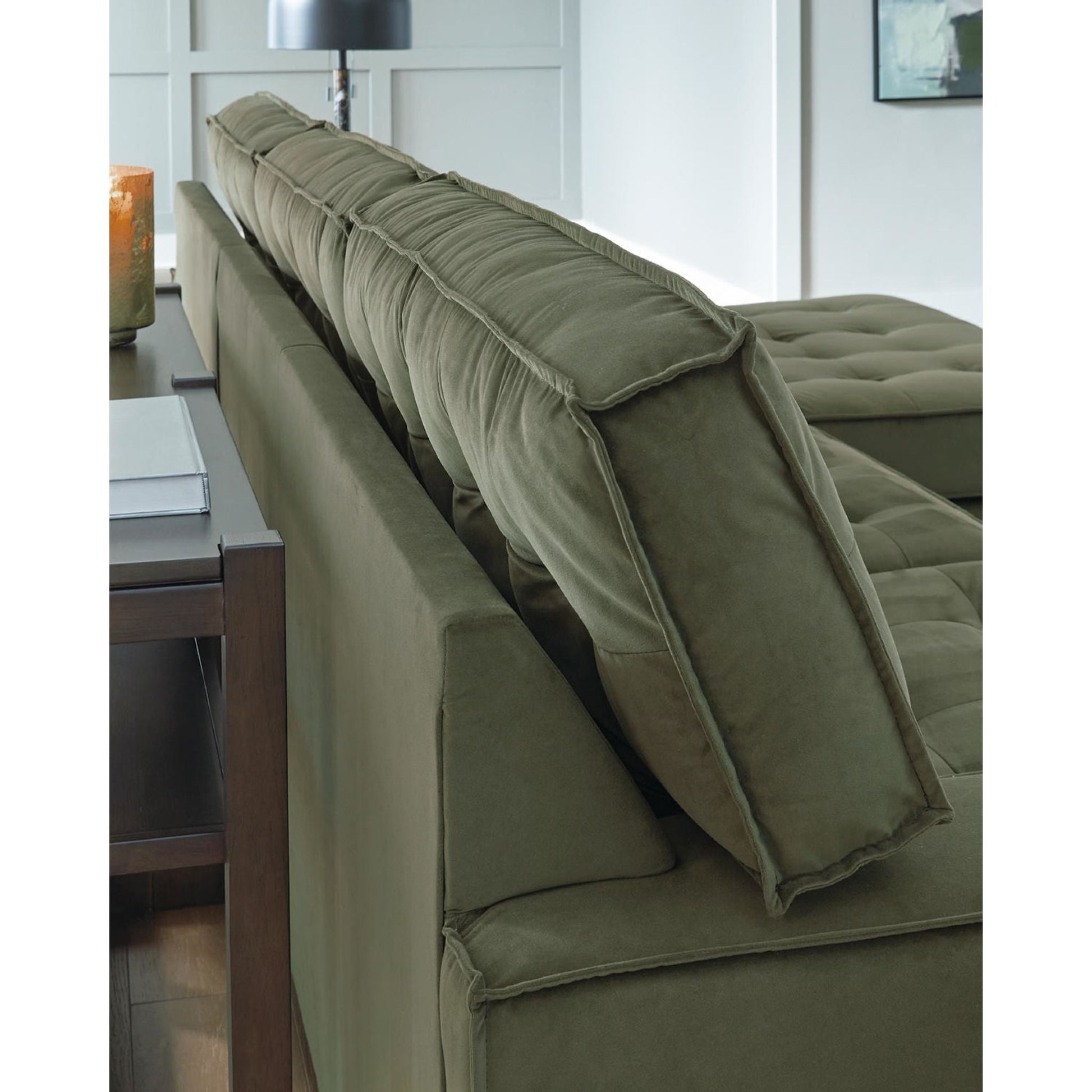 L'élégant canapé d'angle Chalcombe avec méridienne offre un style résolument contemporain et un espace généreux pour se détendre. Ses détails capitonnés raffinés et son luxueux revêtement couleur olive créent une ambiance sophistiquée. Ce canapé est idéal pour recevoir ou simplement se relaxer avec style et confort.