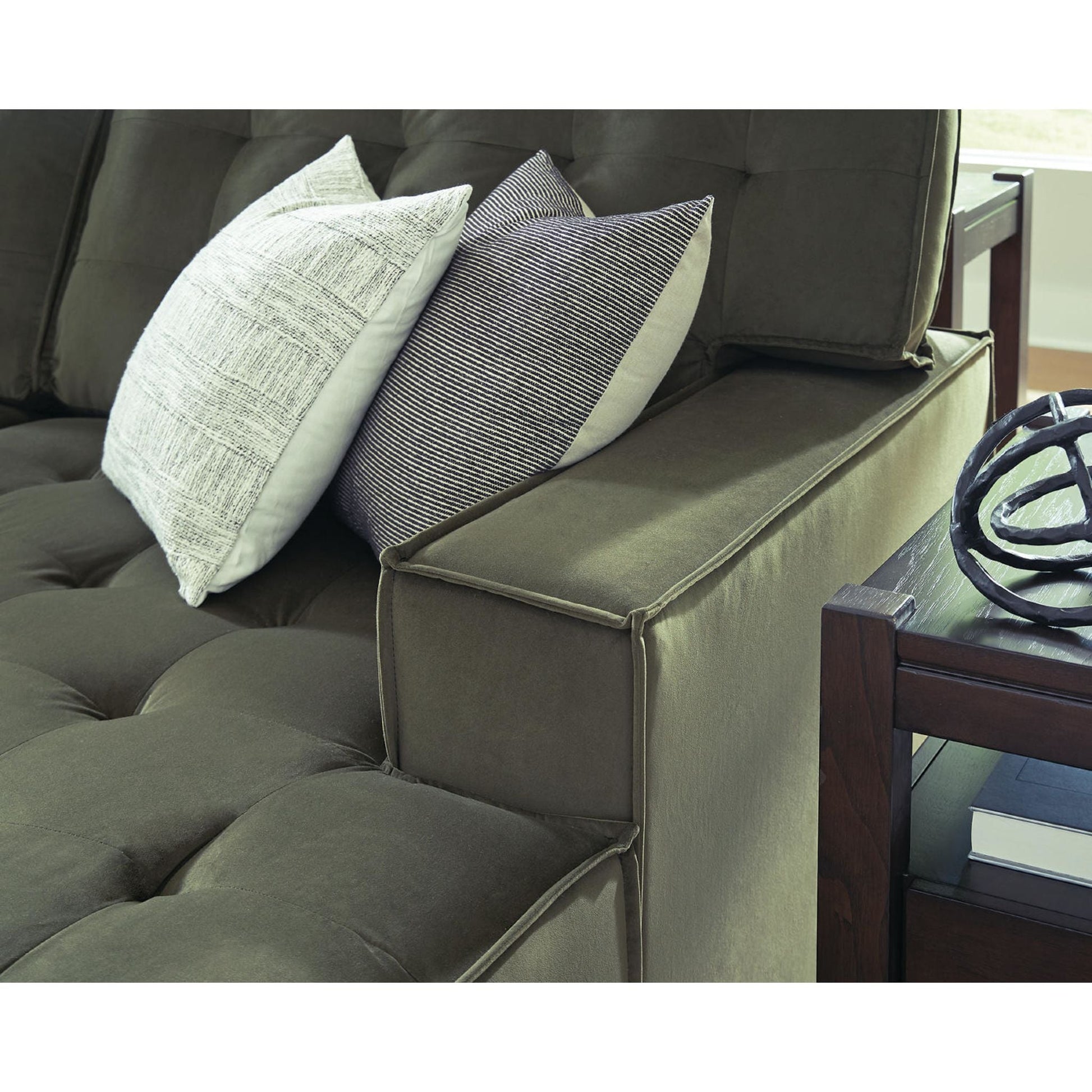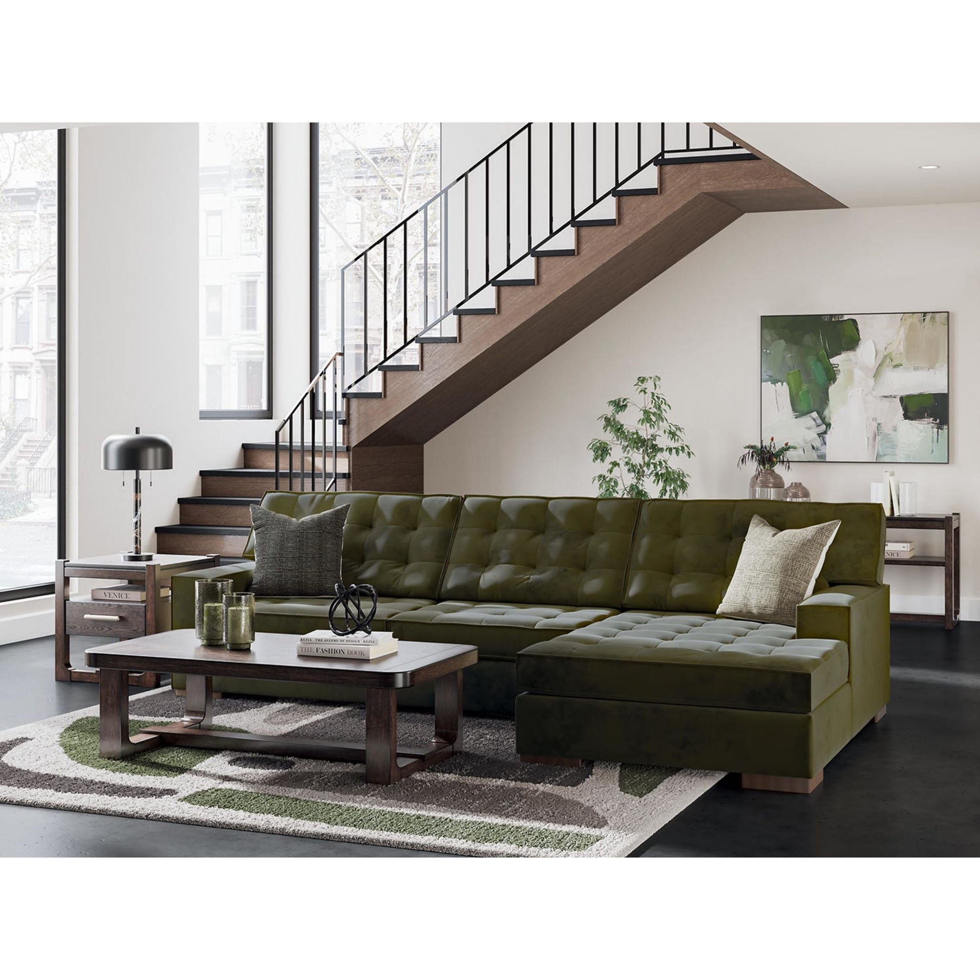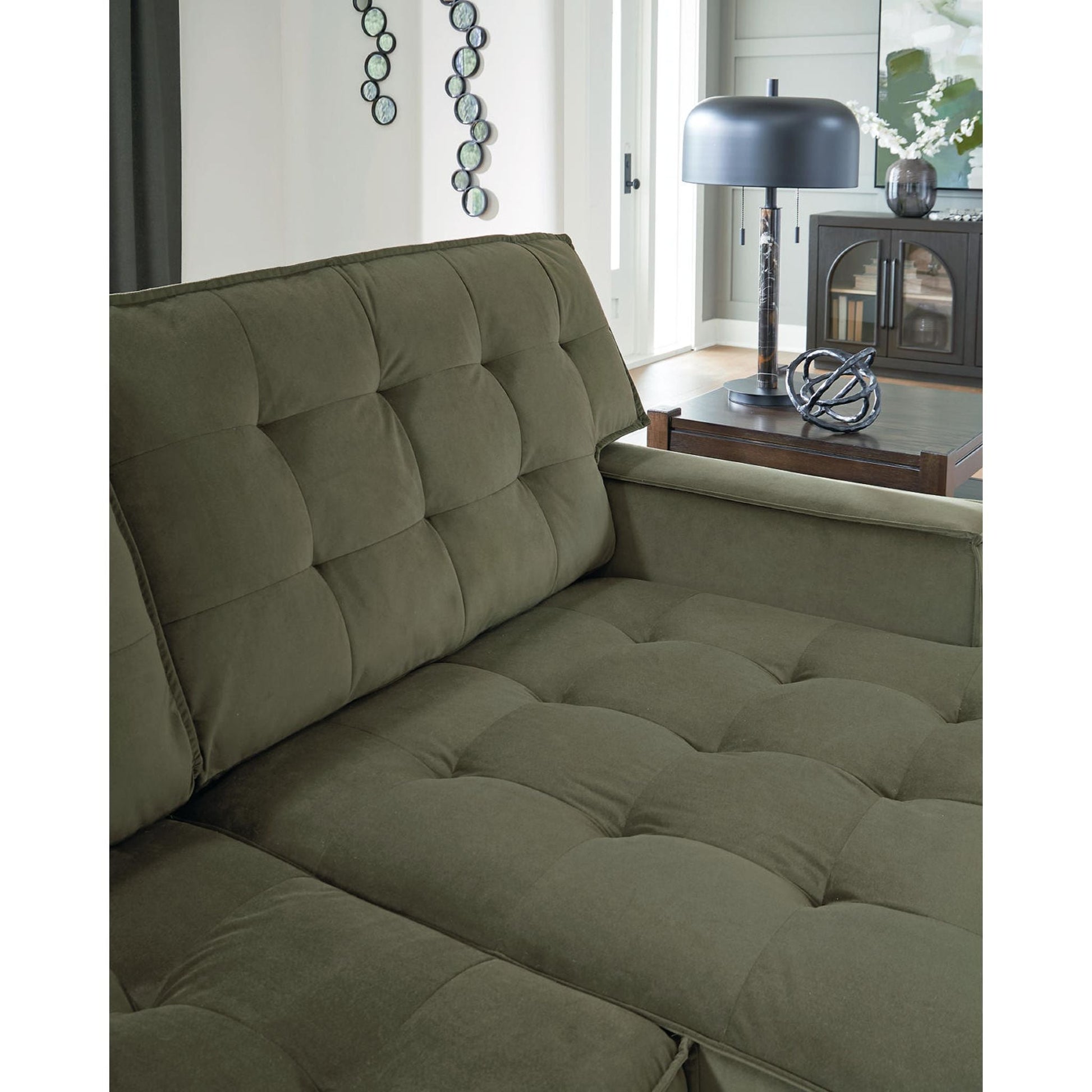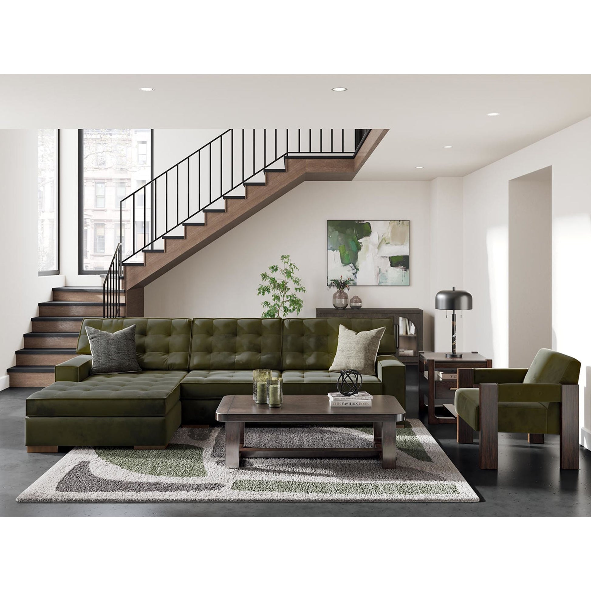 L'élégant canapé d'angle Chalcombe avec méridienne offre un style résolument contemporain et un espace généreux pour se détendre. Ses détails capitonnés raffinés et son luxueux revêtement couleur olive créent une ambiance sophistiquée. Ce canapé est idéal pour recevoir ou simplement se relaxer avec style et confort.